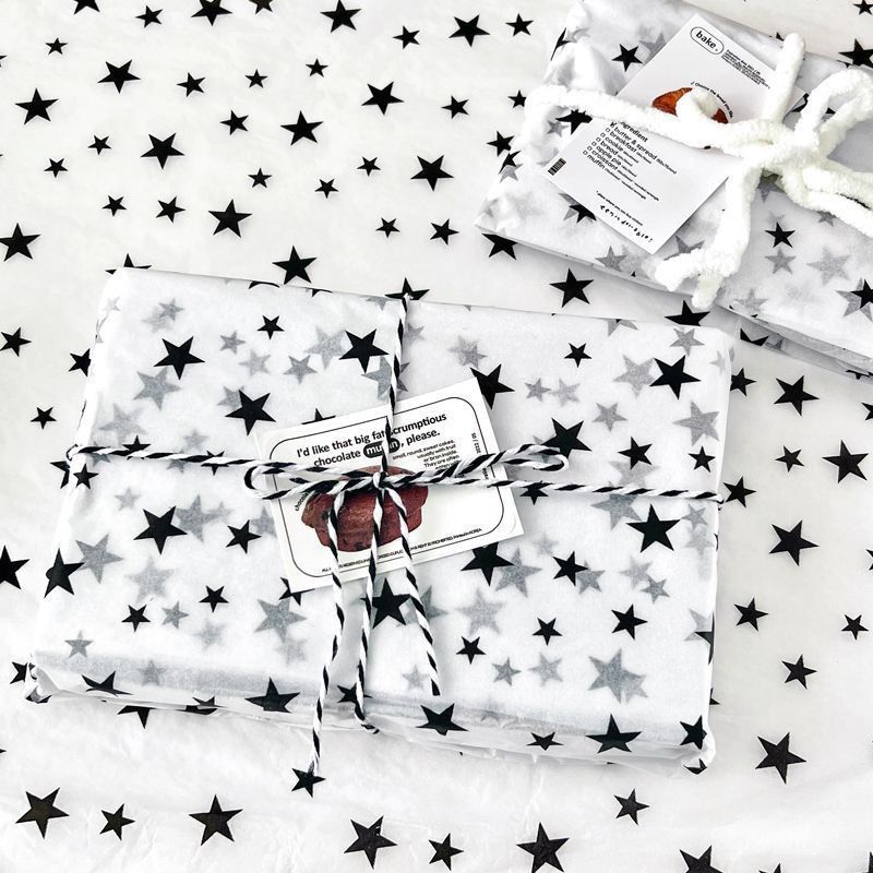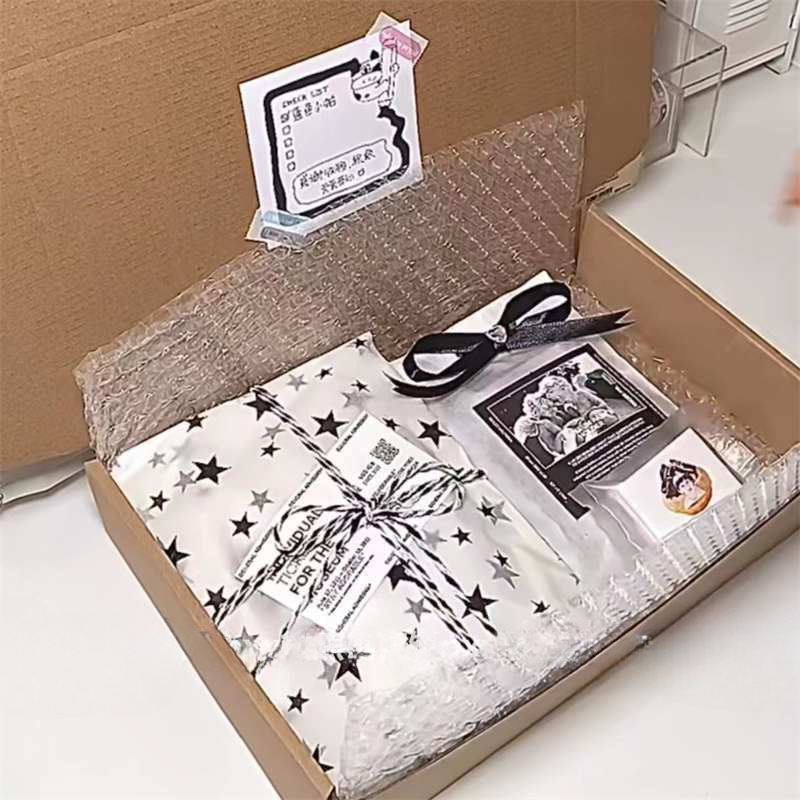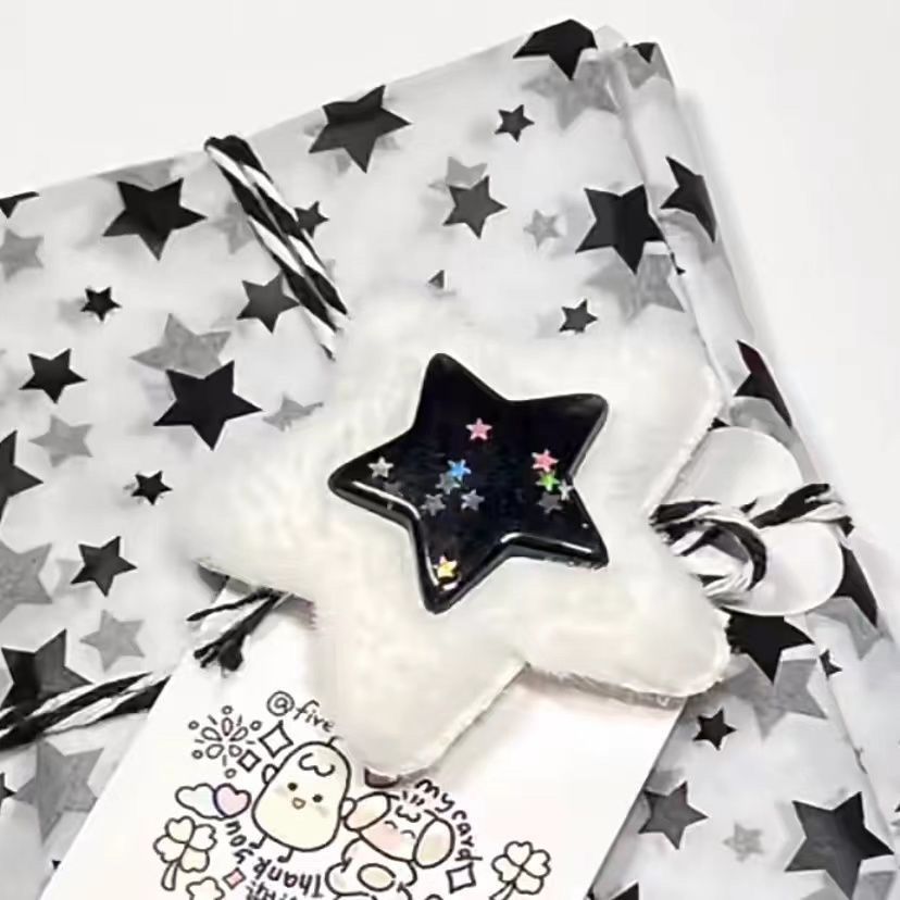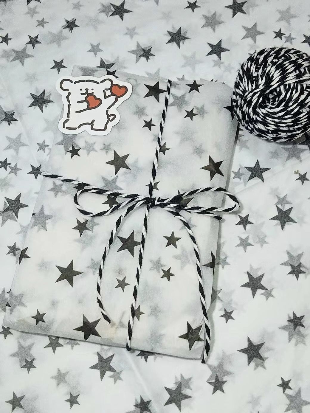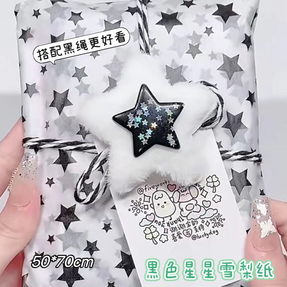 ins风出卡必备高级黑色星星雪梨纸礼品打包包装纸打包材料装饰绳