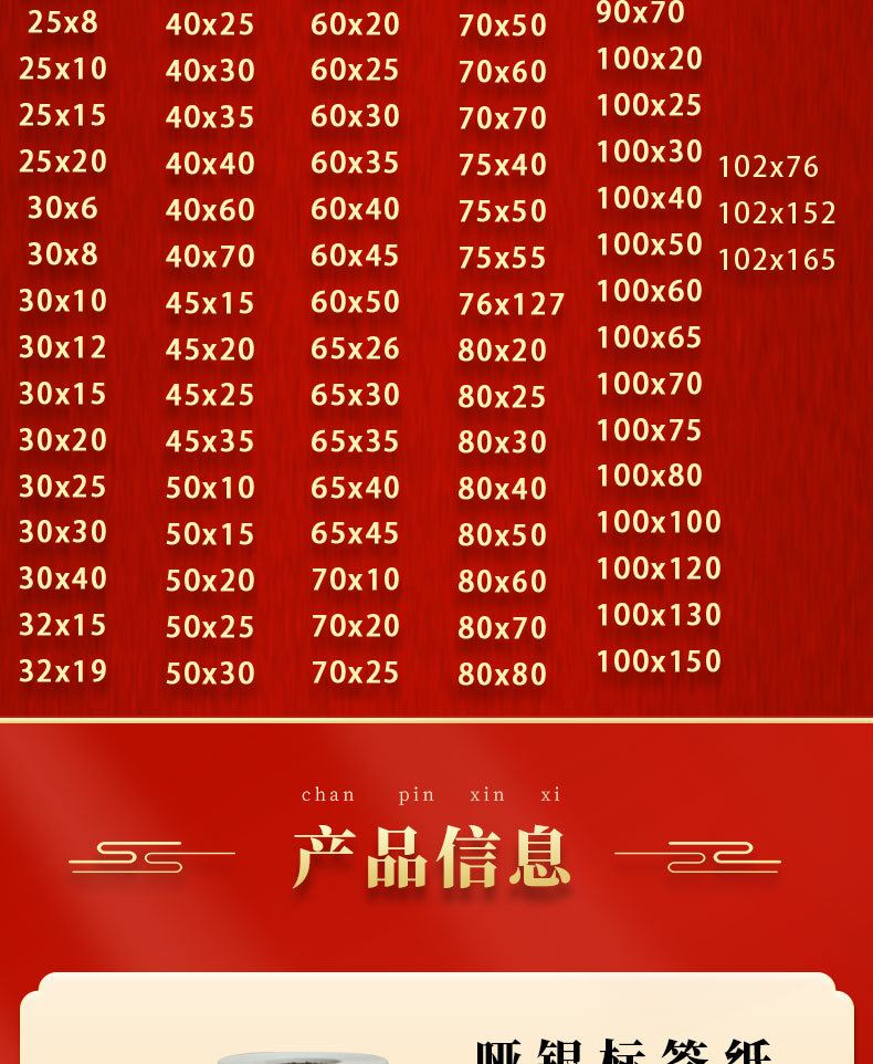 亚银不干胶条码打印纸30x6x8x10x15x20x25 32x19 35x10x25