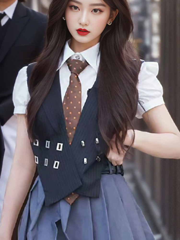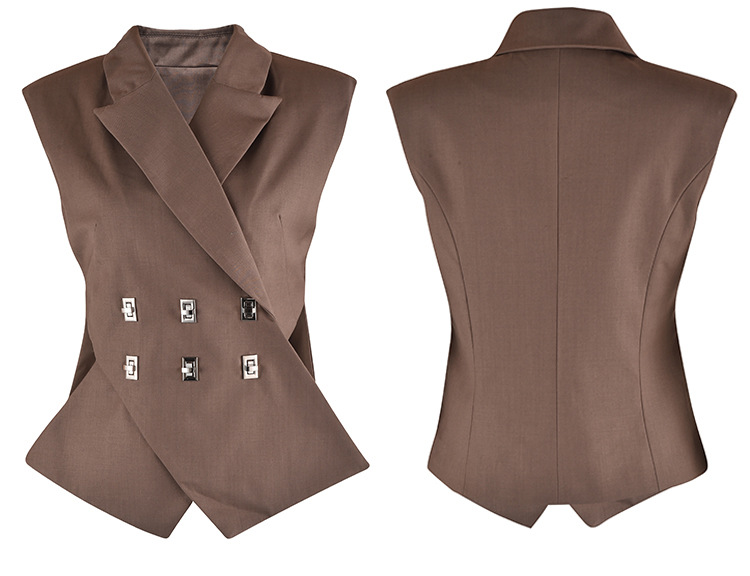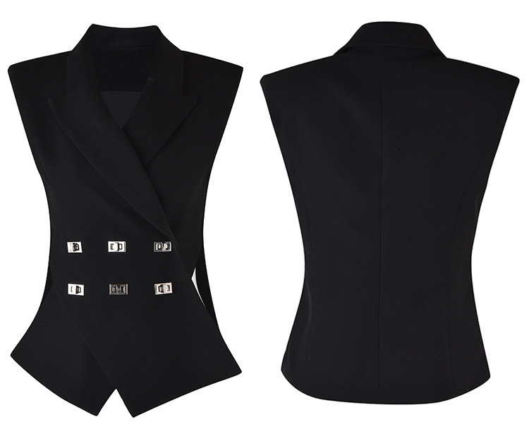 法式设计感小众金属扣背心马甲女秋装休闲简约坎肩外套短款K7126
