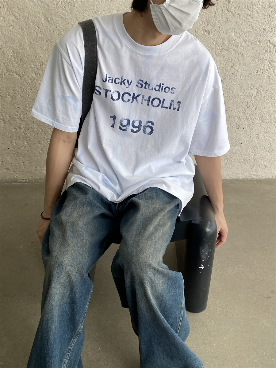 longroad噴馬蹓* 獨立設計做舊印花短袖T恤男女美式復古休閒寬鬆