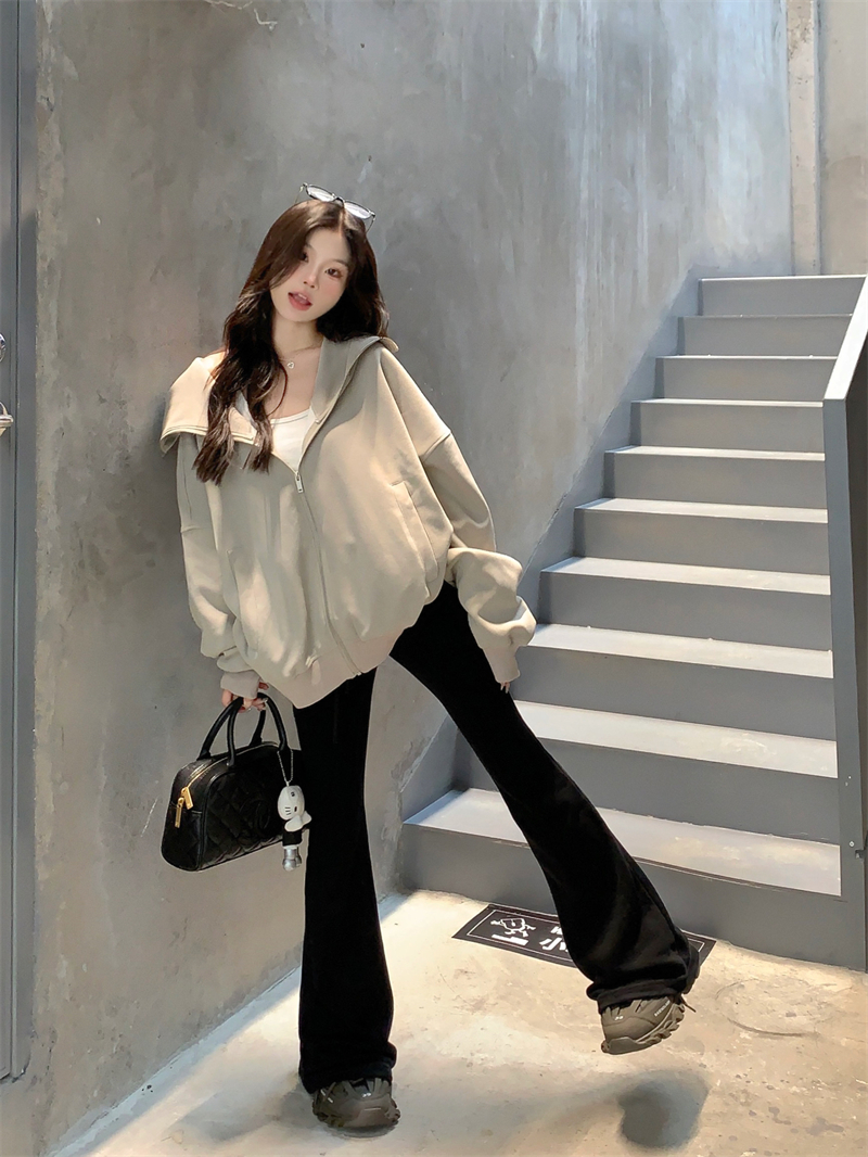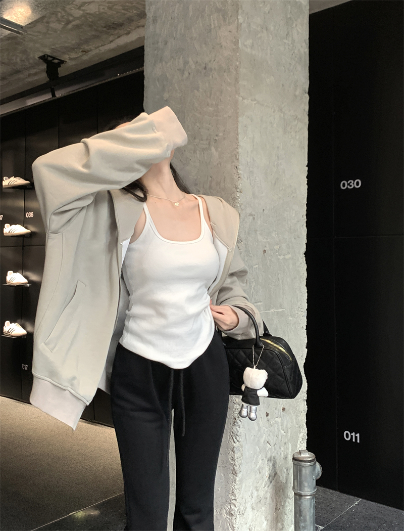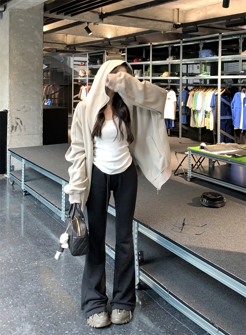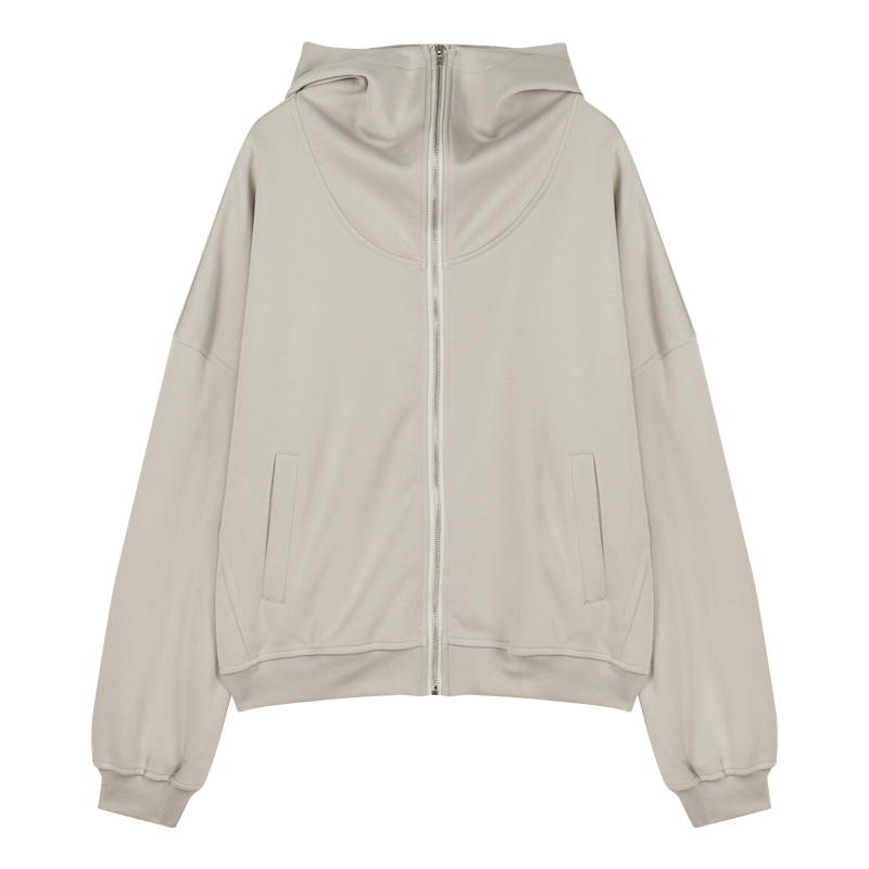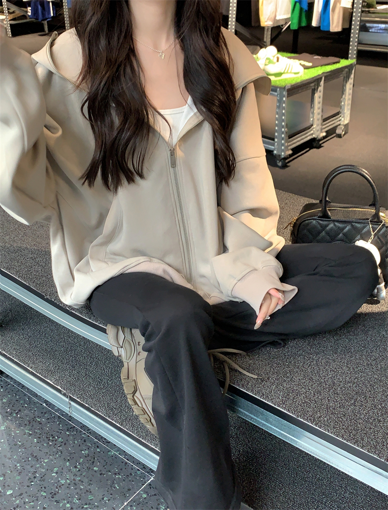 小個子灰色長袖連帽運動衫女裝外套秋季寬鬆慵懶風休閒開衫拉鍊上衣