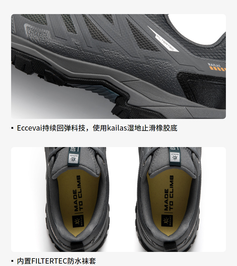 KAILAS凱樂石戶外運動FLT防水徒步鞋男(FLT 2/遠徵)鋼鐵灰/墨黑