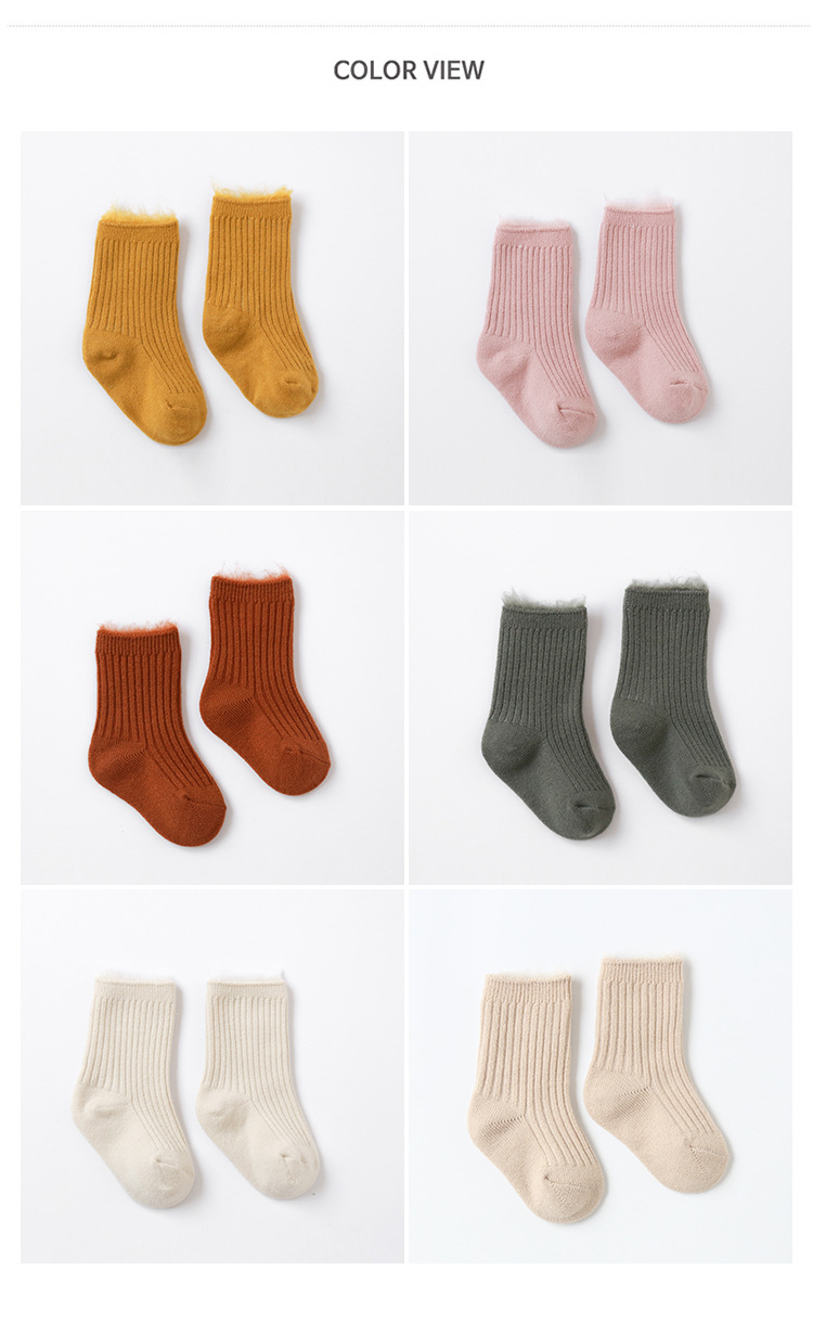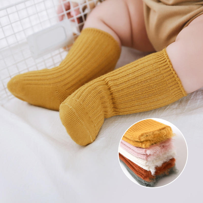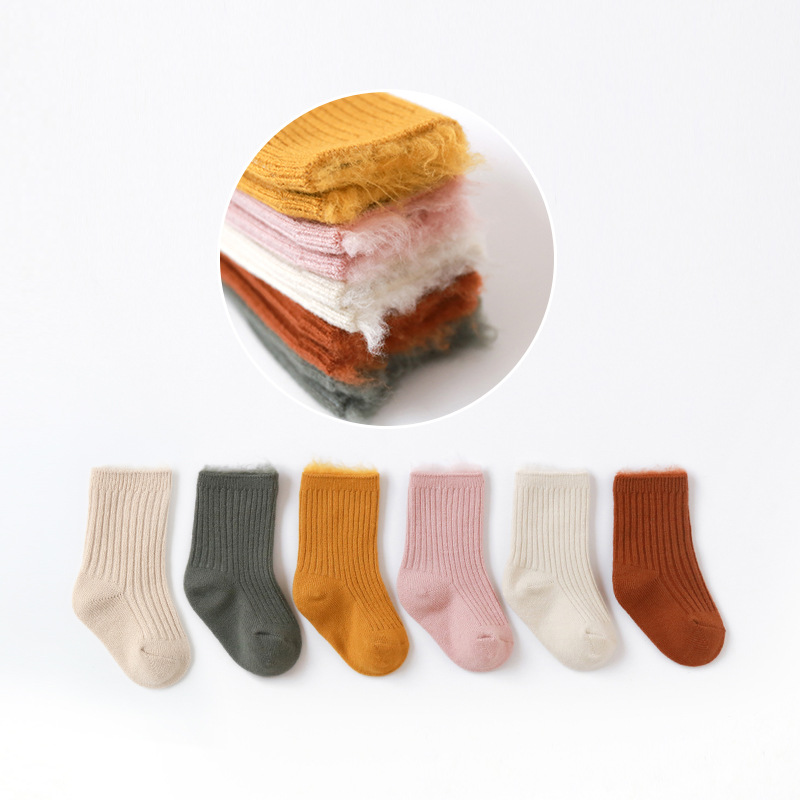 19新款秋冬季加厚加绒宝宝袜子双针坑条中筒百搭保暖小中儿童袜子