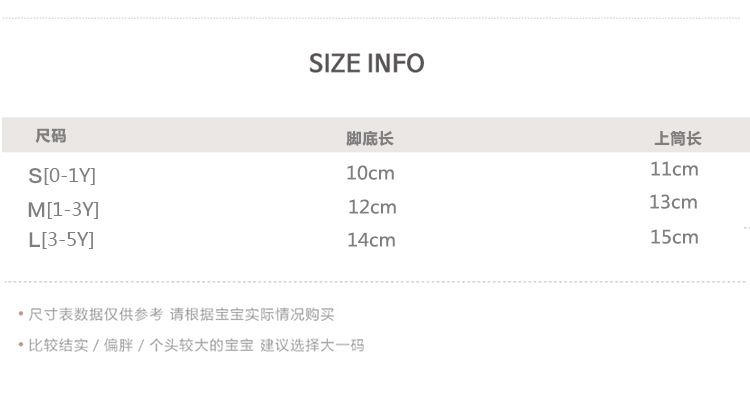 童袜尺码 S码0-1岁,M码1-3岁,L码3-5岁