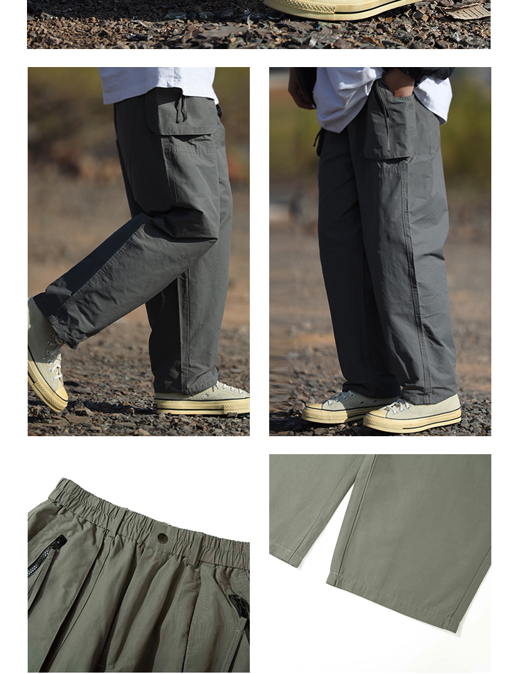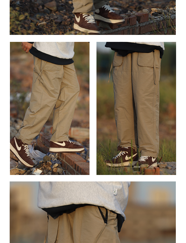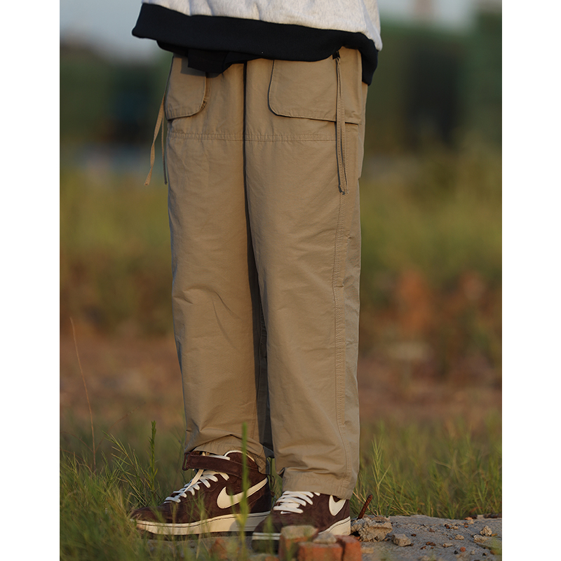 Nobodyknows 夏季日系基礎春潮牌寬鬆工裝口袋直筒褲百搭休閒長褲