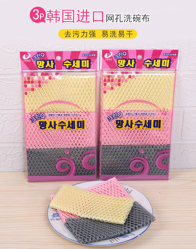 韩国进口3P网孔洗碗巾 厨房清洁去油污易清洗百洁抹布 包邮