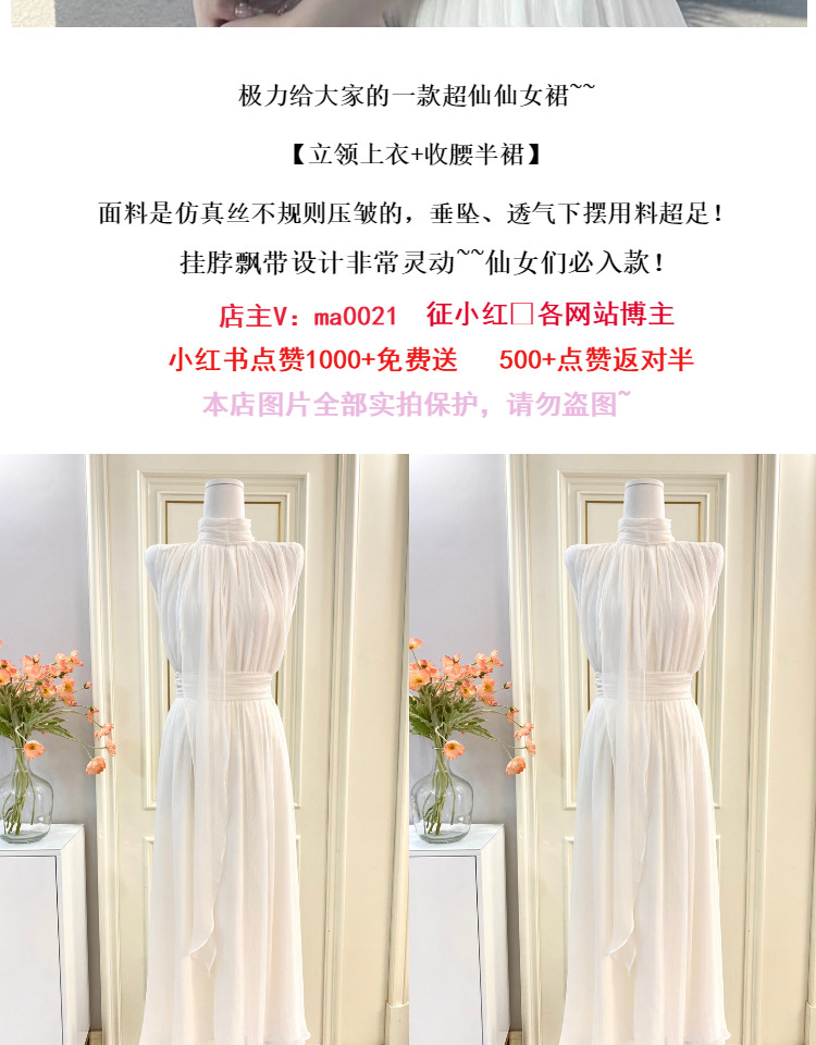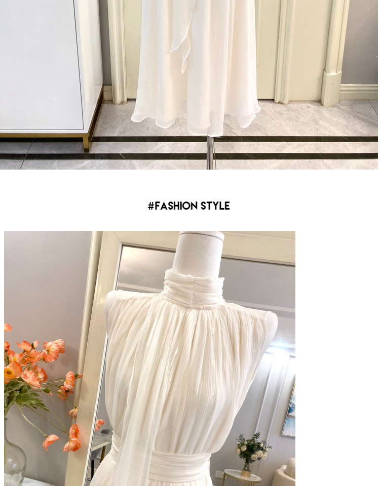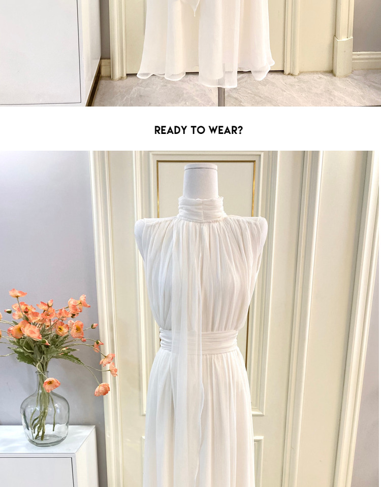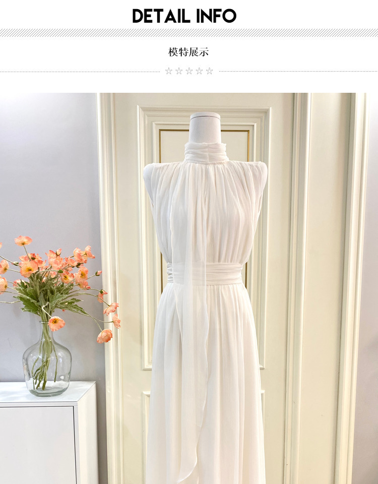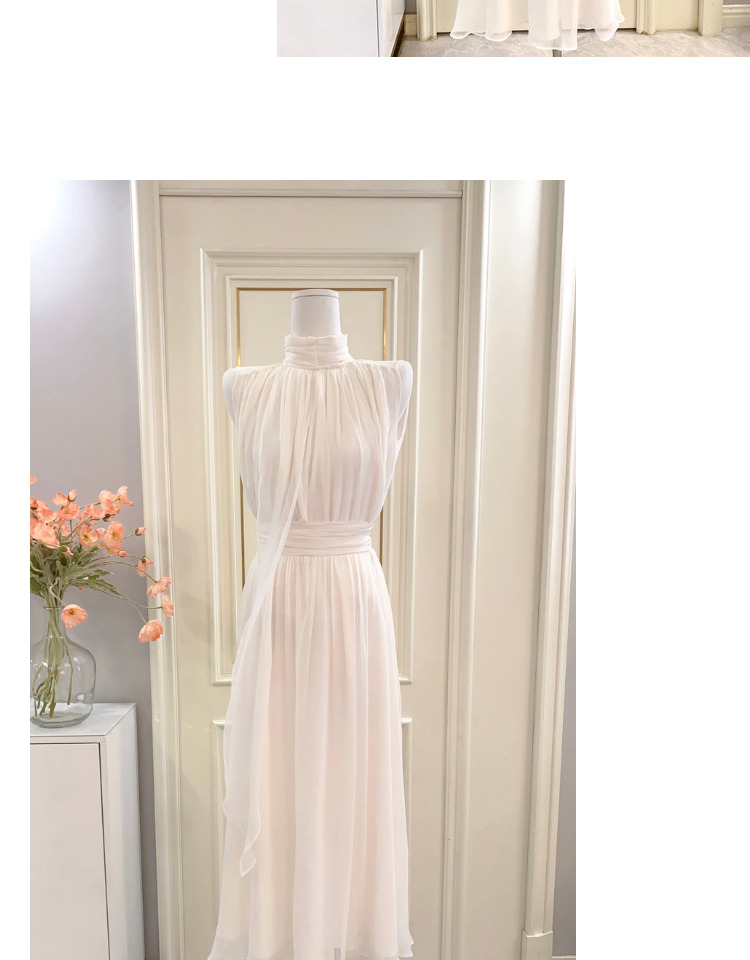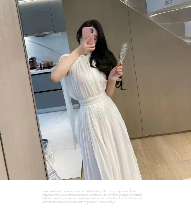 labelleblanc春夏早春溫柔仙女裙白色法式洋裝女收腰掛脖長裙衣