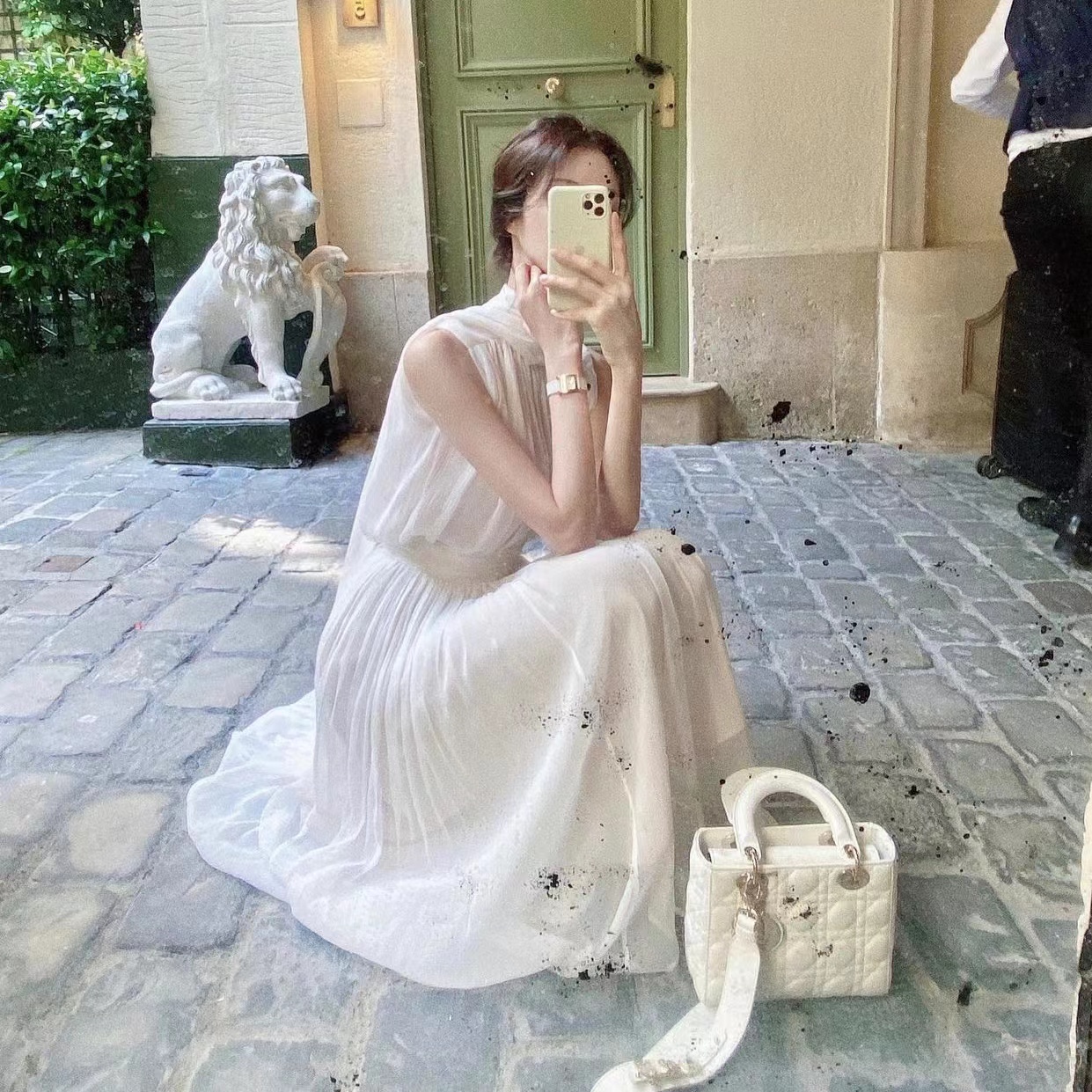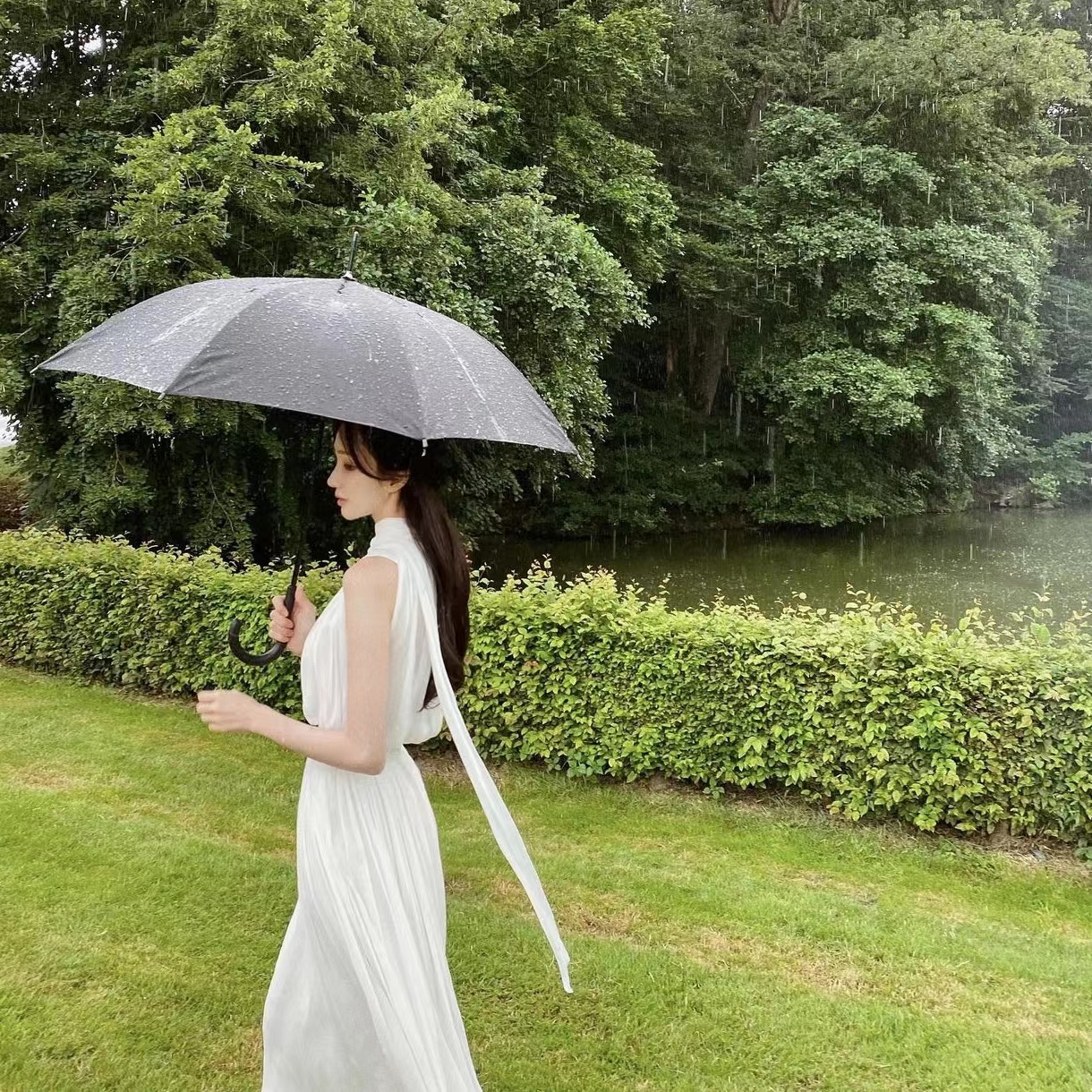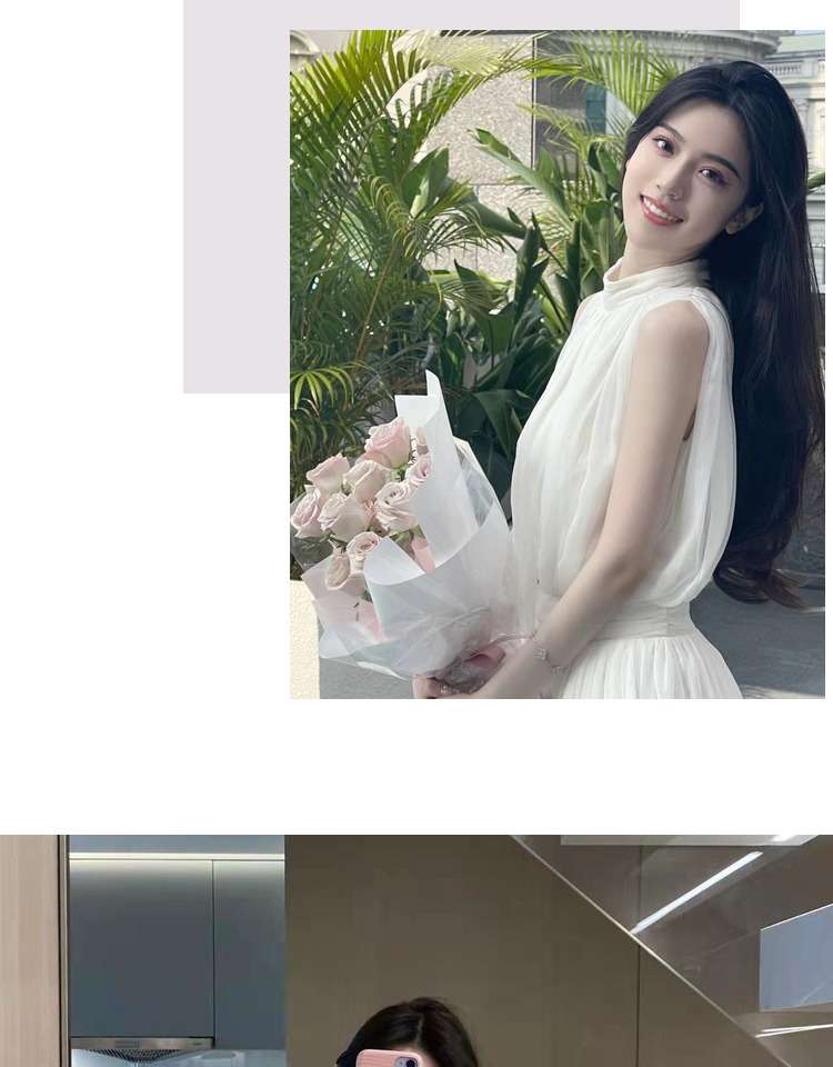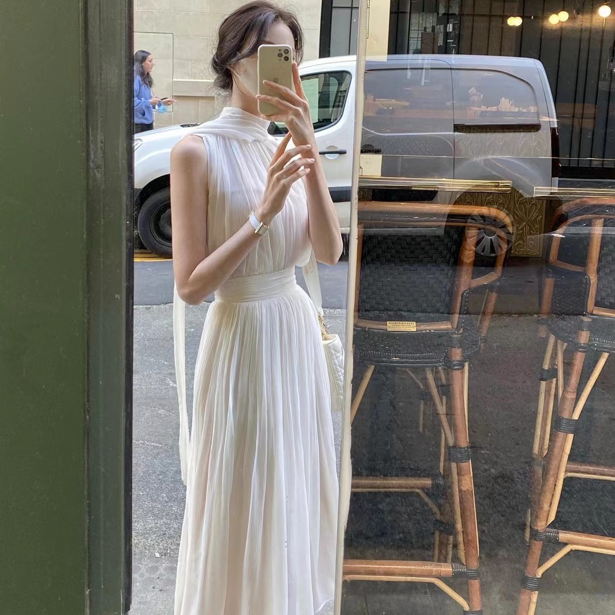 labelleblanc春夏早春溫柔仙女裙白色法式洋裝女收腰掛脖長裙衣