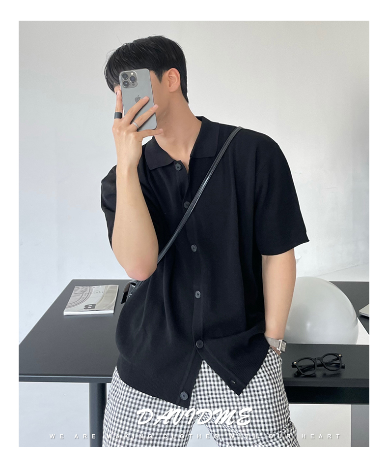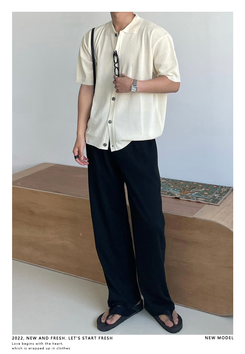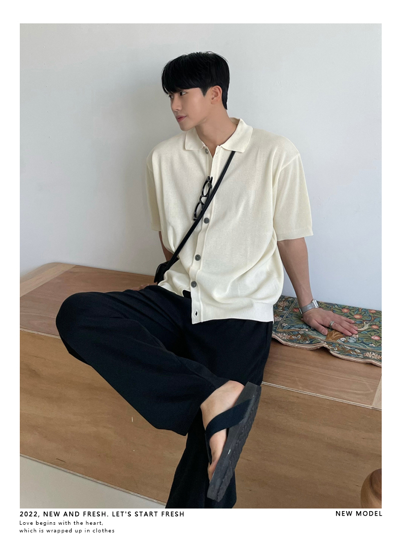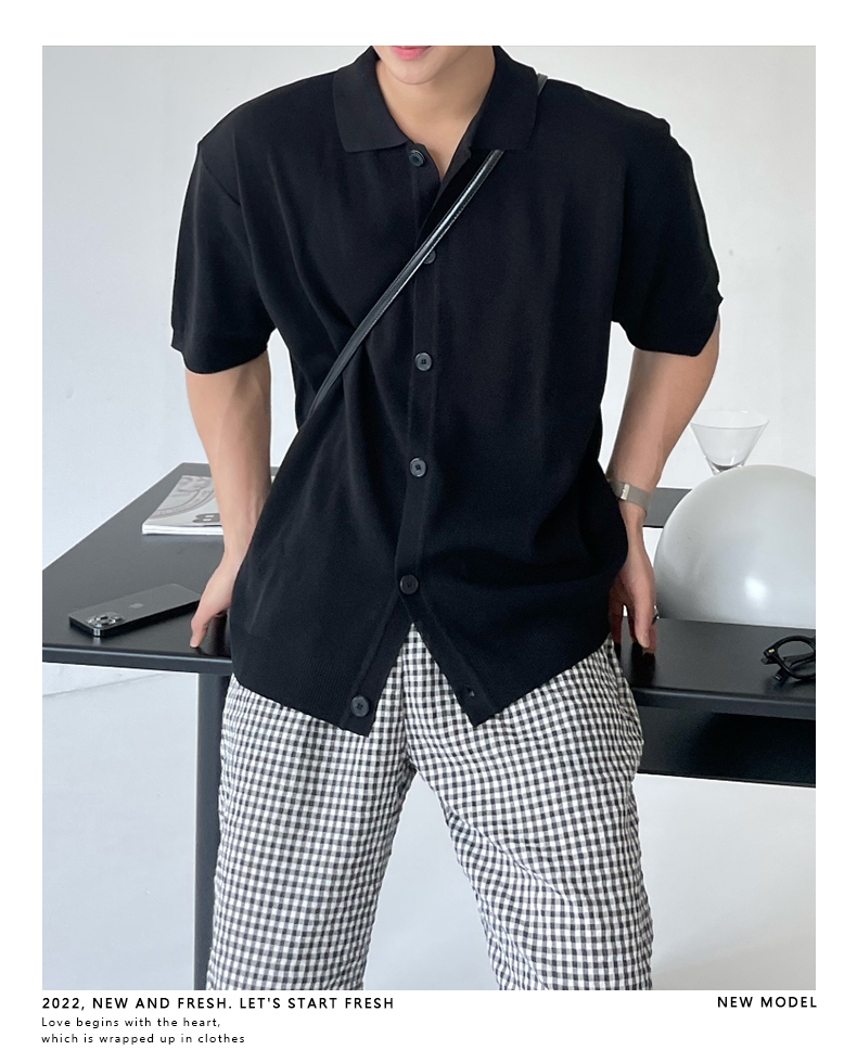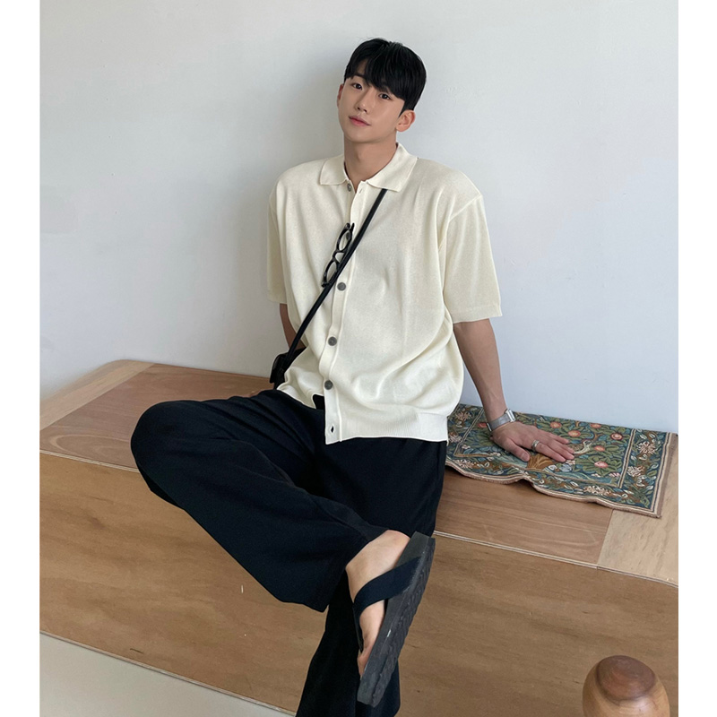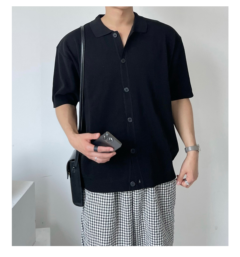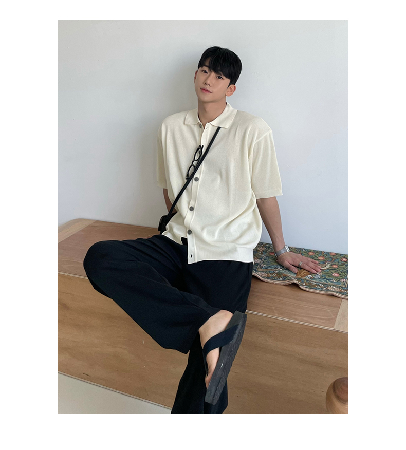 針織polo衫男短袖高級感開衫上衣韓版透氣休閒青年簡約百搭衣服