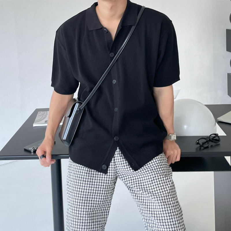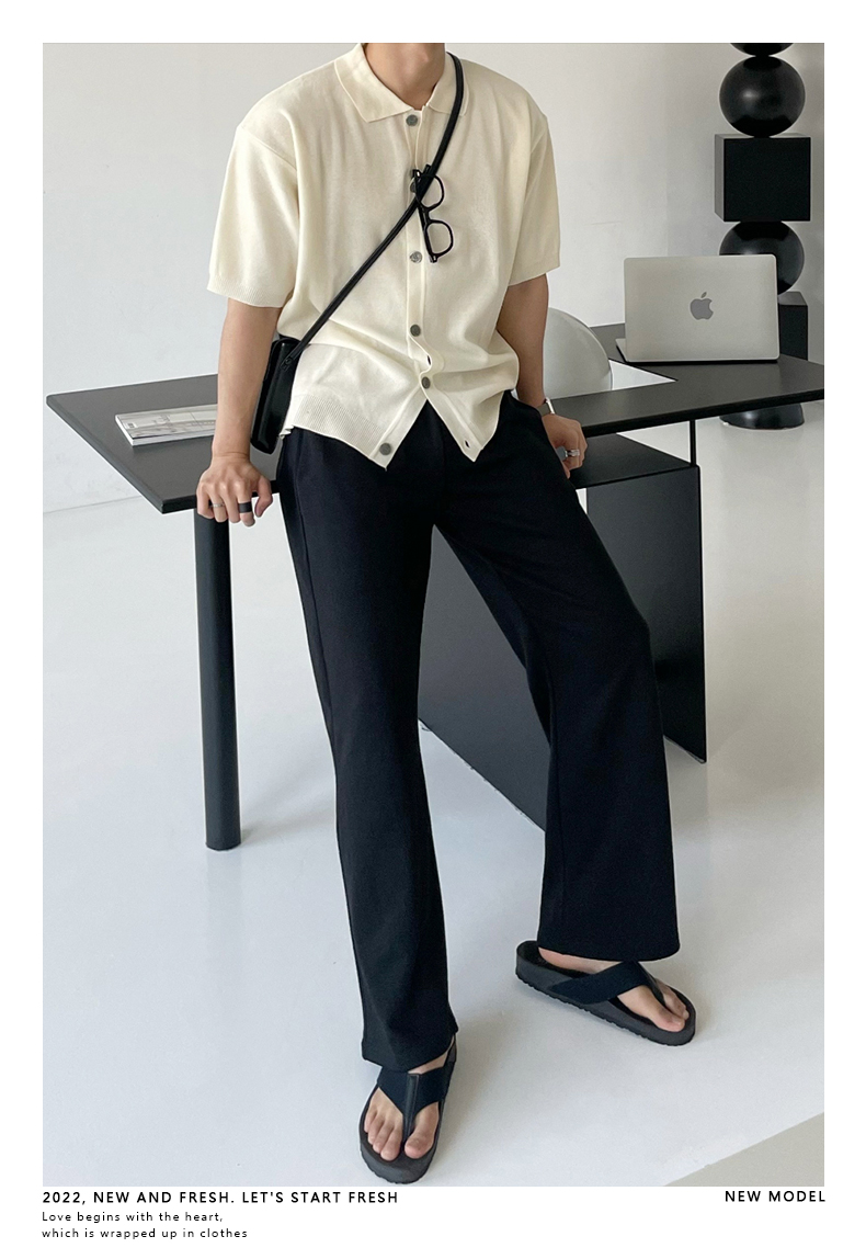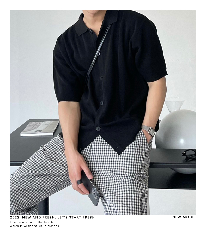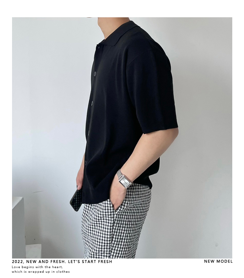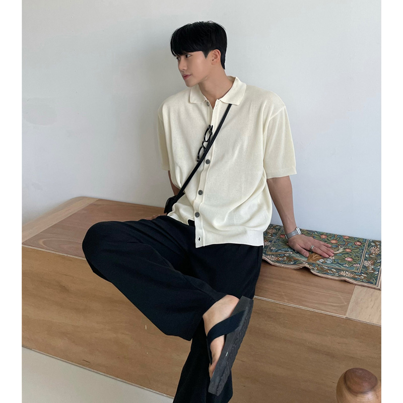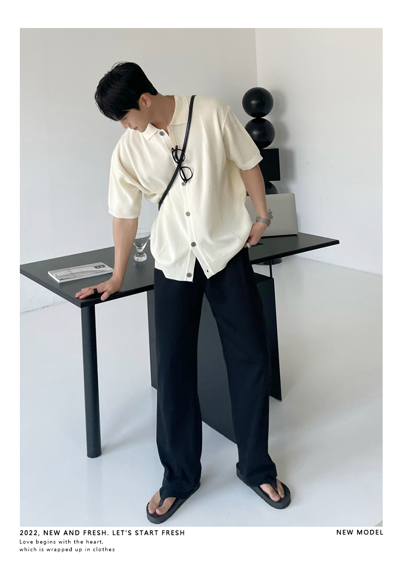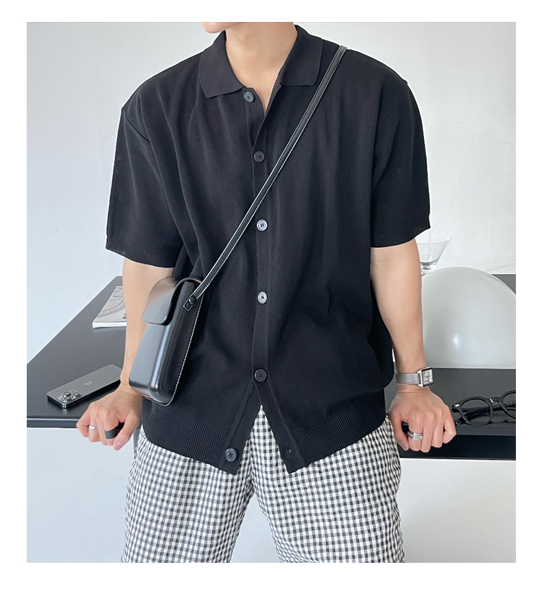 針織polo衫男短袖高級感開衫上衣韓版透氣休閒青年簡約百搭衣服