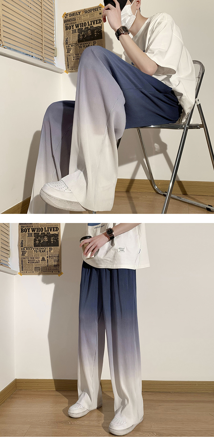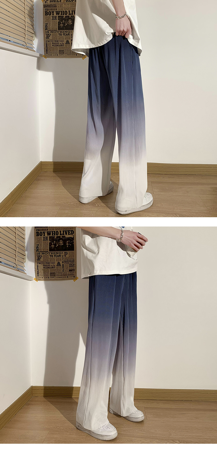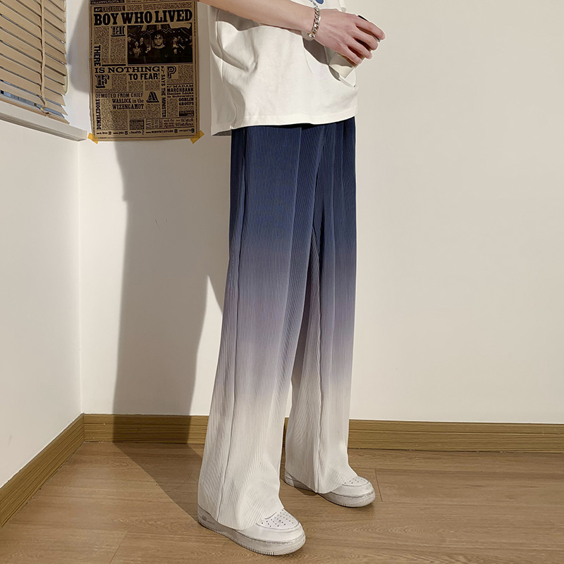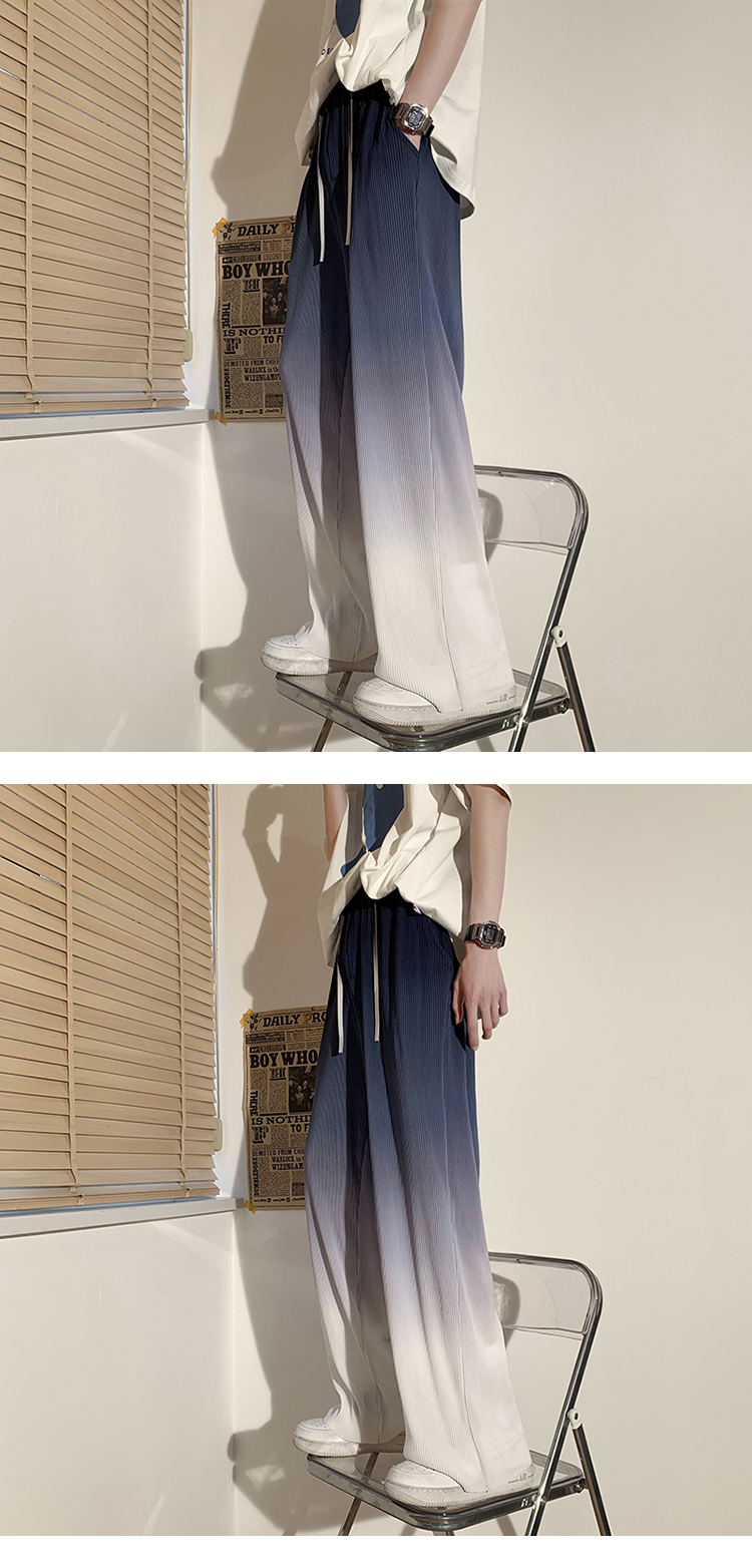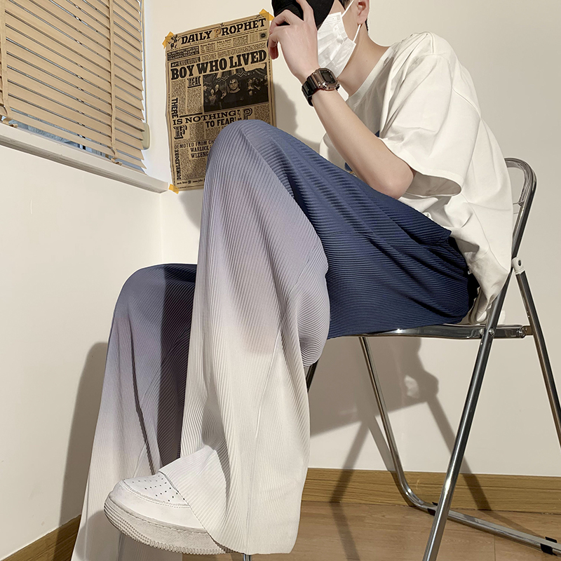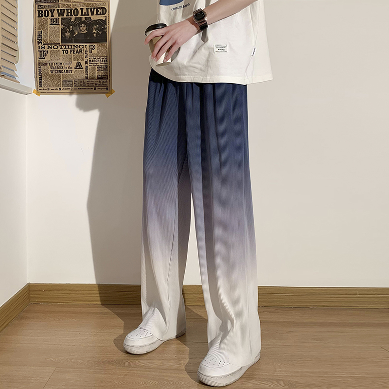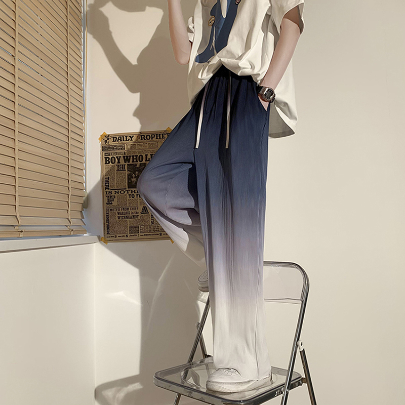 冰絲紮染漸層藍直筒褲子夏季薄款設計垂感闊腿褲韓版潮流休閒褲潮