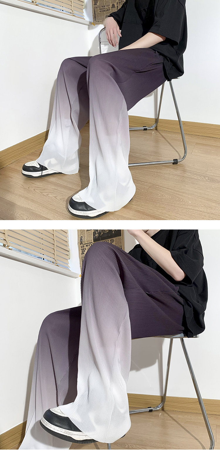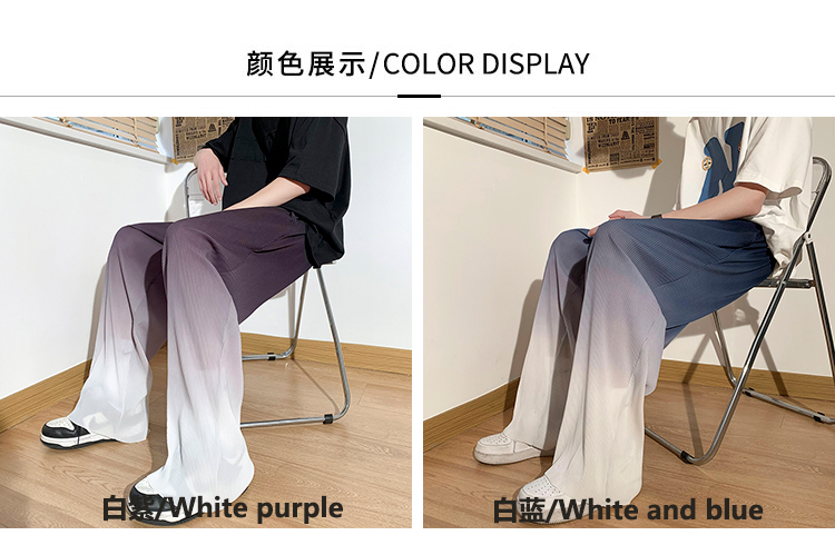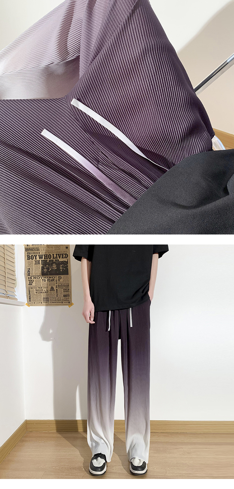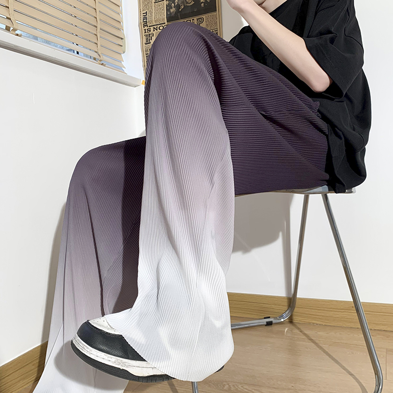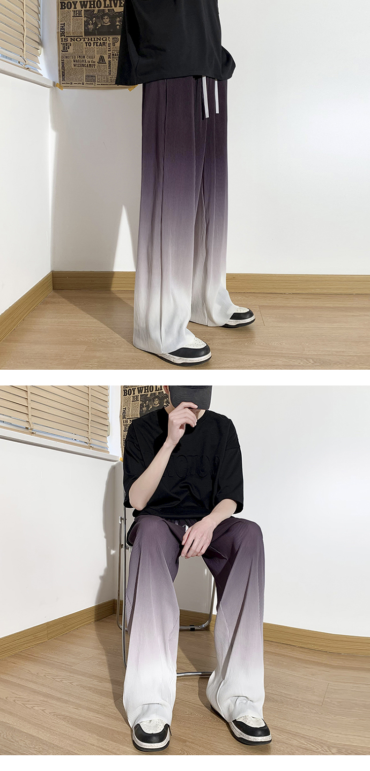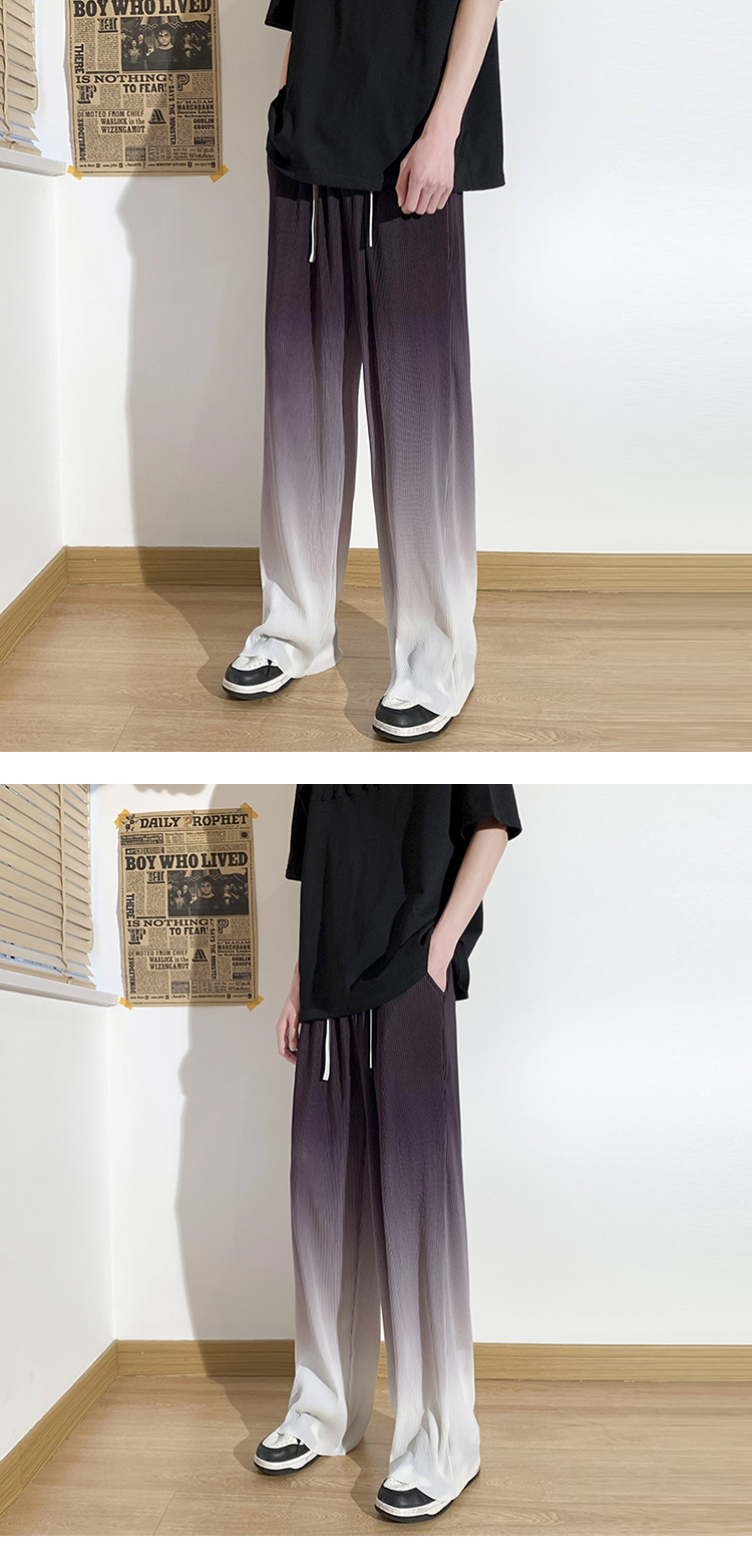 冰絲紮染漸層藍直筒褲子夏季薄款設計垂感闊腿褲韓版潮流休閒褲潮