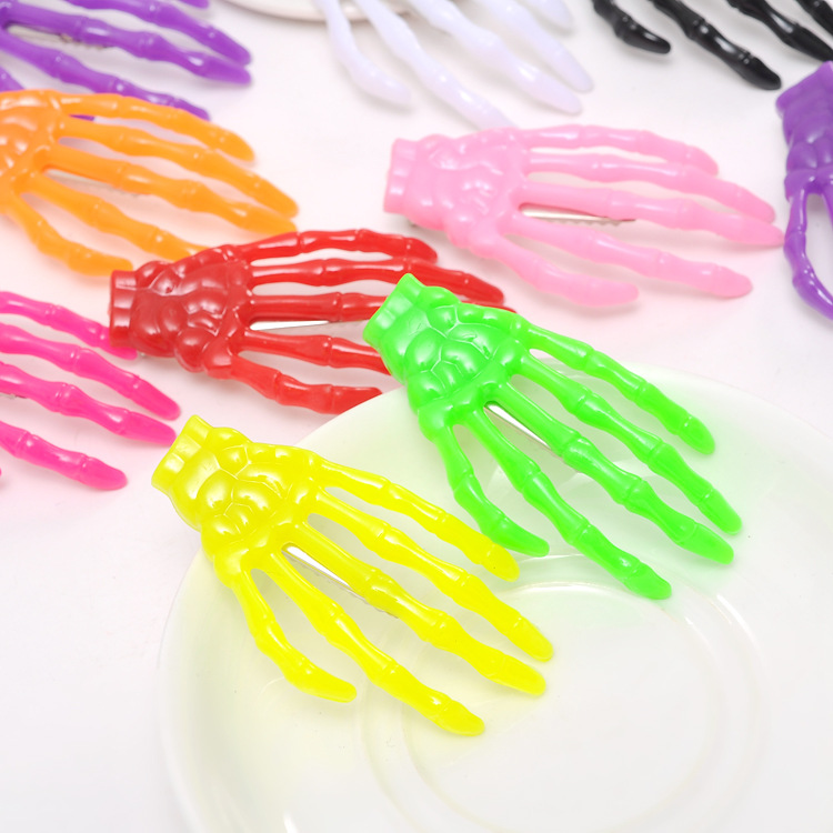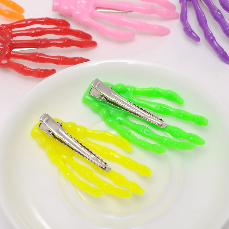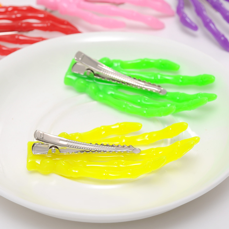 手骨发夹 万圣节鬼爪骷髅手爪荧光发卡 水晶同款原宿发饰批发