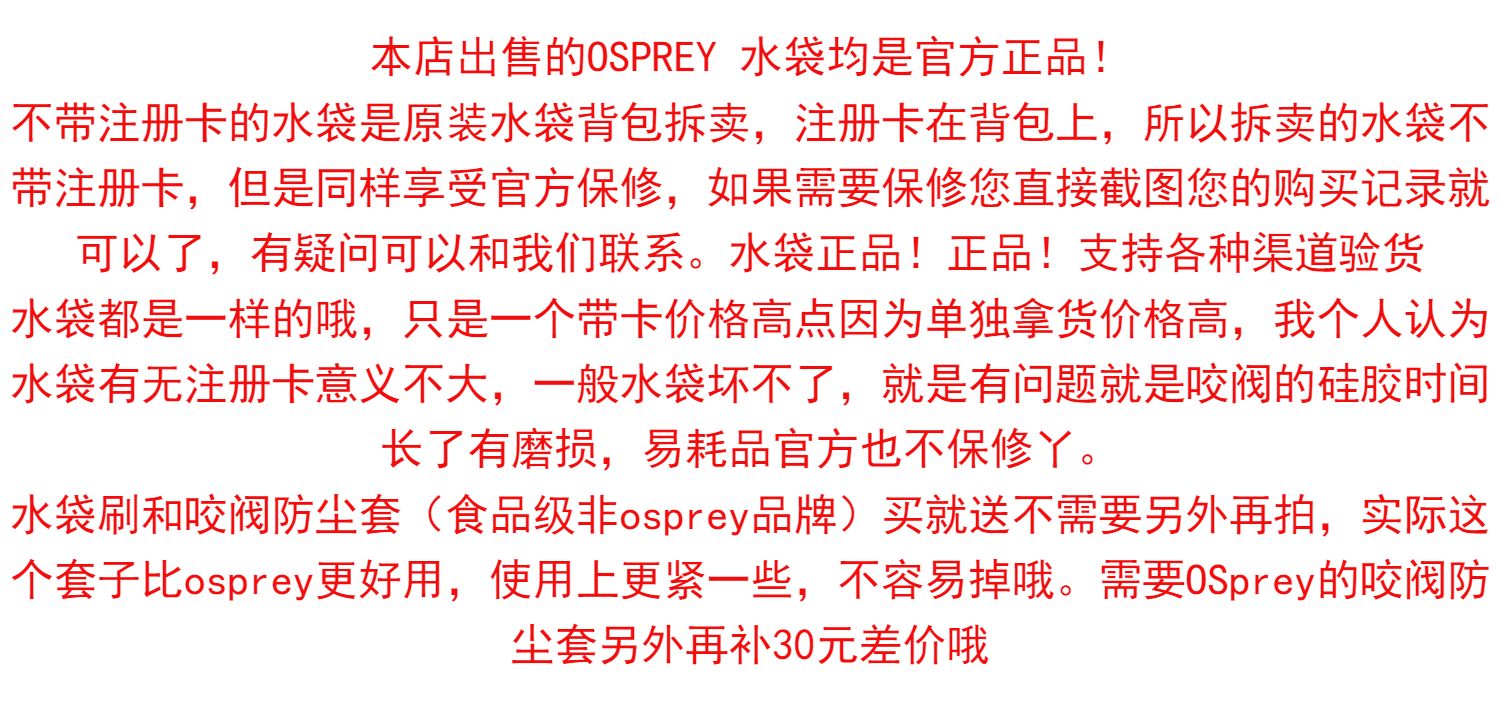 顏色分類 水袋2.5L無註冊卡送軟水壺,3L 不帶註冊卡送非原裝防塵套,不帶卡的1.5L水袋,升級osprey防塵套補差價40