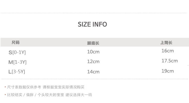 童袜尺码 S 0-1岁,M 1-3岁,L 3-5岁