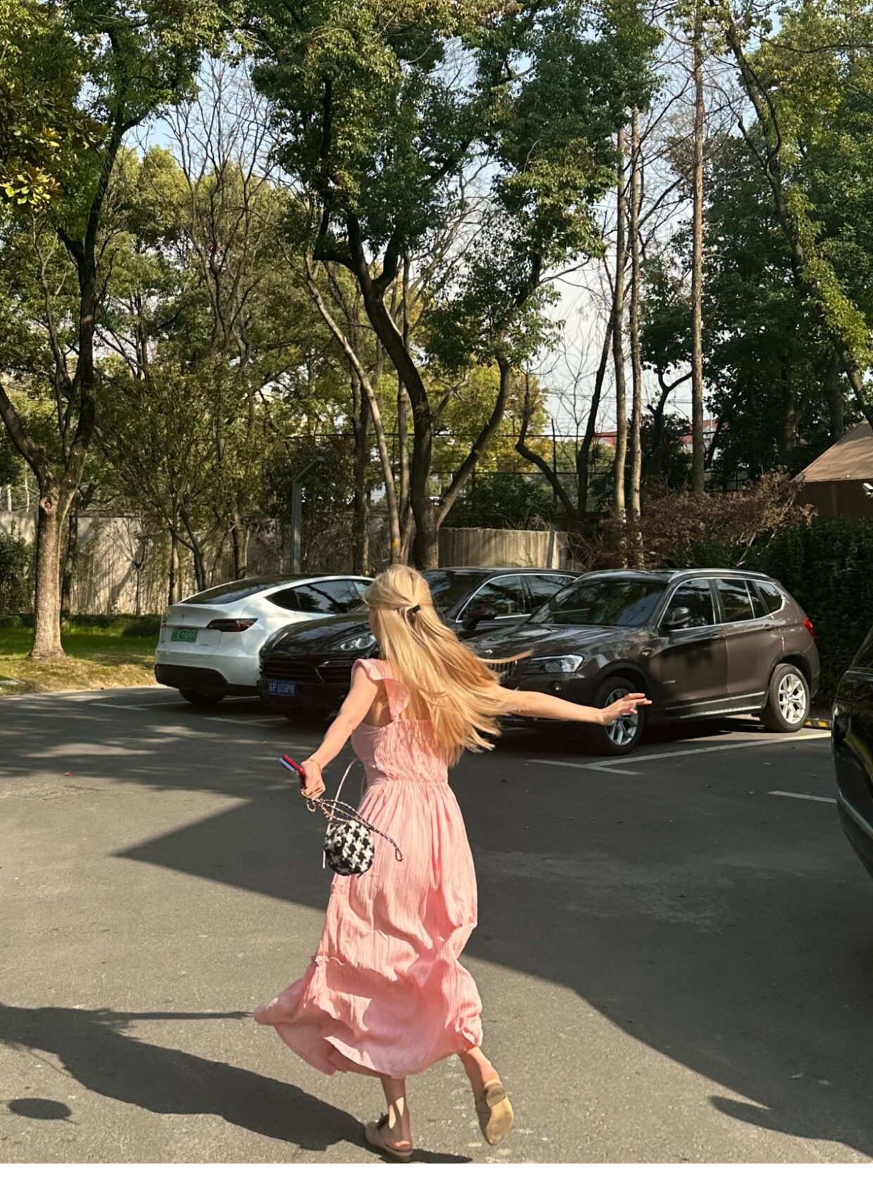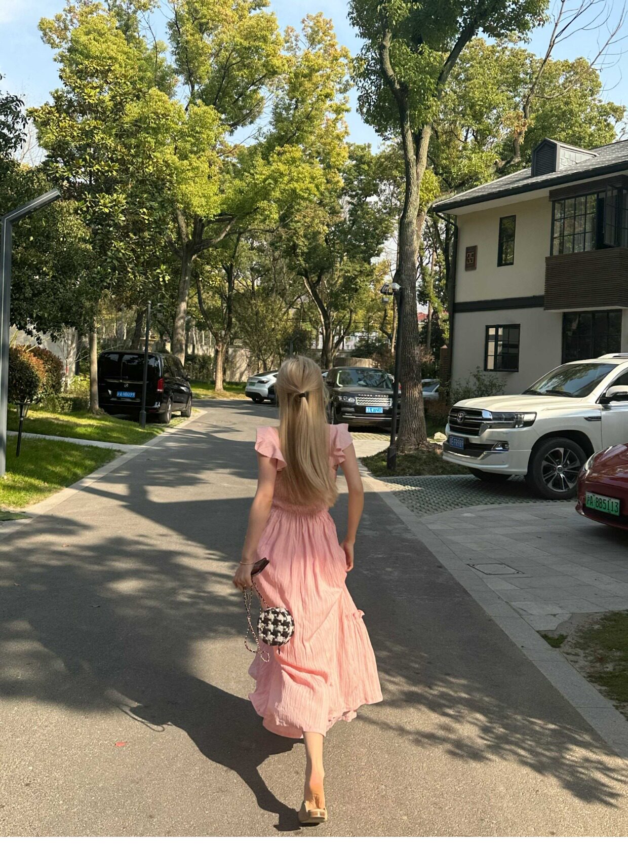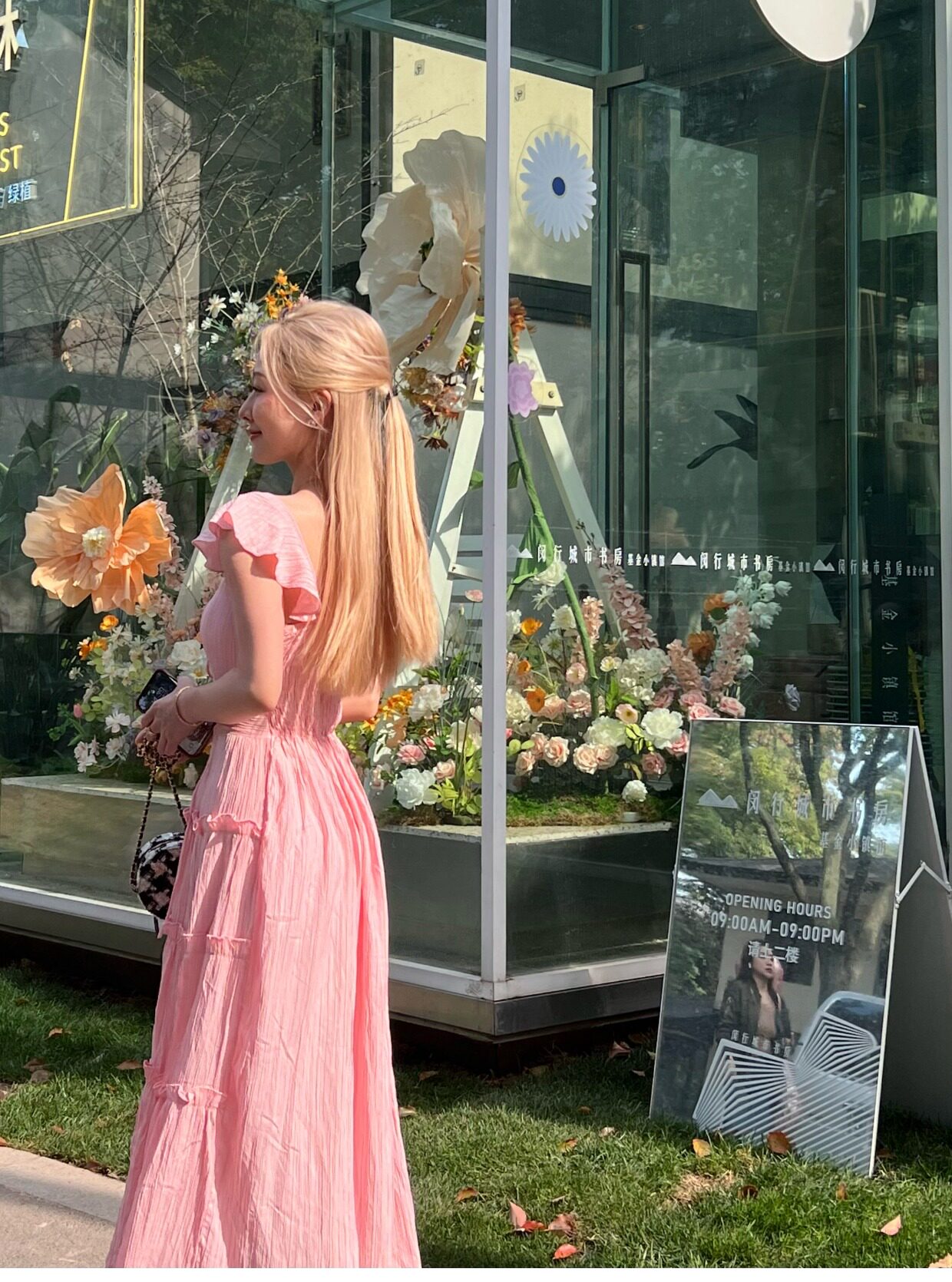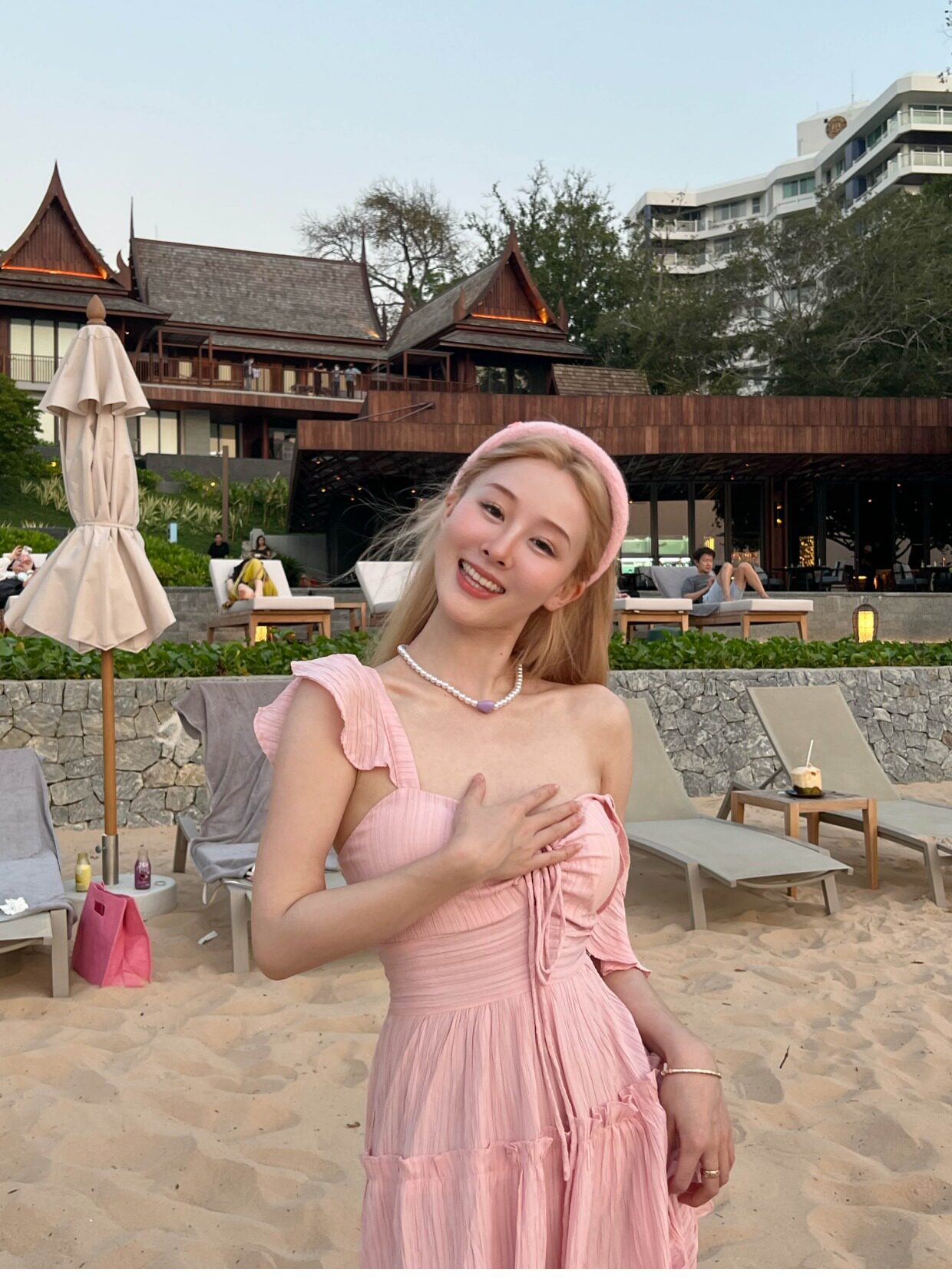 more than dress【愛的1/4吋套筒扳手袖】粉色溫柔收腰抹胸洋裝