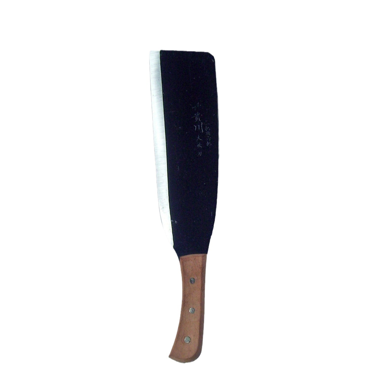 云贵川牌木夹柄柴刀系列采用厚度为3.5mm厚的65号锰钢板经冲床下料、开口、高频油浸淬火、热油回火、精磨等几道工序精制而成,刀口硬度可达HRC56-58度,确保刀口不卷不崩,而且锋利无比!