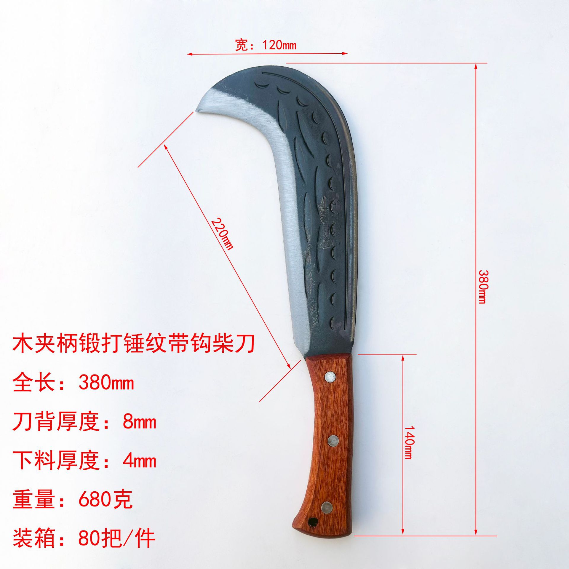 规格 木夹柄37公分木直口柴刀,木夹柄39公分直口柴刀,木夹柄锻打锤纹带钩柴刀