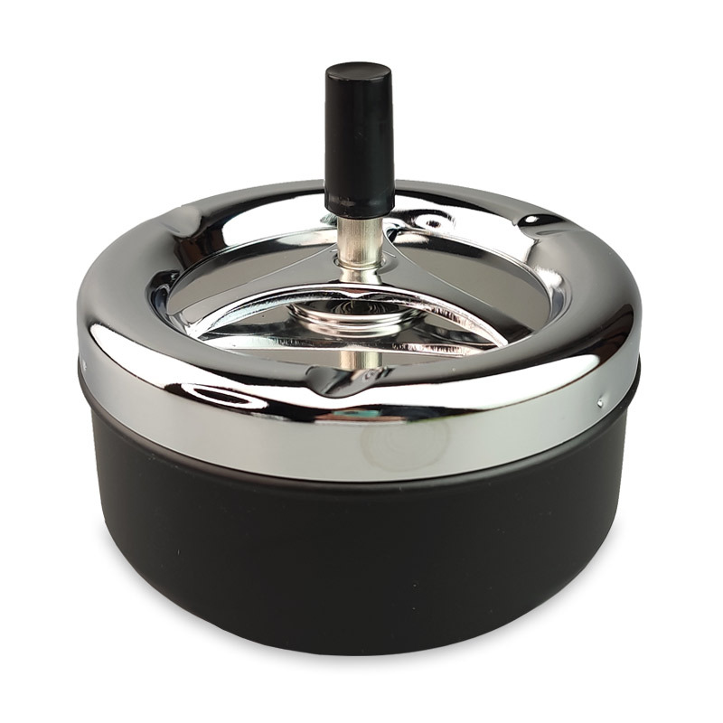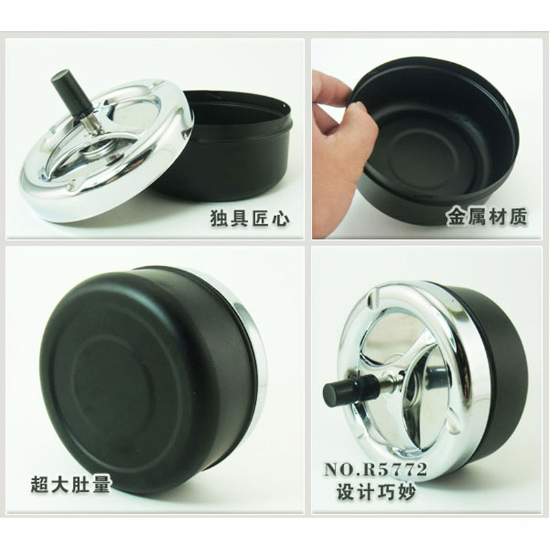 商品名称: 手指按压旋转烟缸 自动清洁环保烟灰缸 安全防火金属烟灰缸 大号黑色