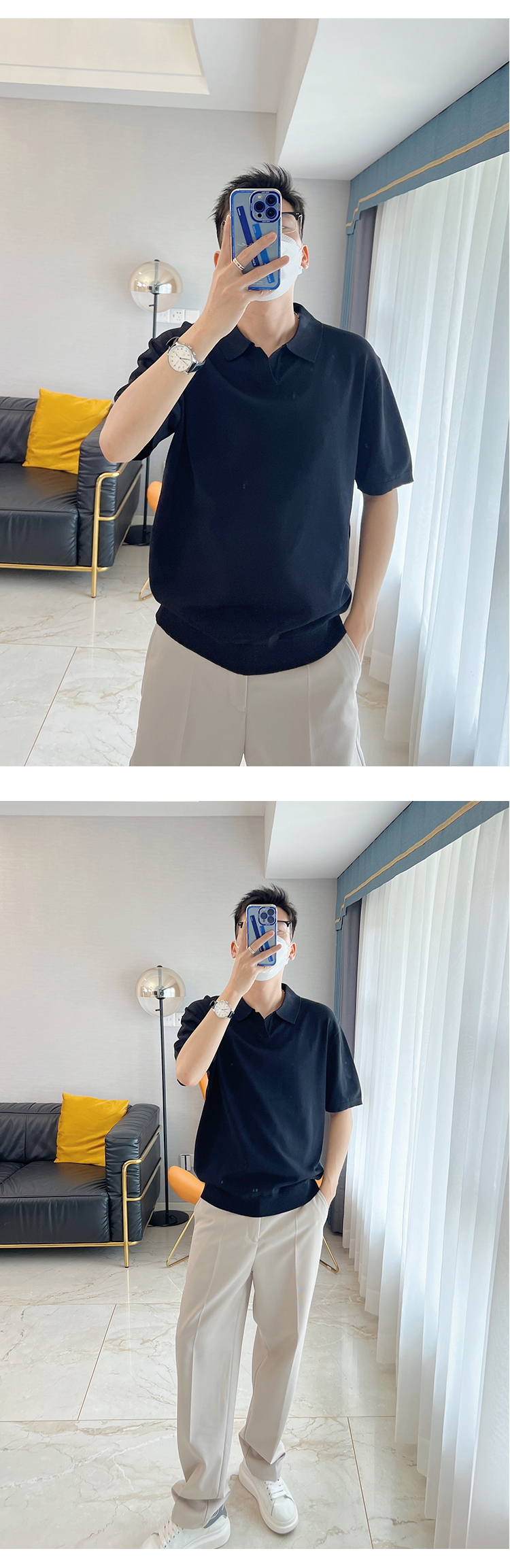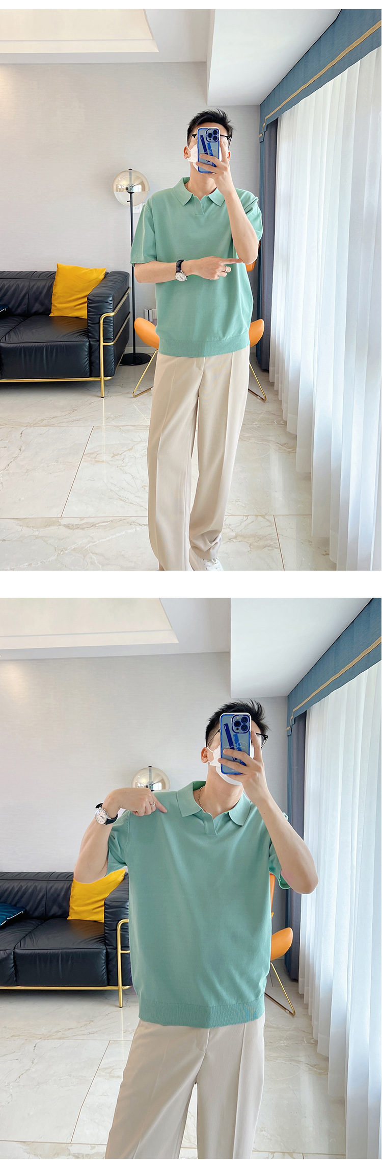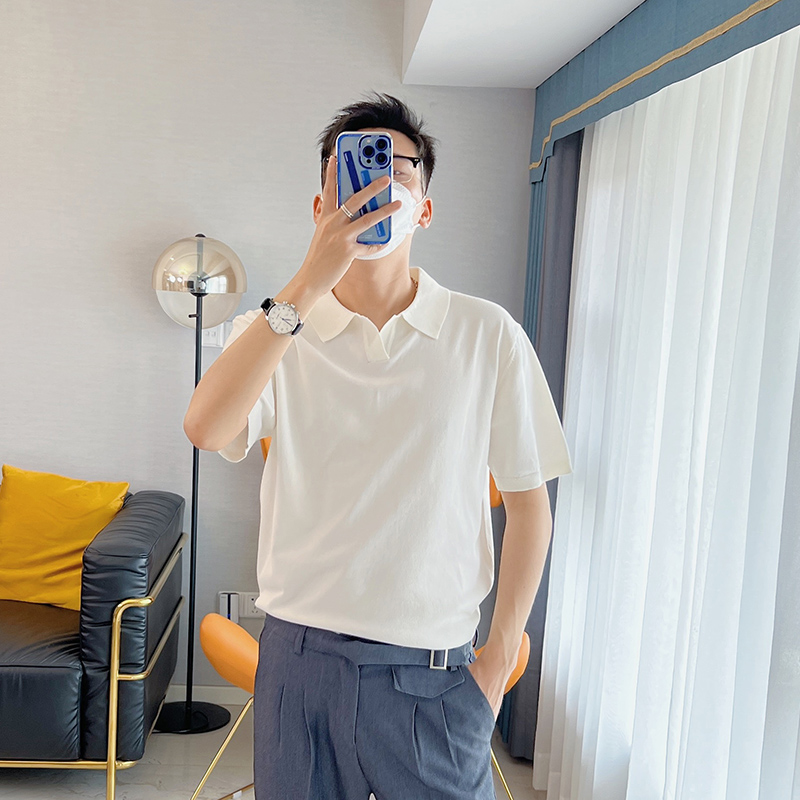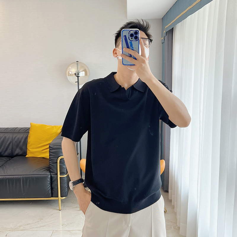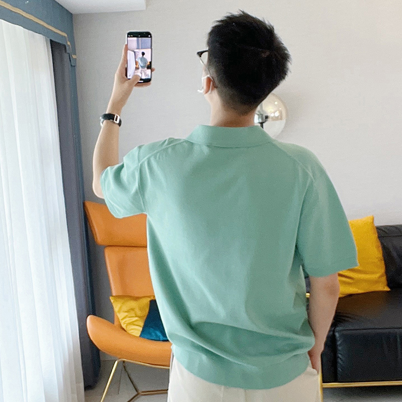朱渣渣 polo衫男短袖夏季薄款針織純色冰絲t韓版潮流透氣休閒T恤