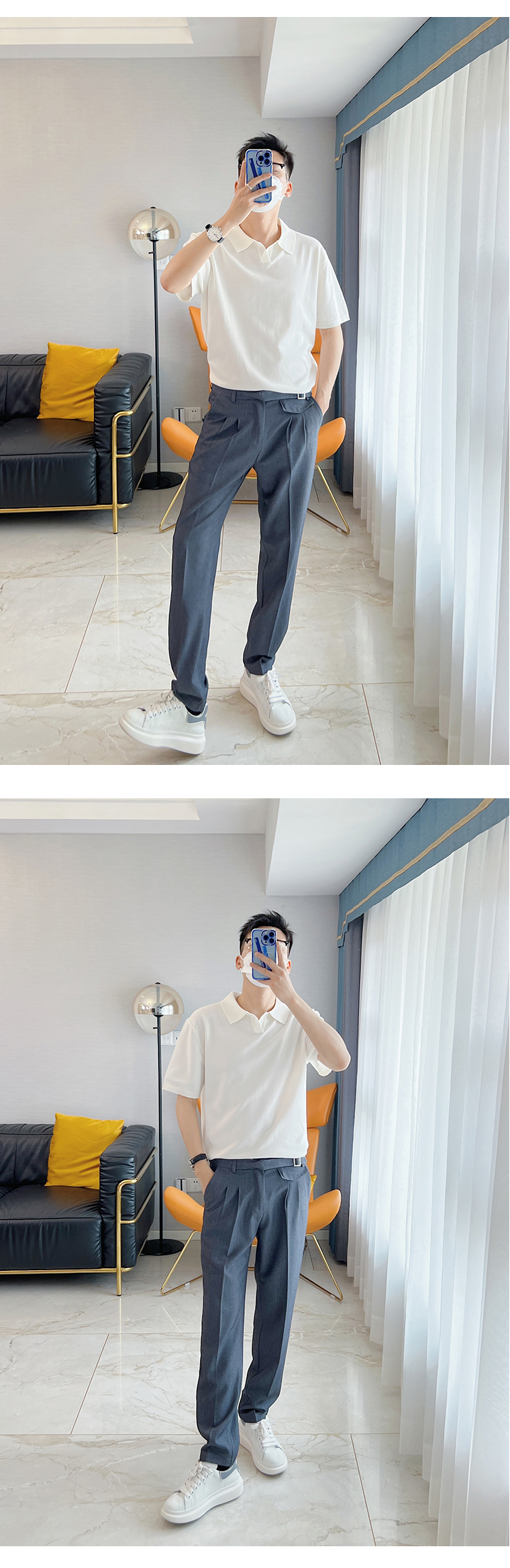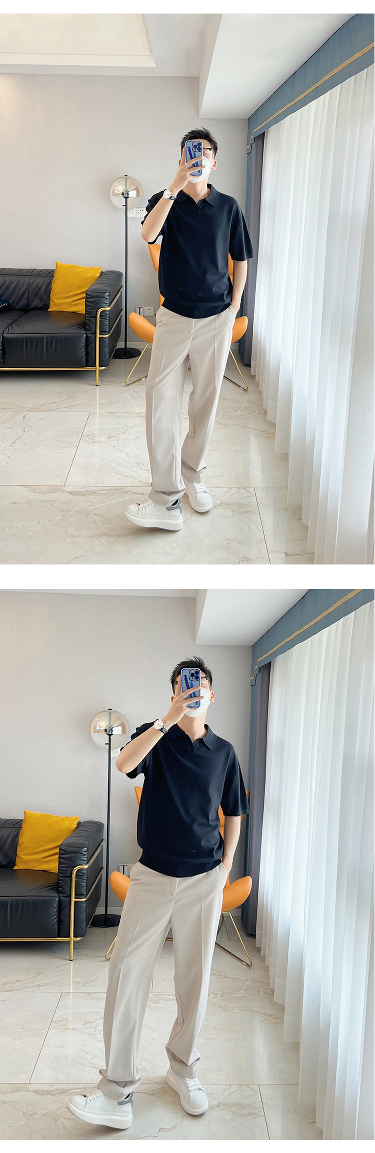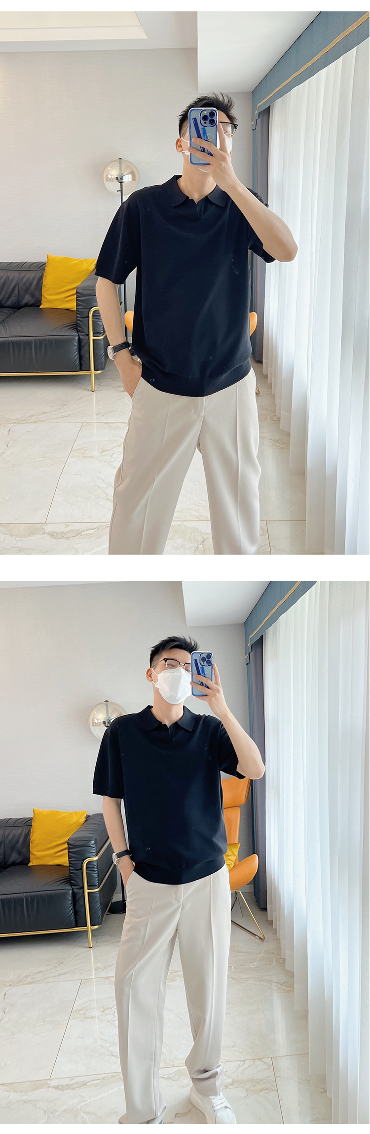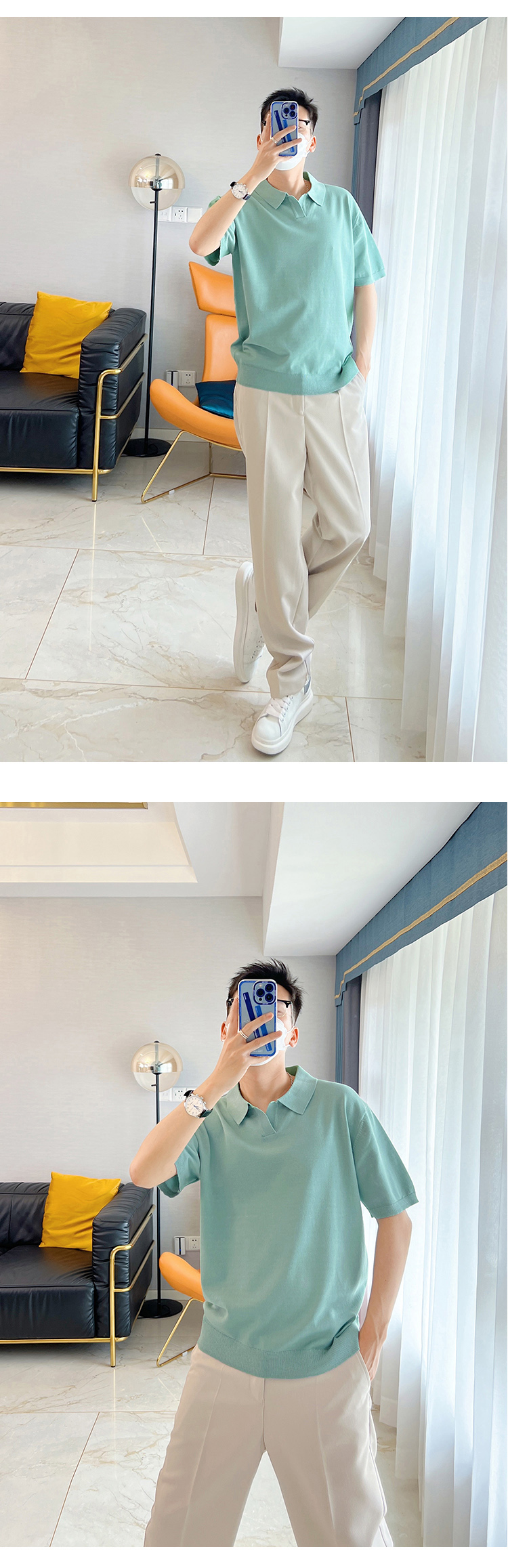 朱渣渣 polo衫男短袖夏季薄款針織純色冰絲t韓版潮流透氣休閒T恤