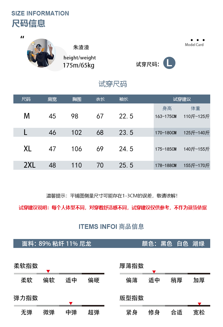 尺碼 M,L,XL,2XL,模特身高175體重130試穿L碼