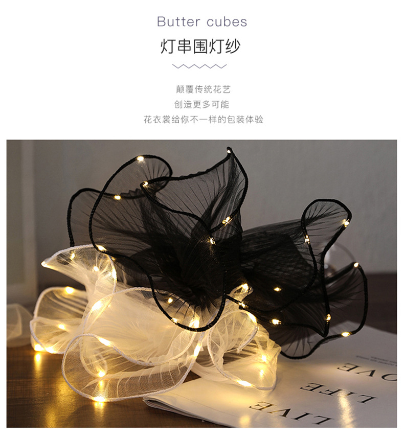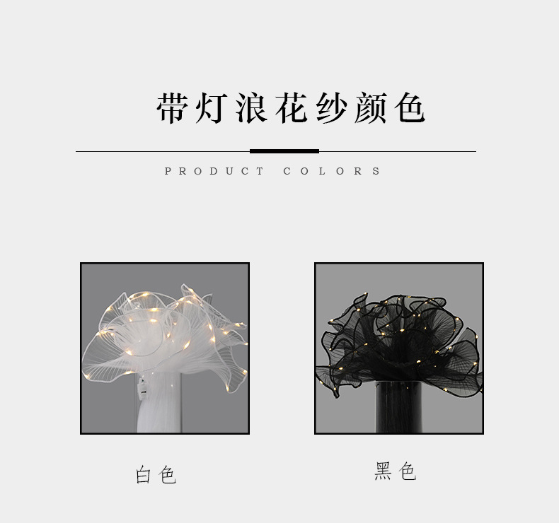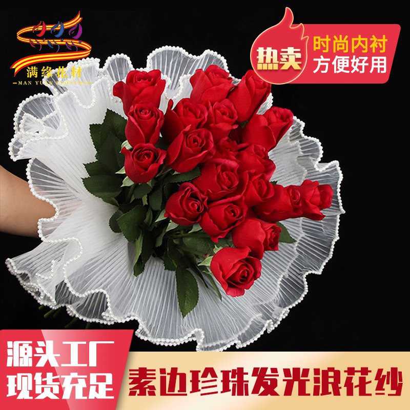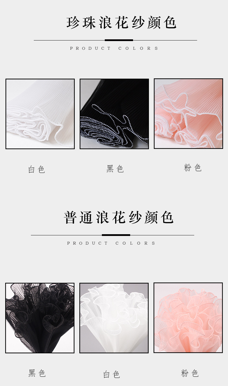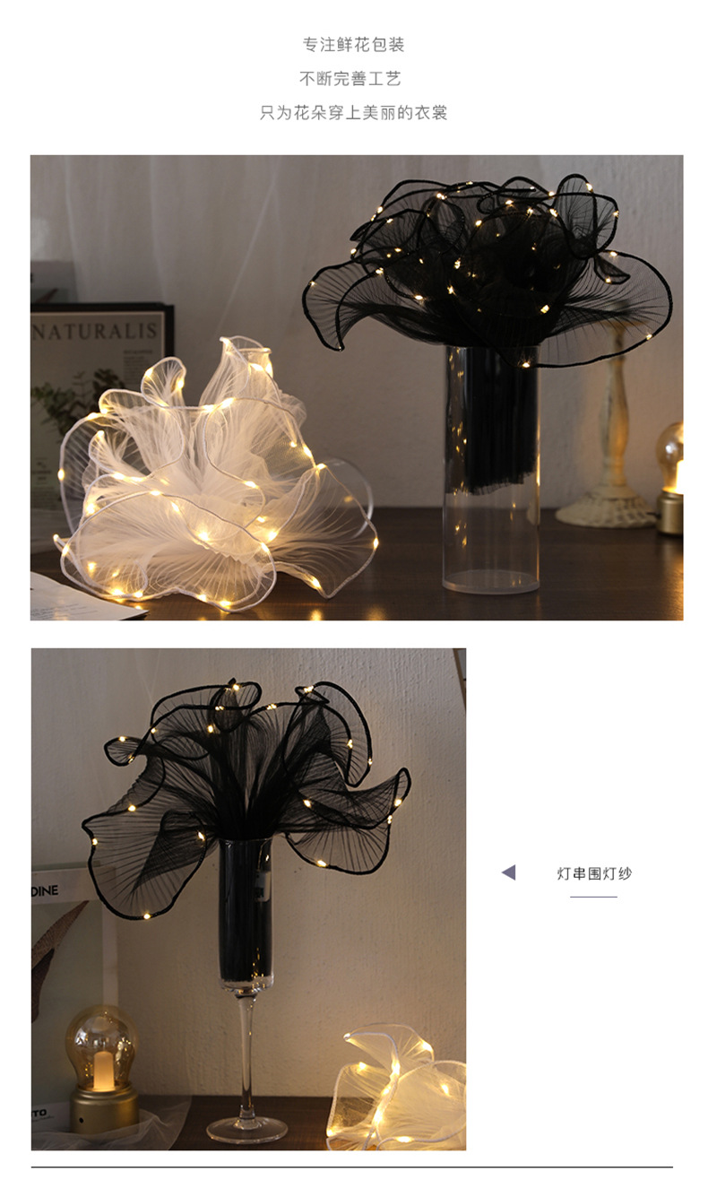 珍珠波浪纱发光浪花纱发光鲜花纱网黑色花束网纱花艺包装纸材料