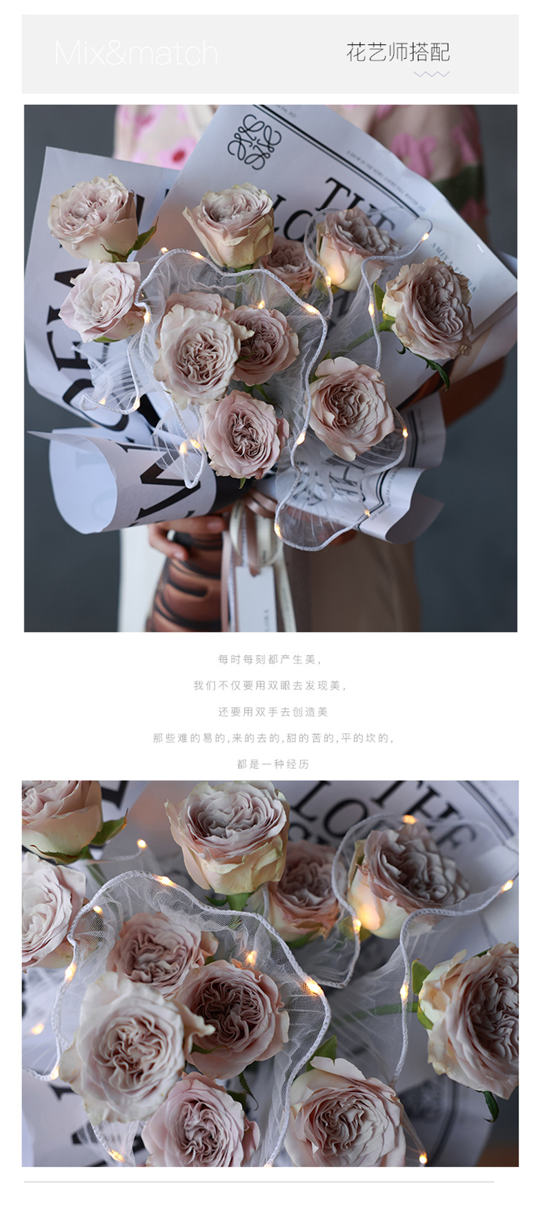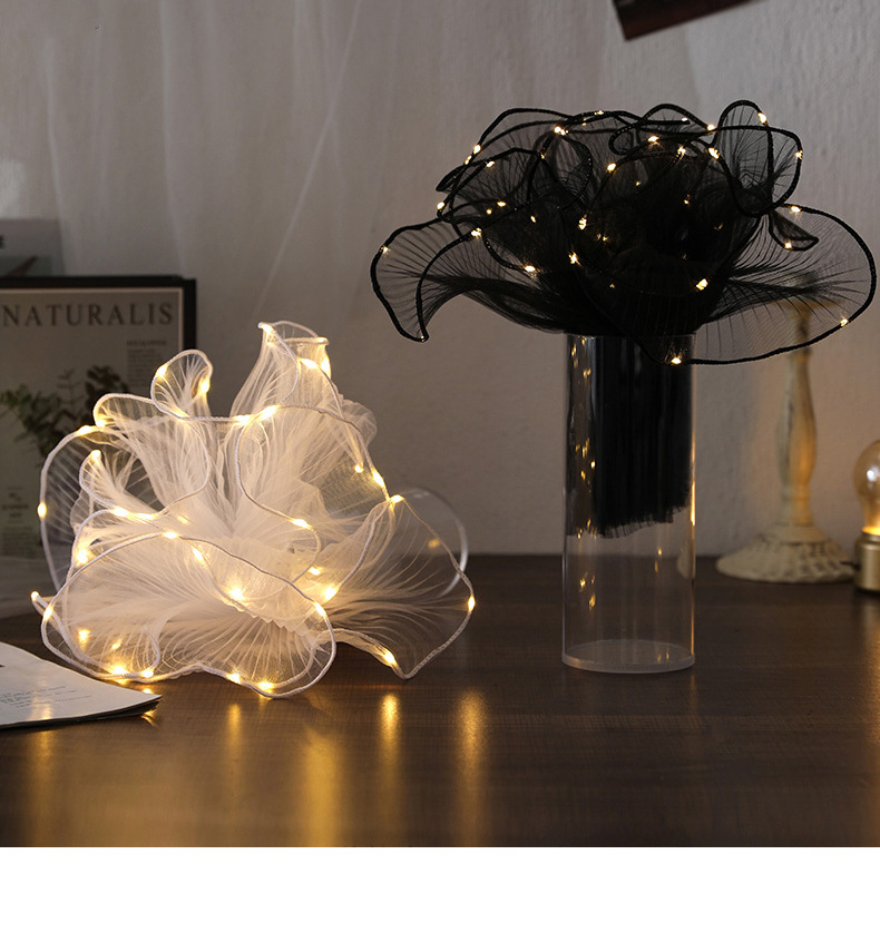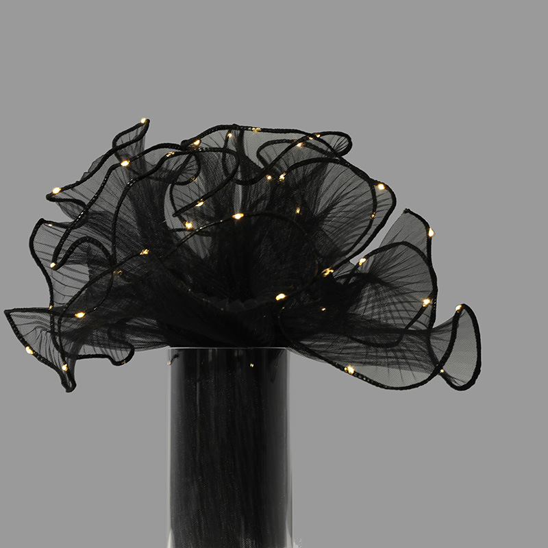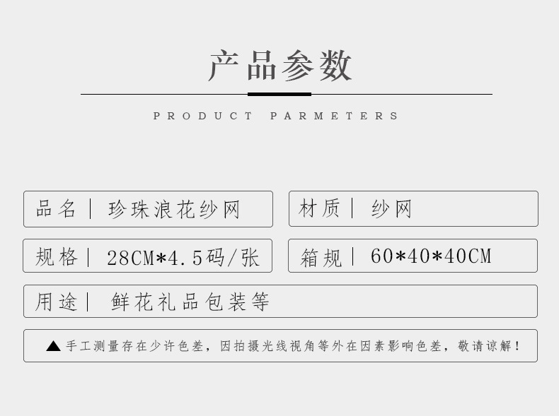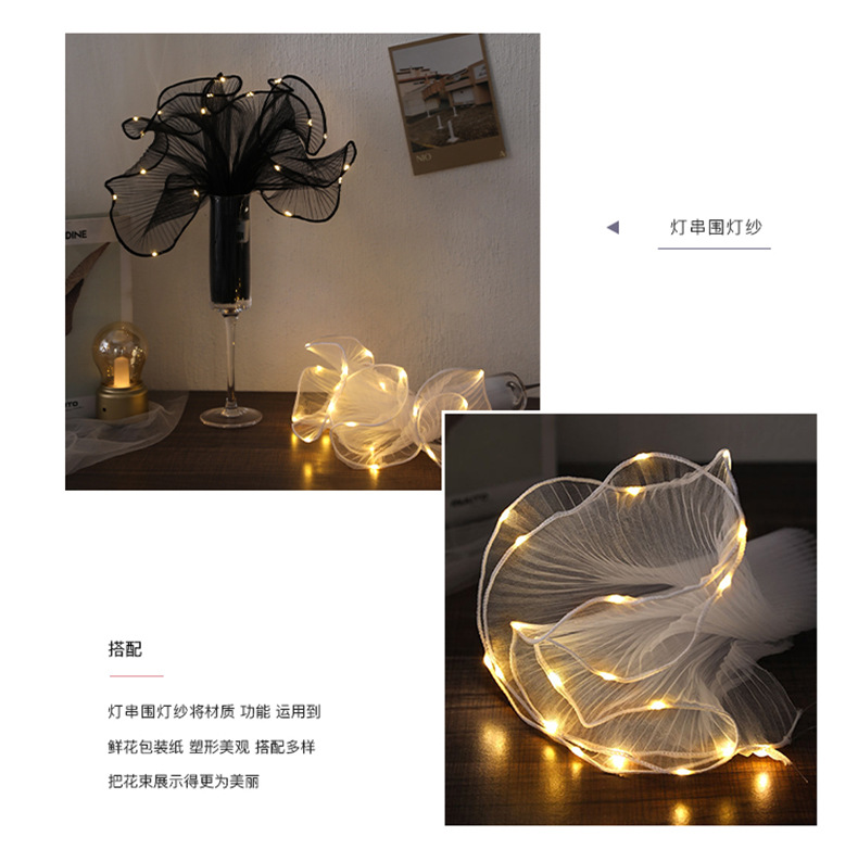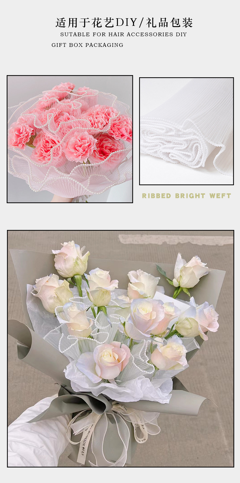 珍珠波浪纱发光浪花纱发光鲜花纱网黑色花束网纱花艺包装纸材料