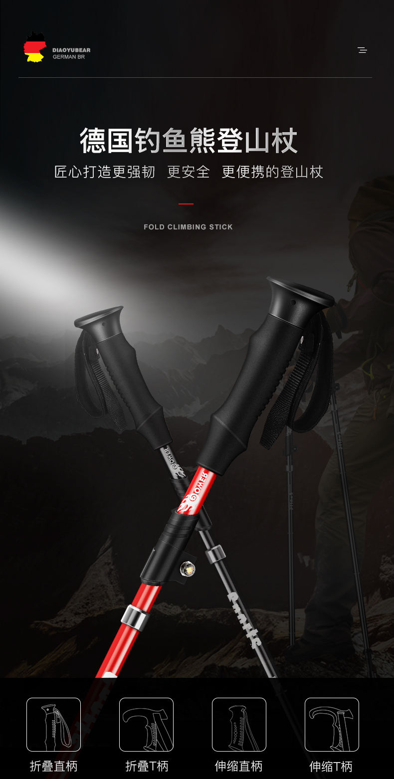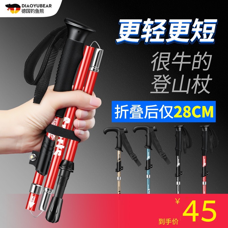 超輕摺疊登山杖伸縮手杖男女爬山裝備防滑柺杖戶外多功能行山柺棍
