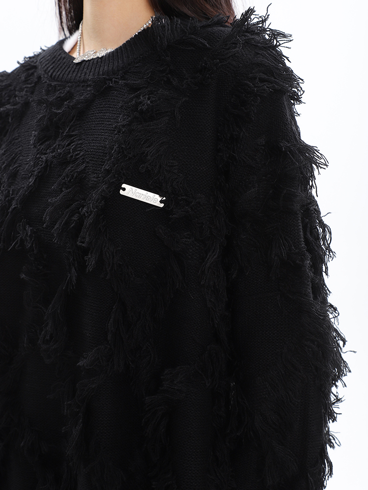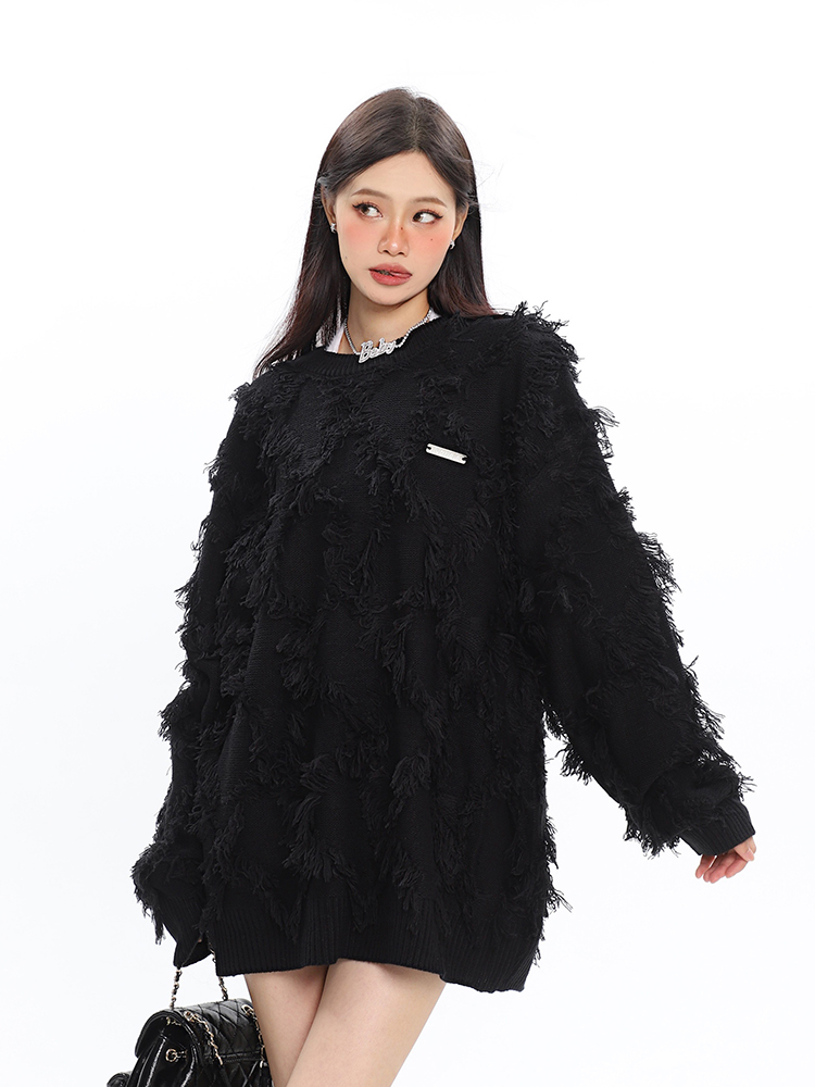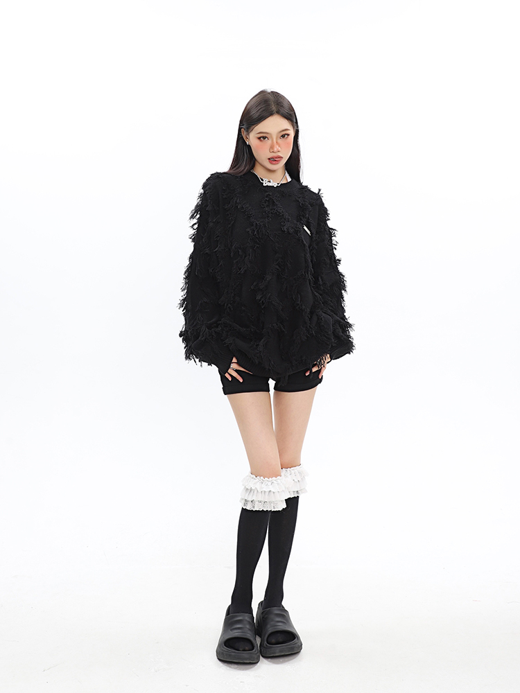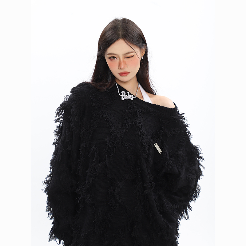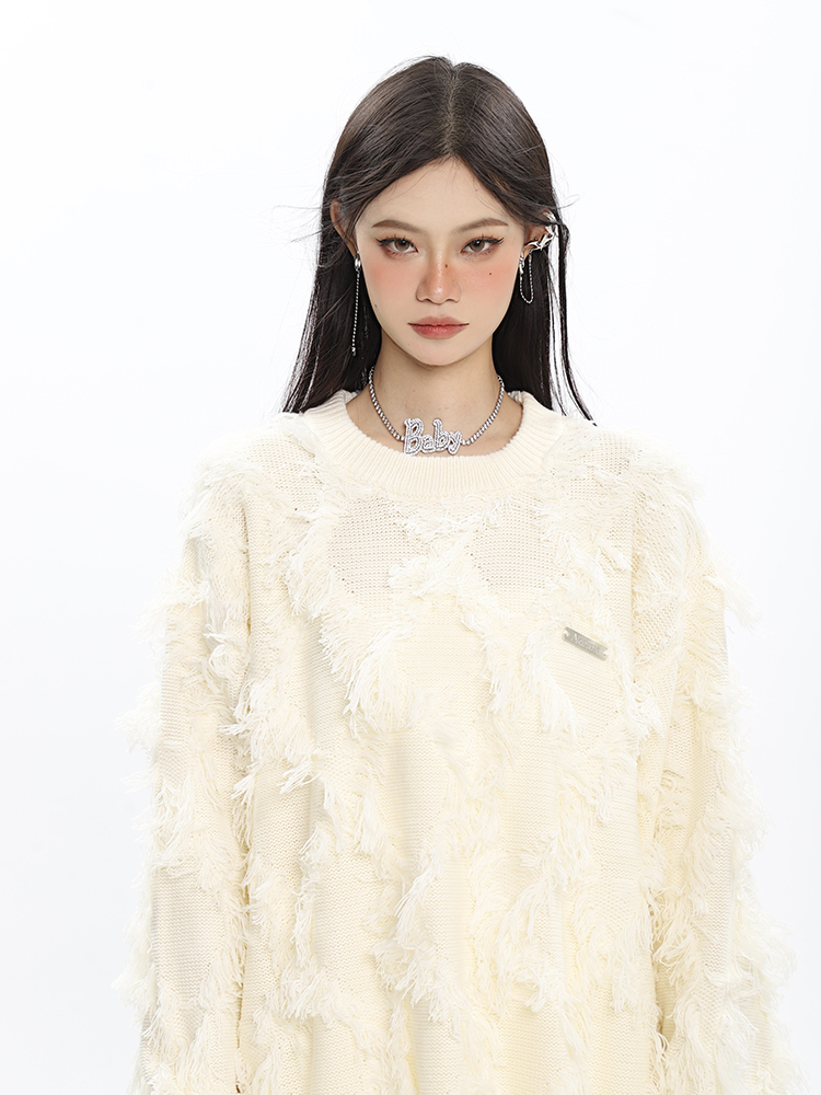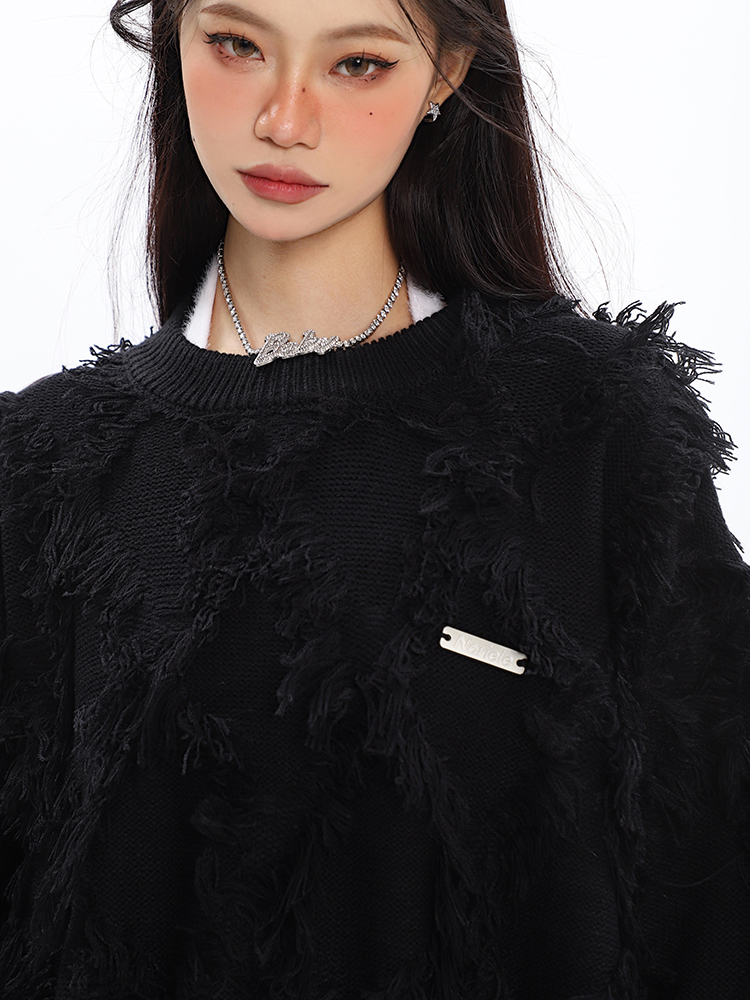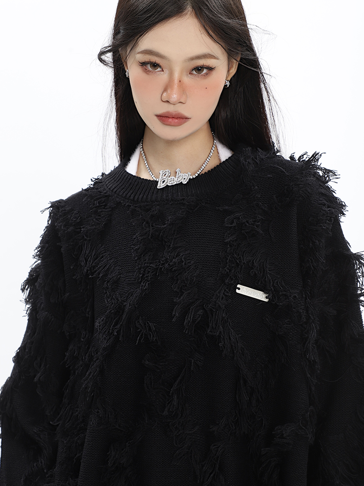 CCUPSPACE 小眾甜酷流蘇設計感情侶裝圓領純色套頭毛衣2023年新款