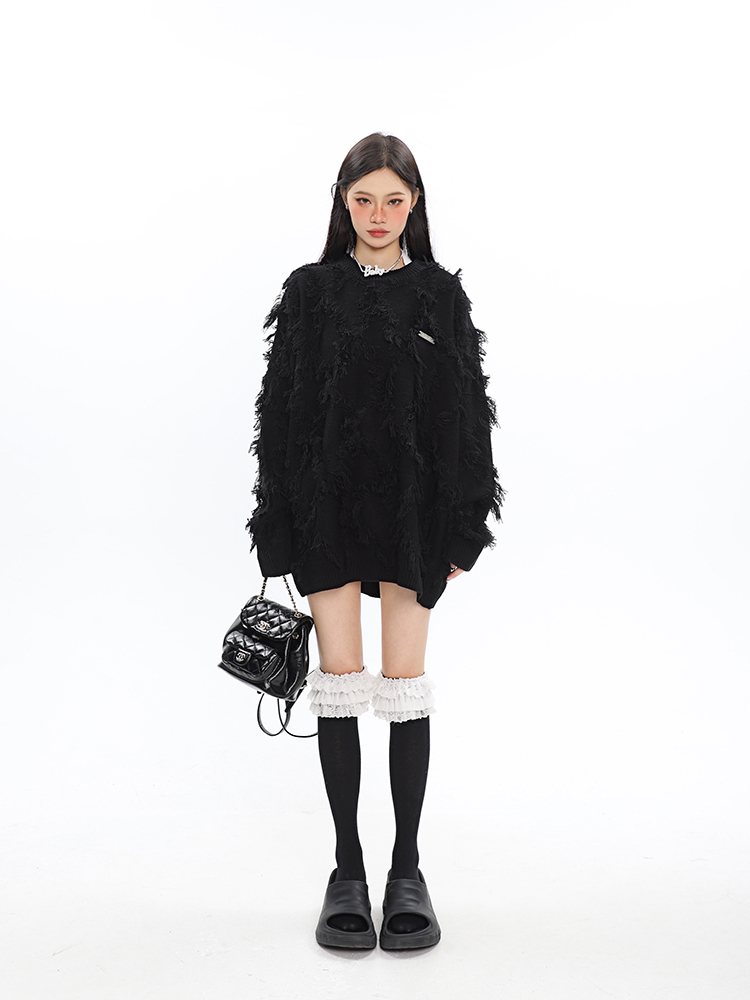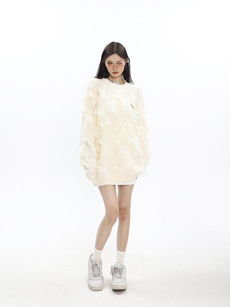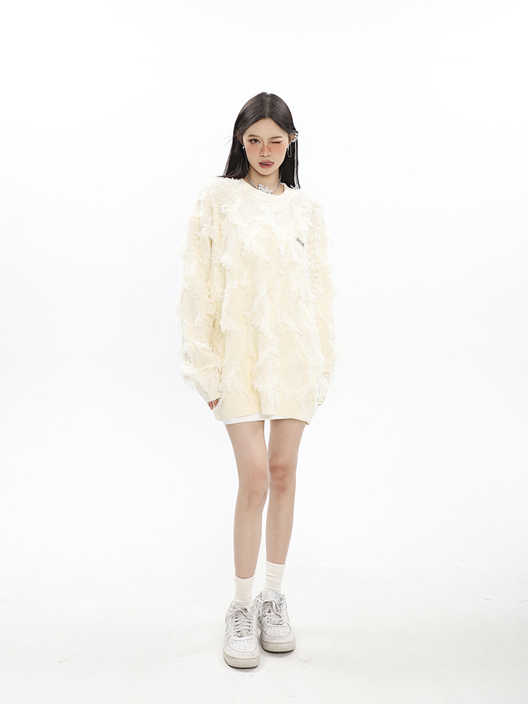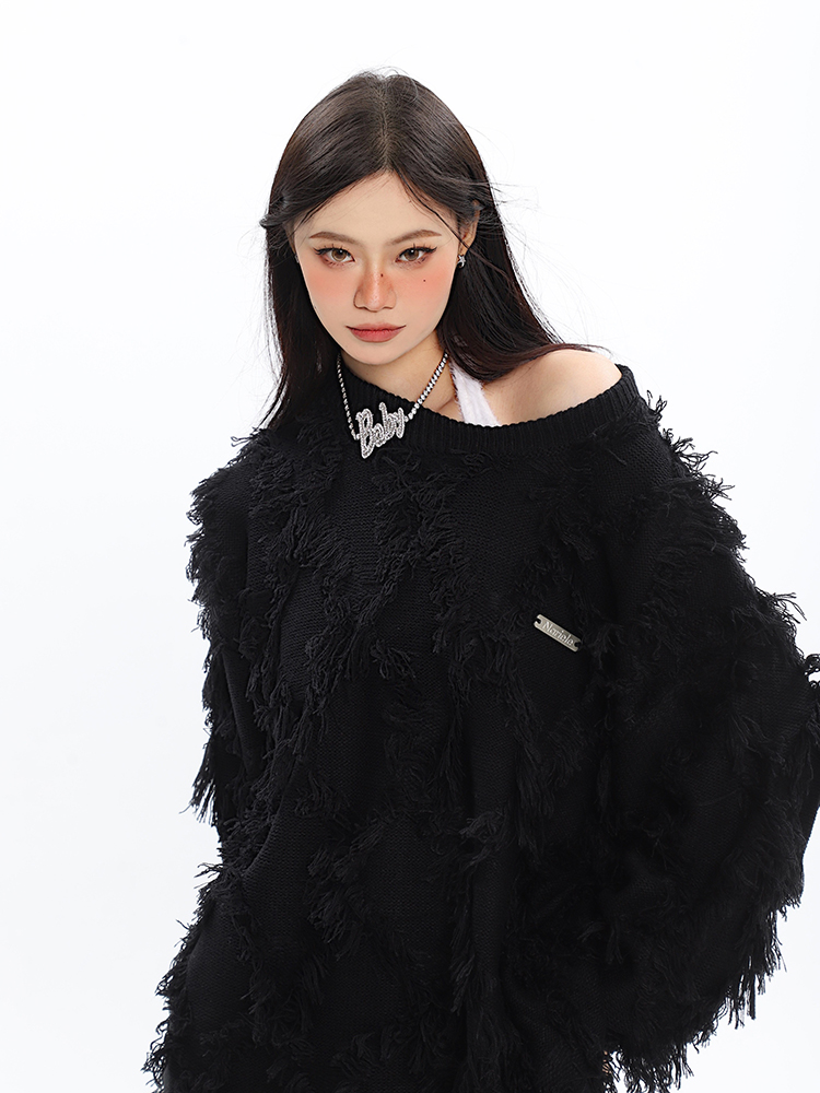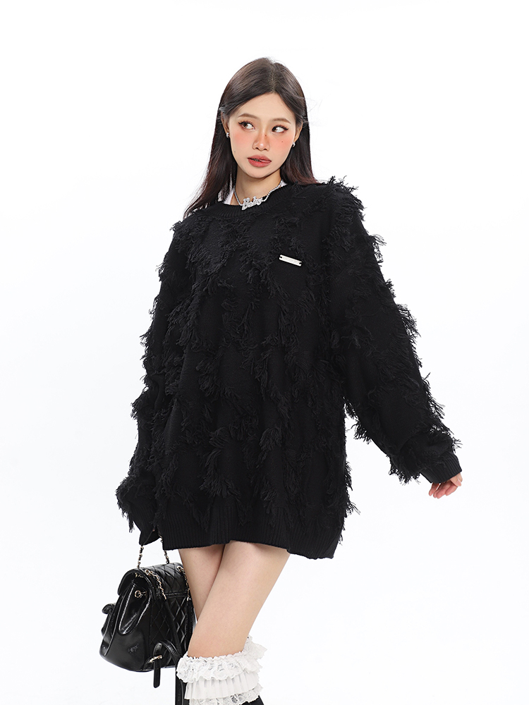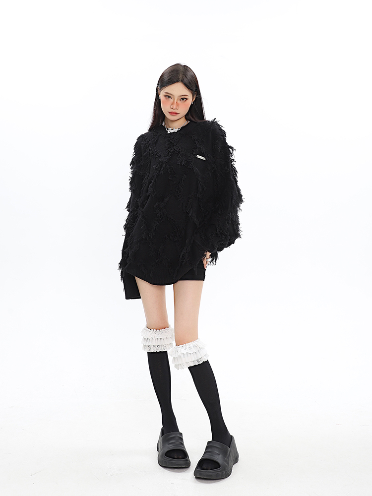 CCUPSPACE 小眾甜酷流蘇設計感情侶裝圓領純色套頭毛衣2023年新款