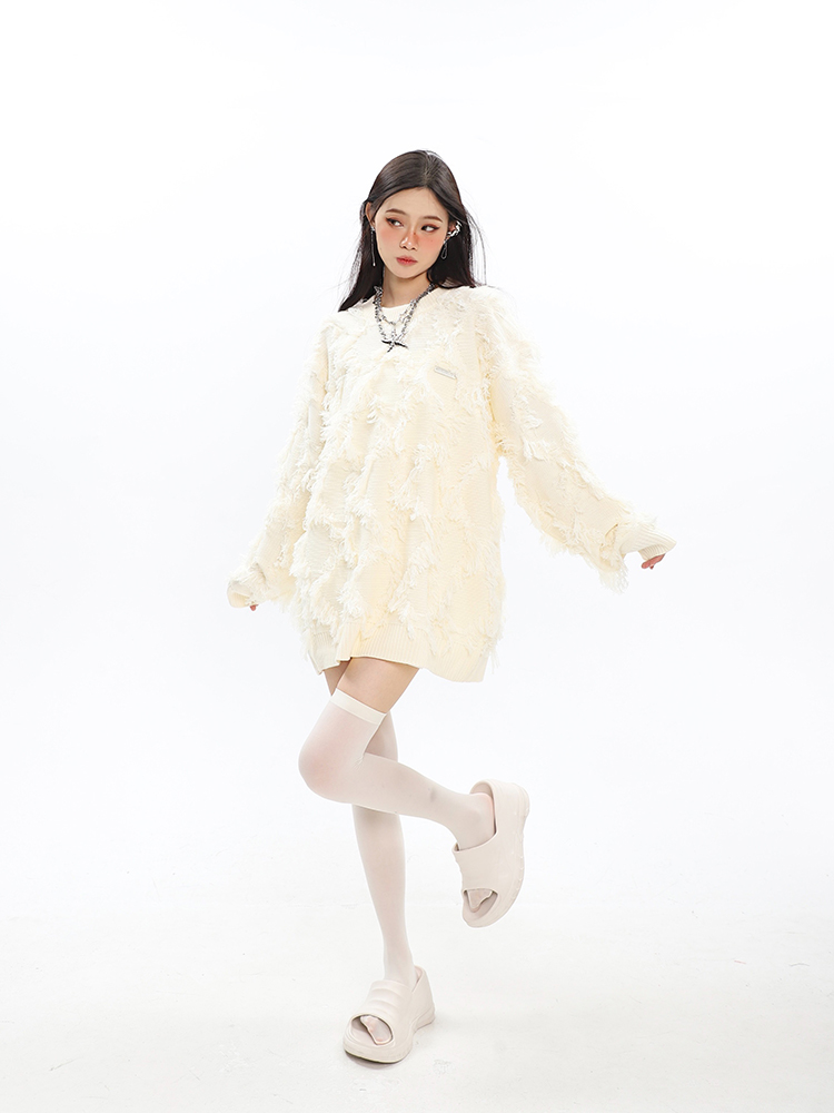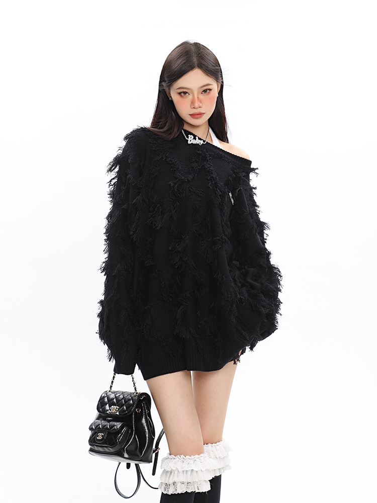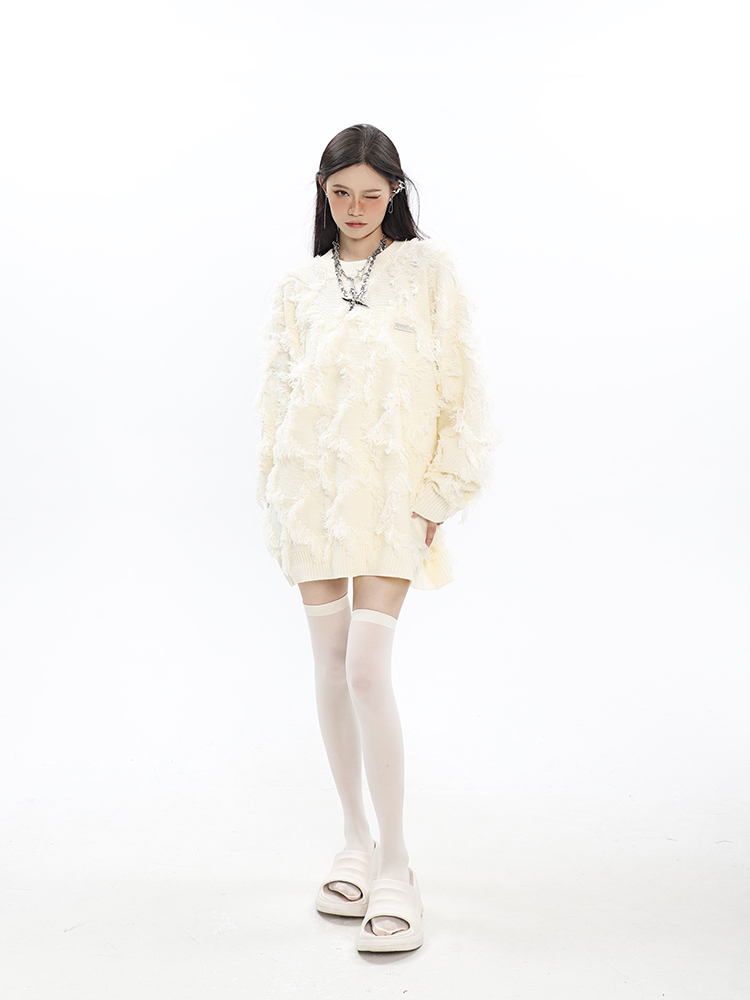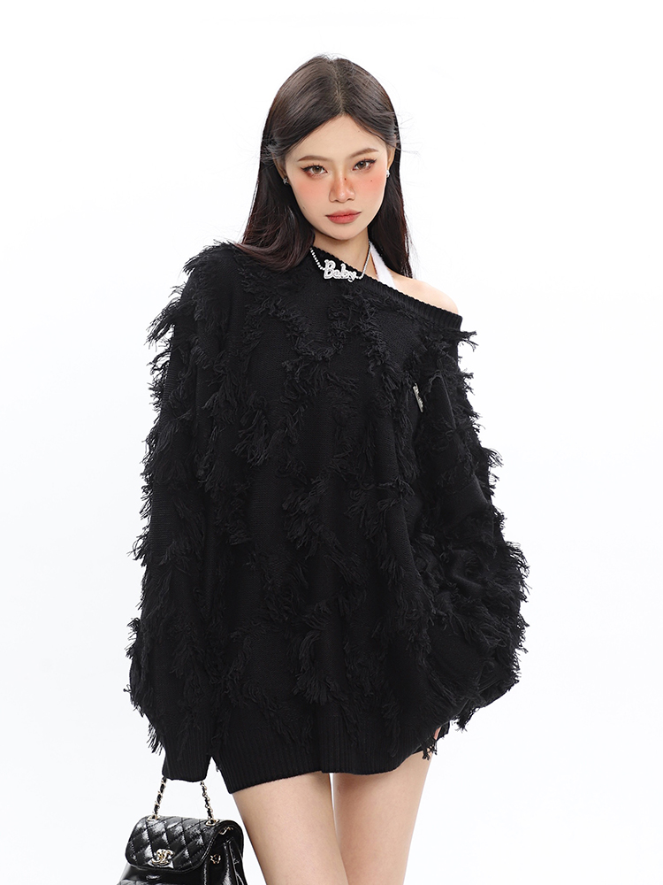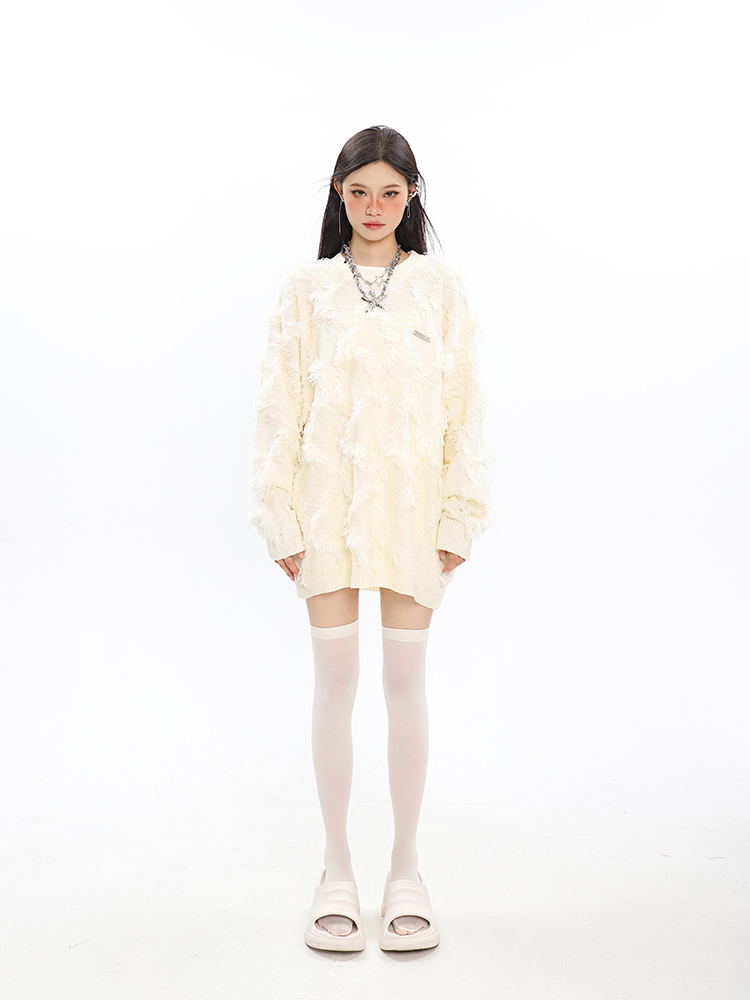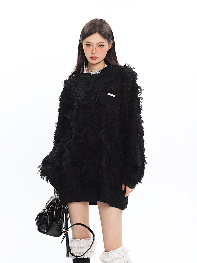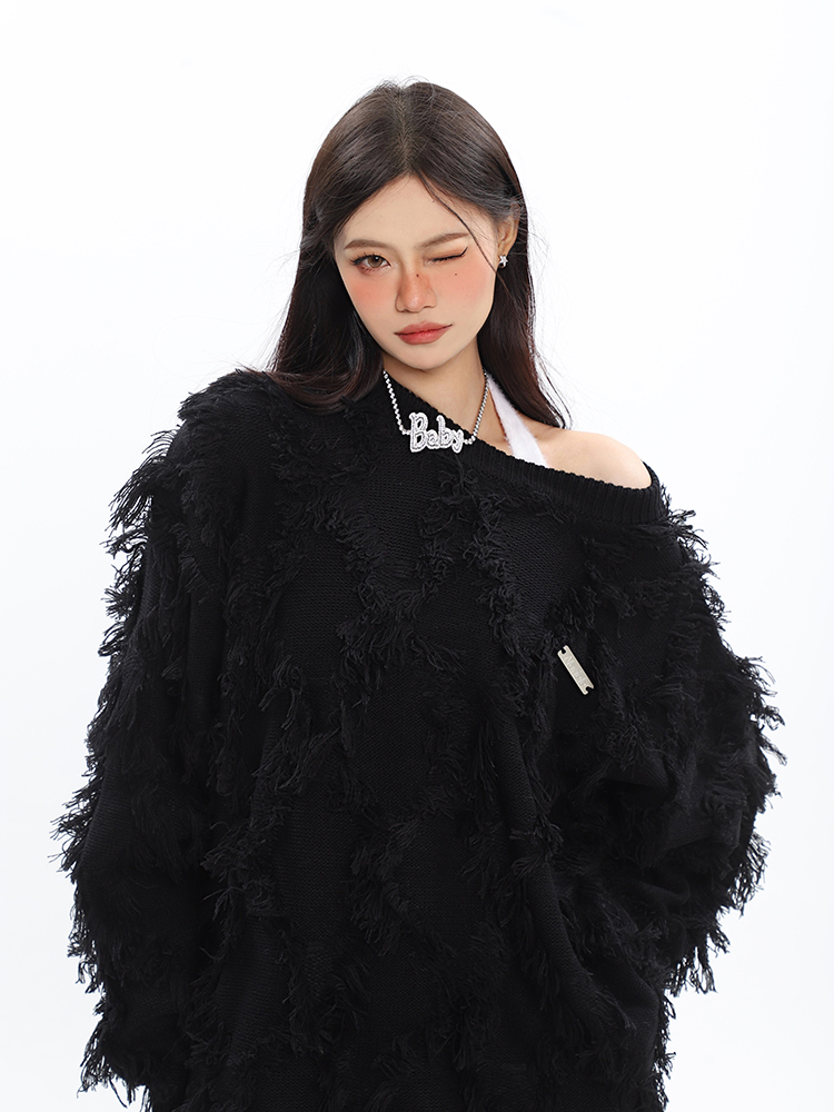 CCUPSPACE 小眾甜酷流蘇設計感情侶裝圓領純色套頭毛衣2023年新款
