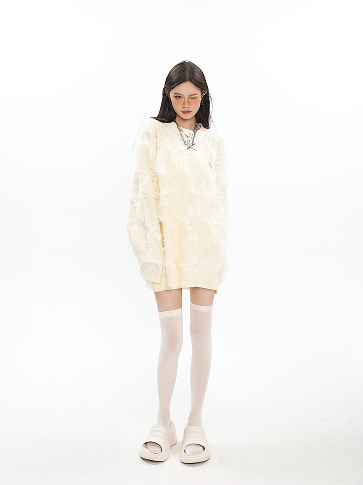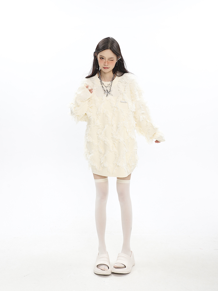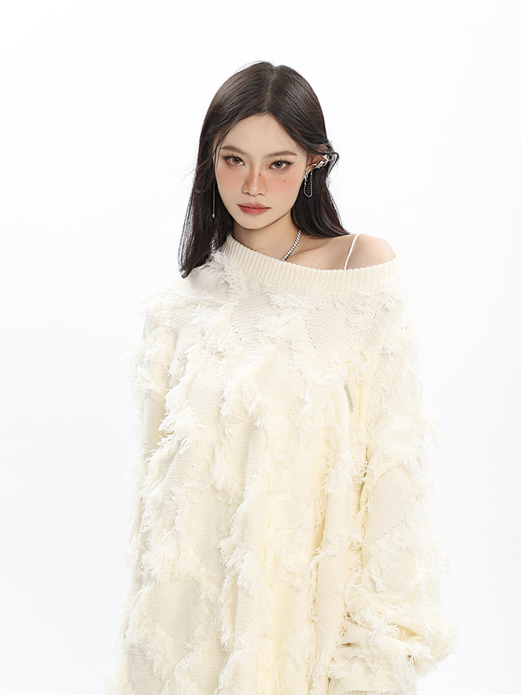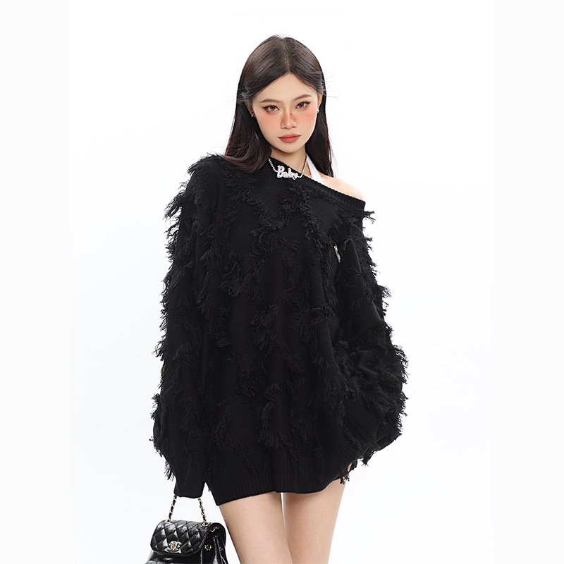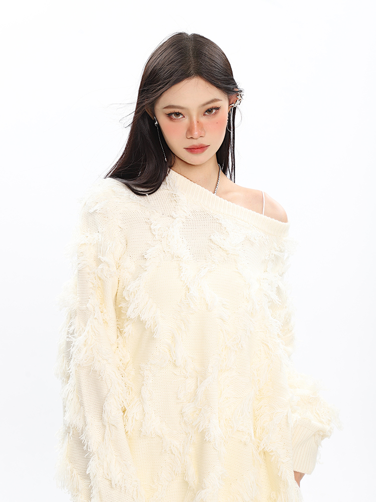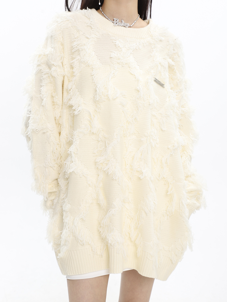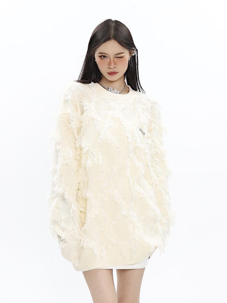 CCUPSPACE 小眾甜酷流蘇設計感情侶裝圓領純色套頭毛衣2023年新款