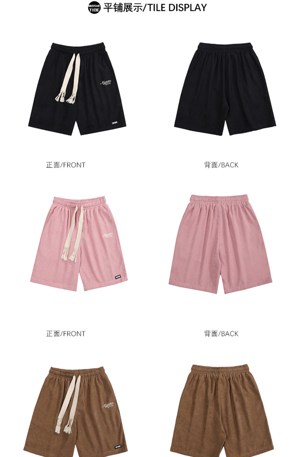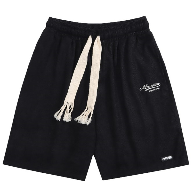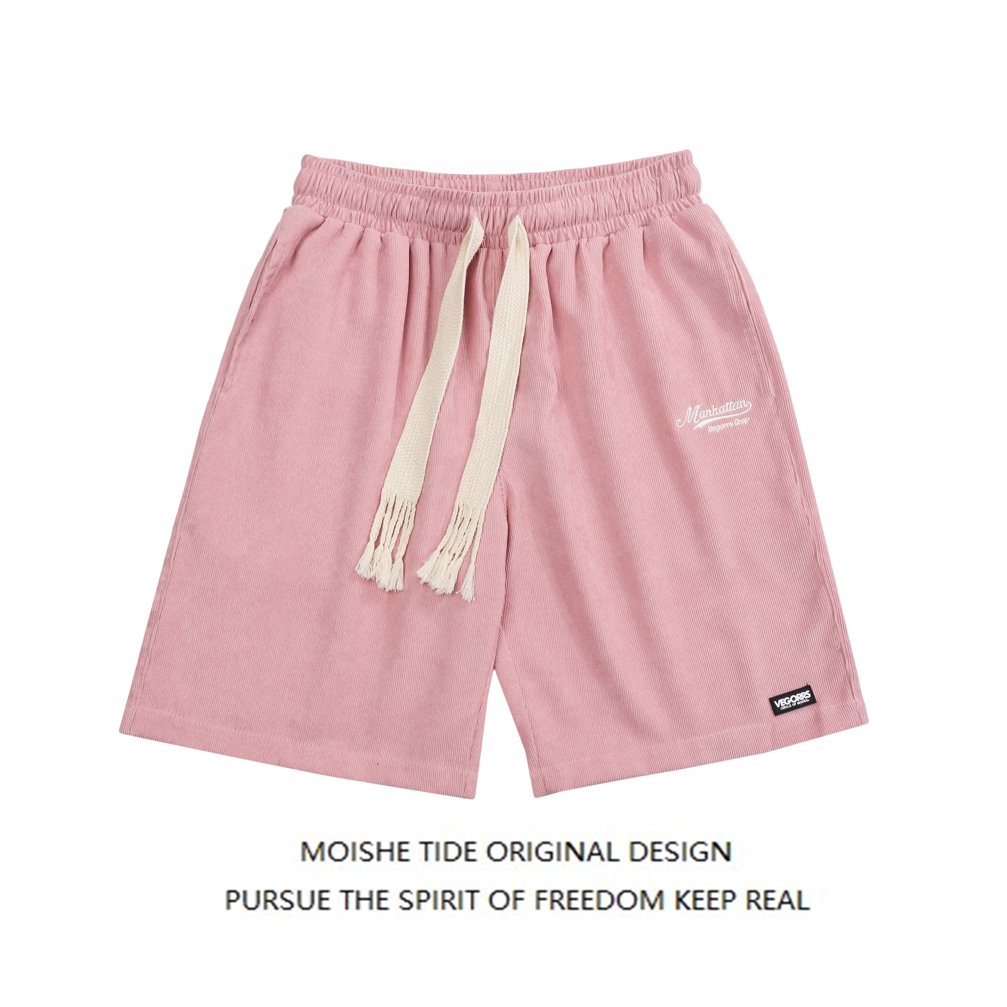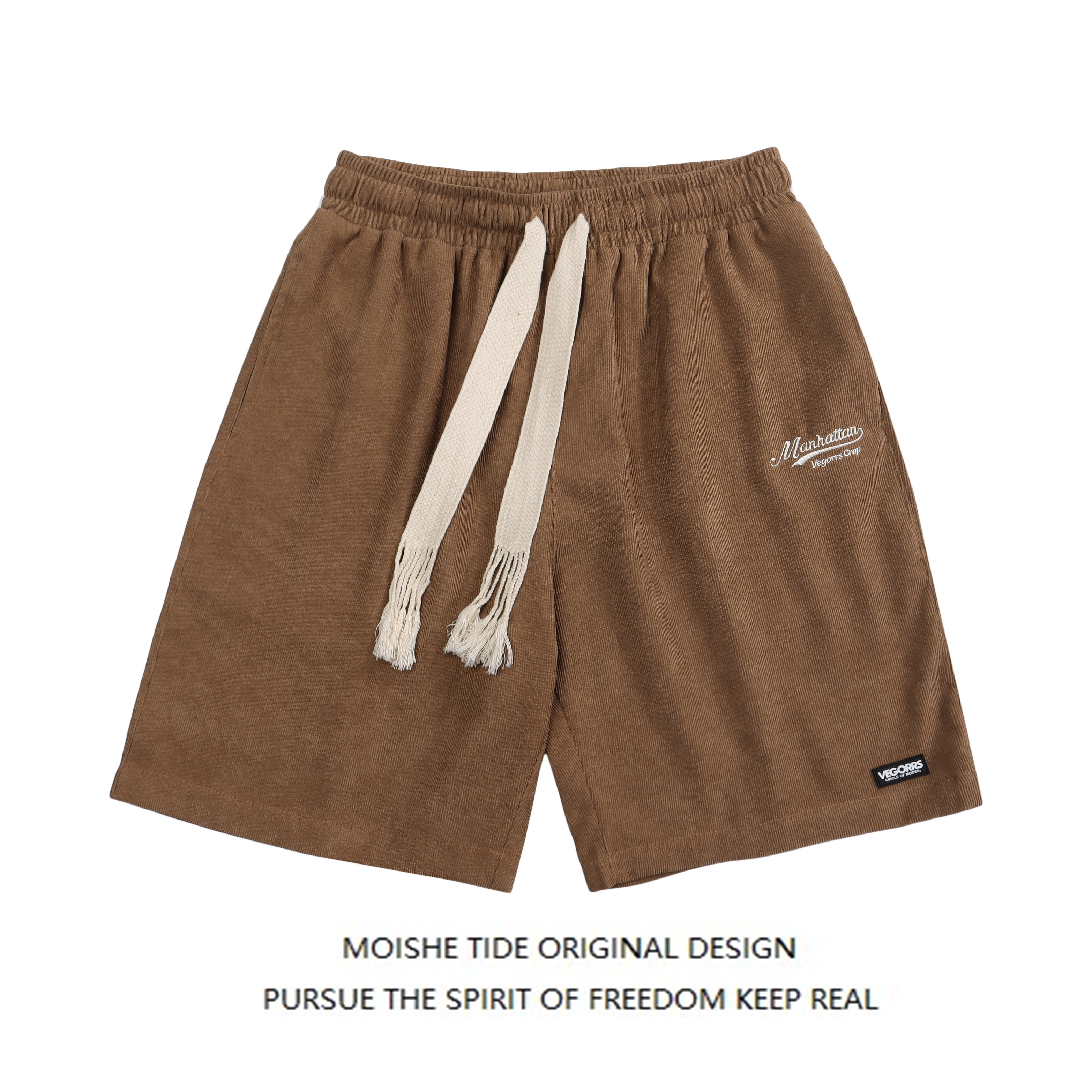 MOISHE TIDE復古字母刺繡燈芯絨休閒短褲男女寬鬆闊腿運動五分褲