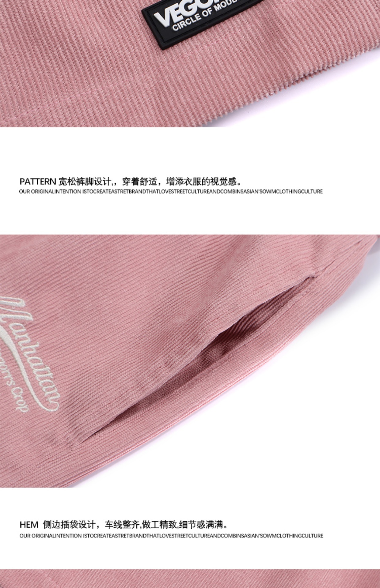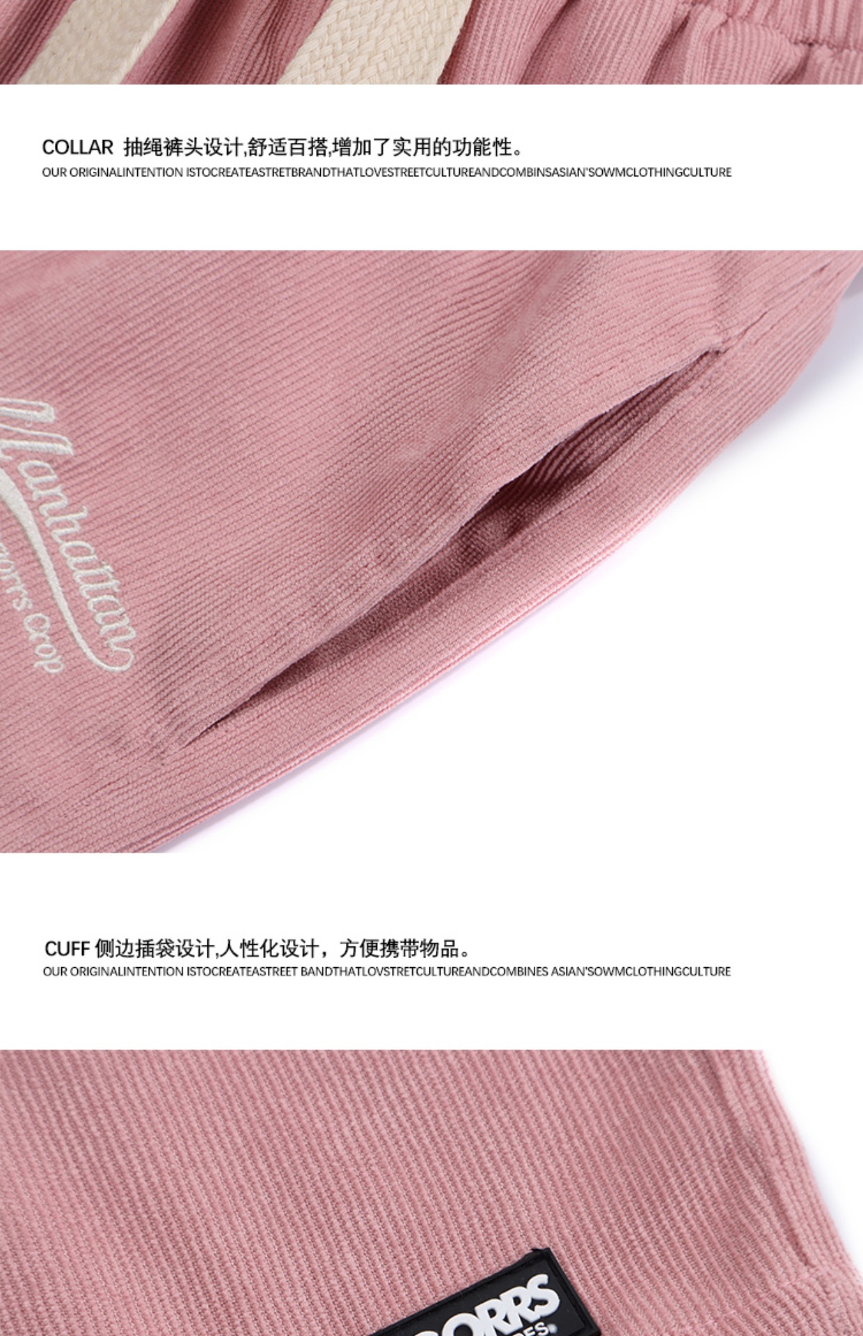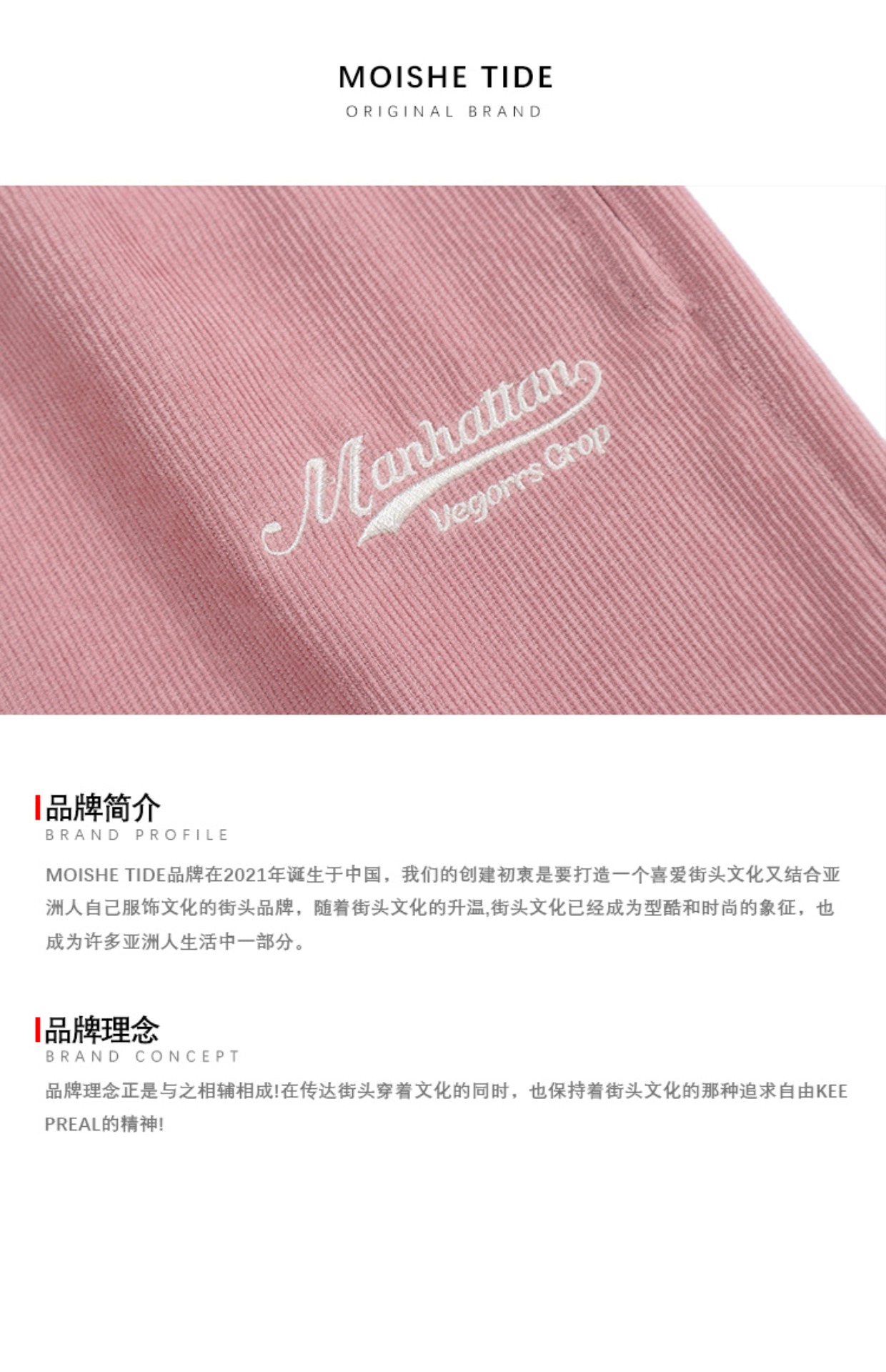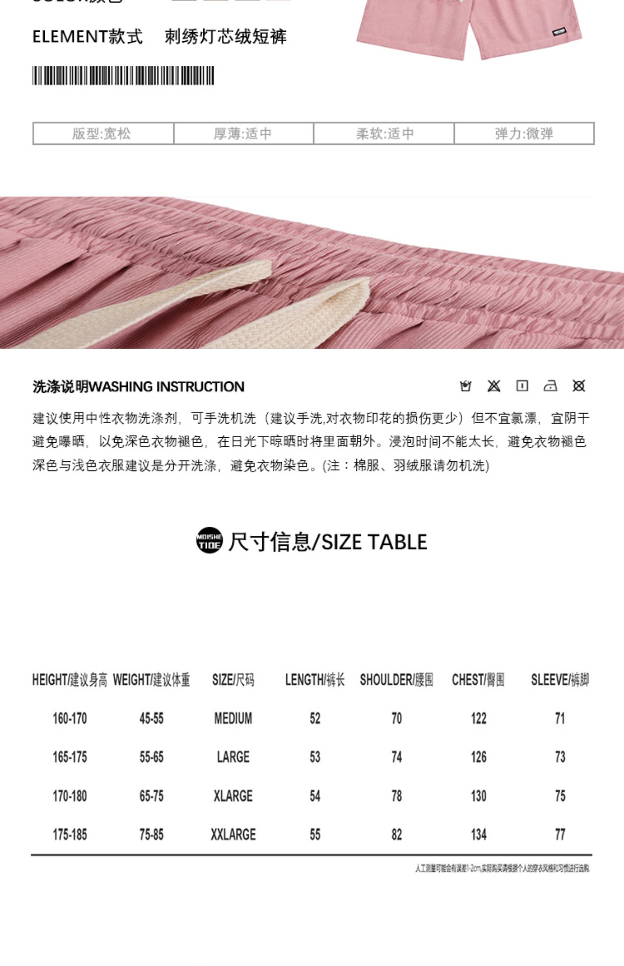 MOISHE TIDE復古字母刺繡燈芯絨休閒短褲男女寬鬆闊腿運動五分褲