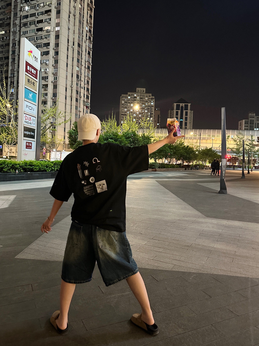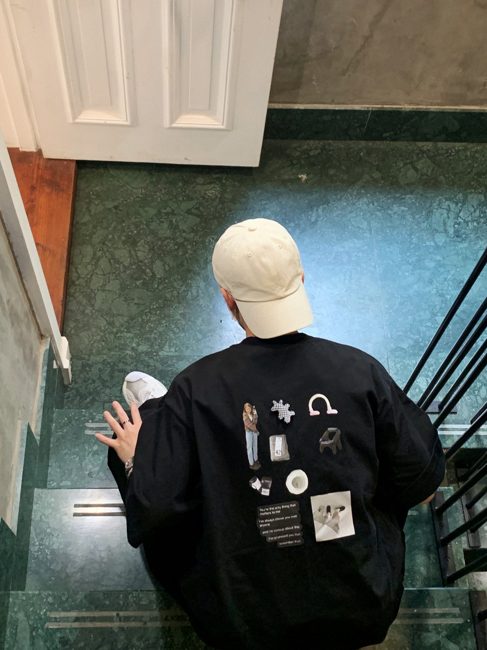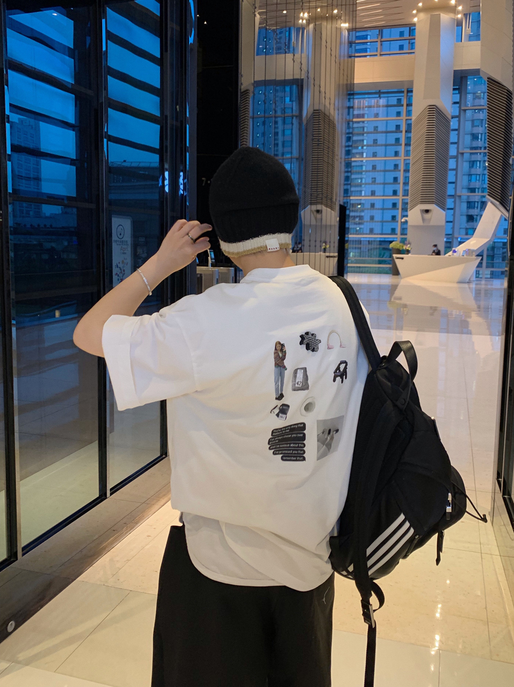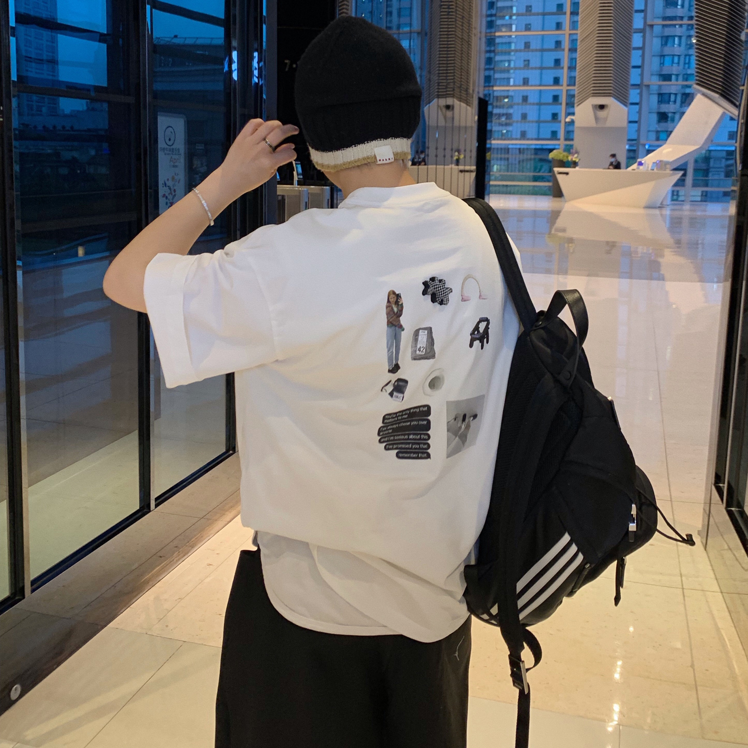 WENGNA 夏季背後趣味圖案印花短袖T恤新款圓領休閒寬鬆T恤上衣潮