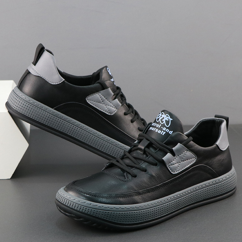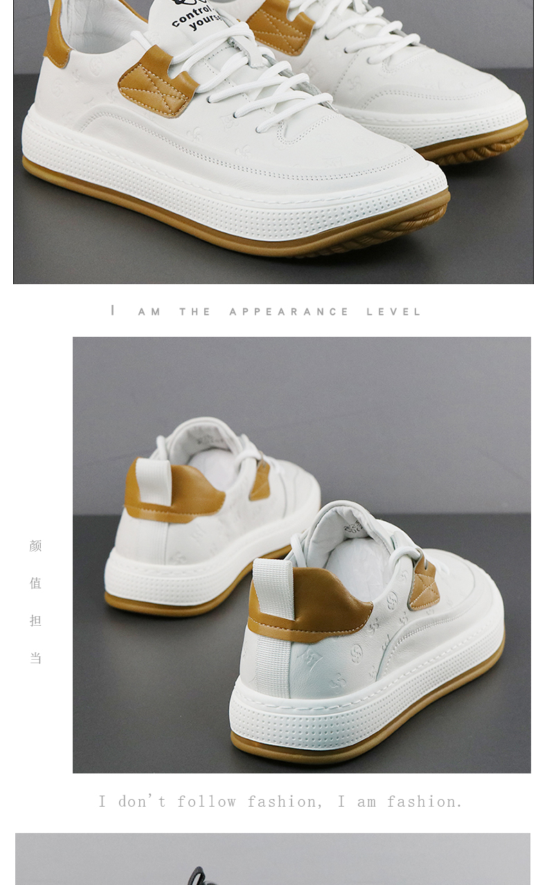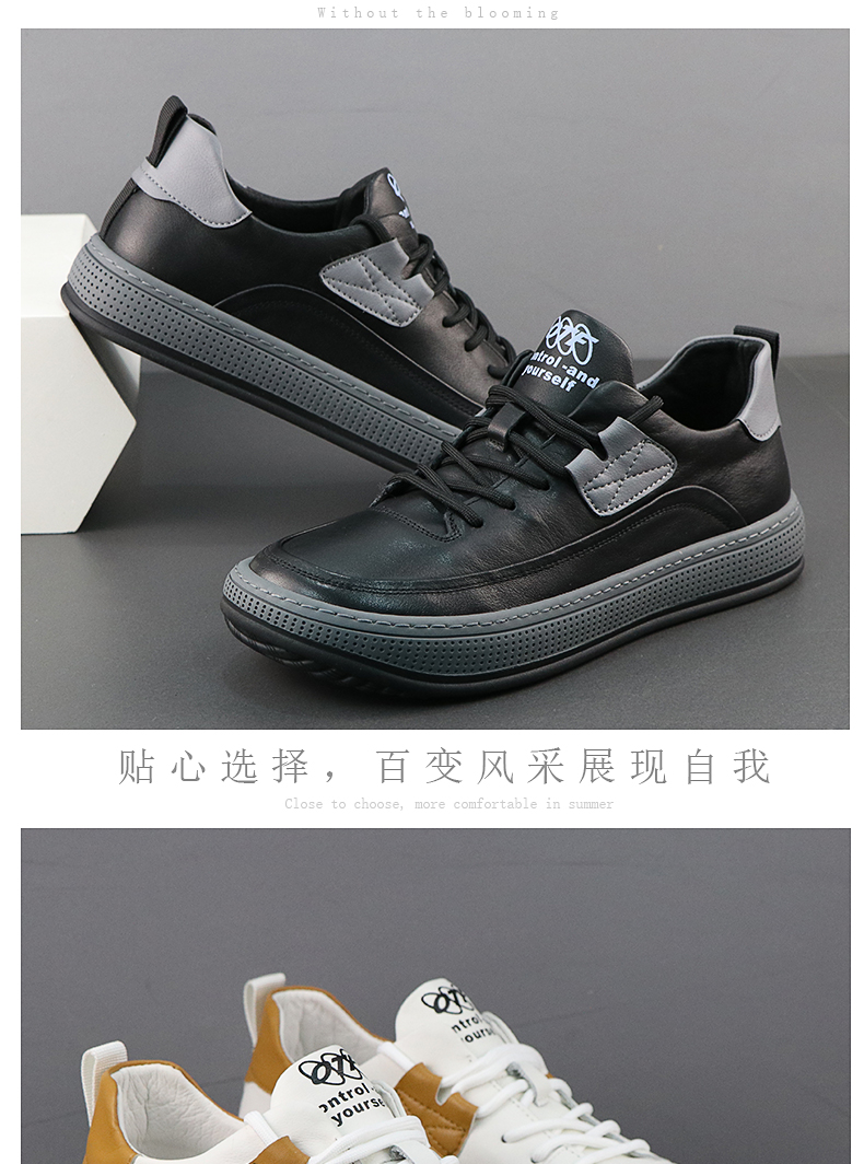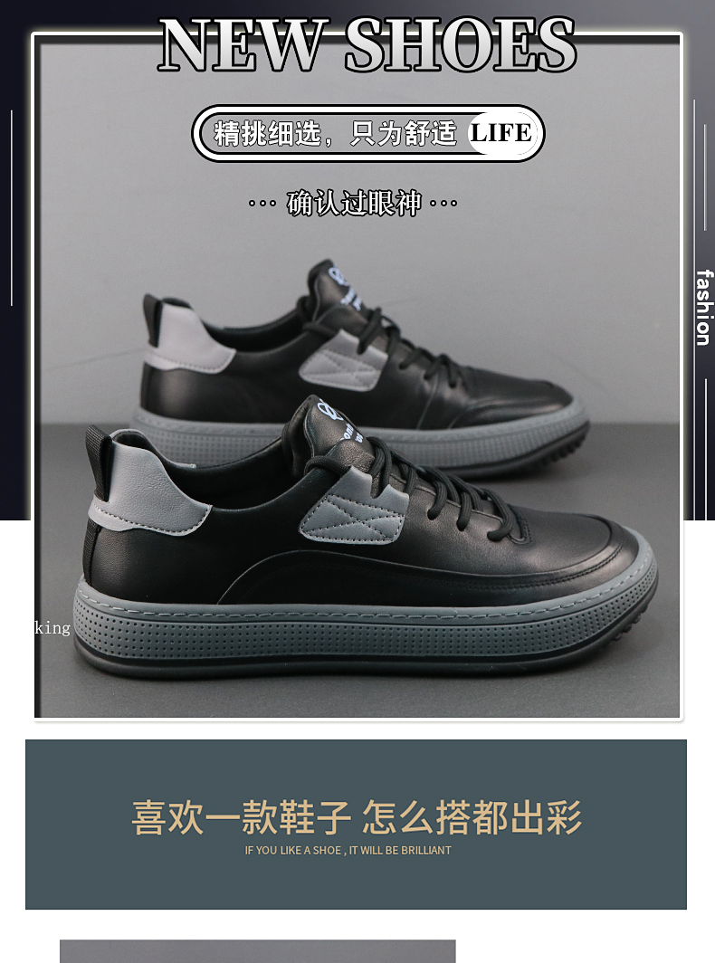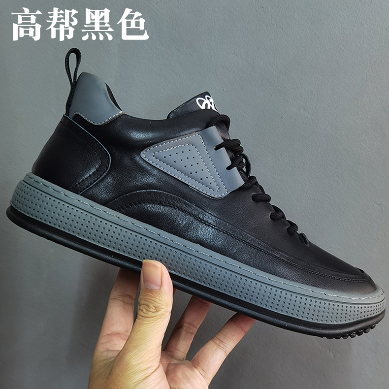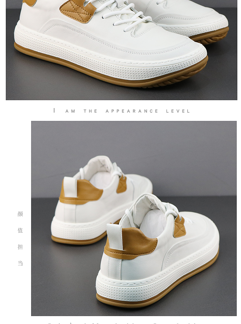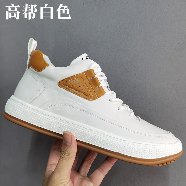 歐洲站男鞋真皮潮流皮鞋春夏款小醜鞋高級感純牛皮小白鞋休閒板鞋