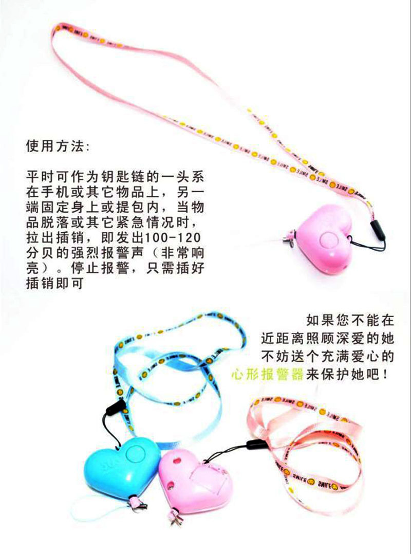 厂家直销90分贝高亮度带灯照明可爱桃心个人报警防狼器
