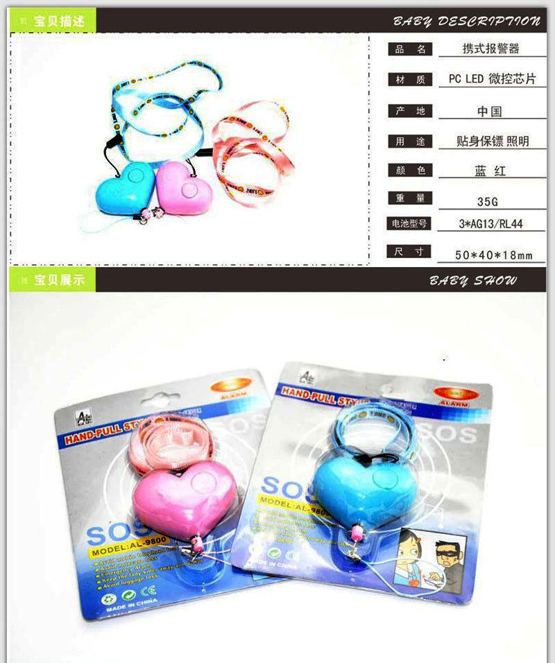 3.此报警器亦可保护皮包,手机及贵重物品,防止丢失,被盗,被抢.