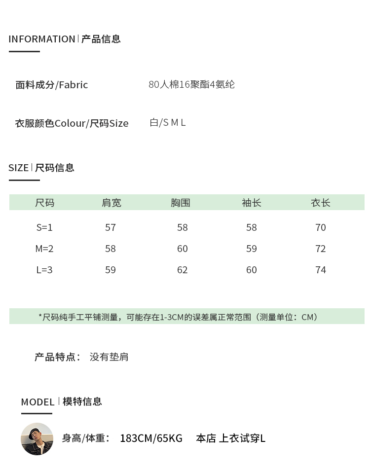 材質成分 棉80% 聚酯纖維16% 聚氨酯彈性纖維(氨綸)4%