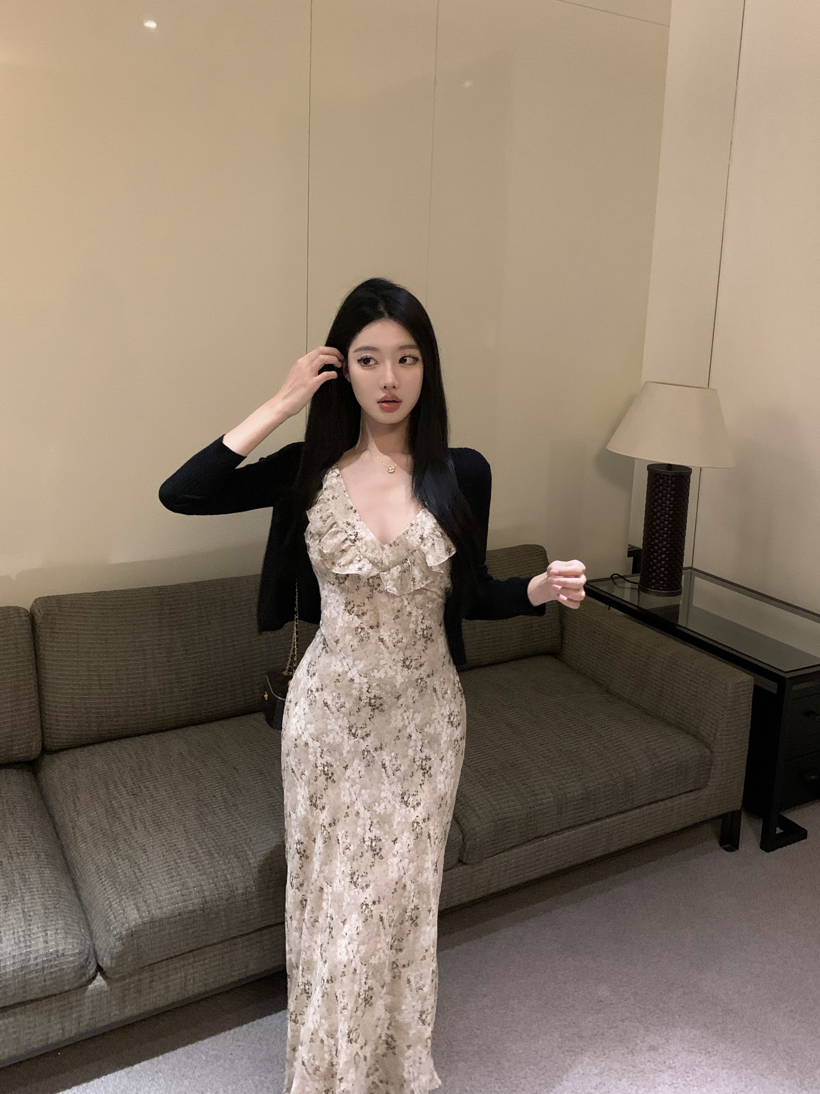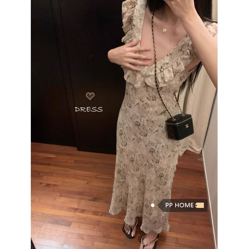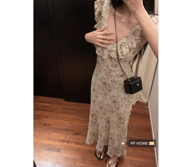 PPHOME甜味莉莉~馥鬱碎花可愛荷葉邊無袖洋裝 夏季薄款防曬開衫