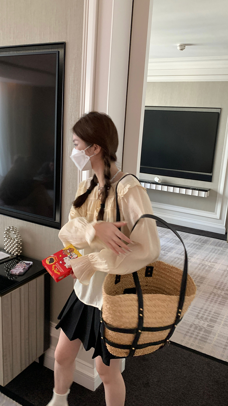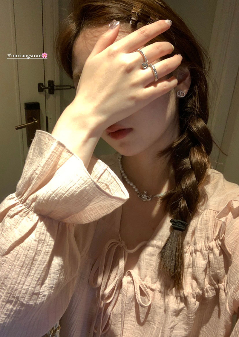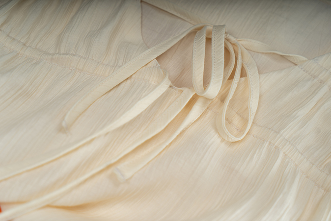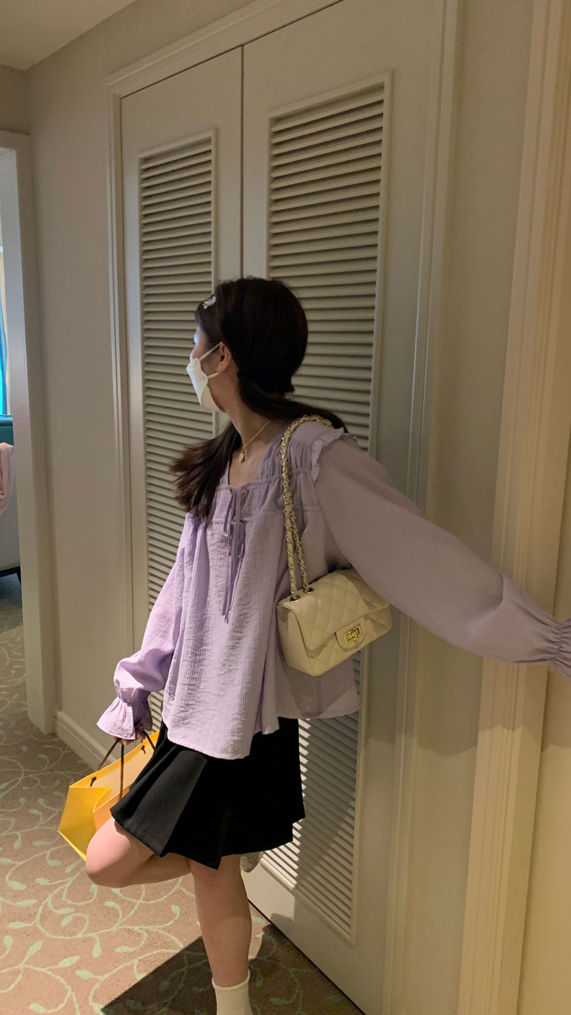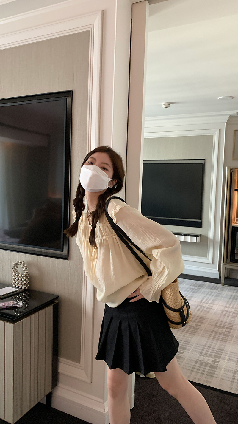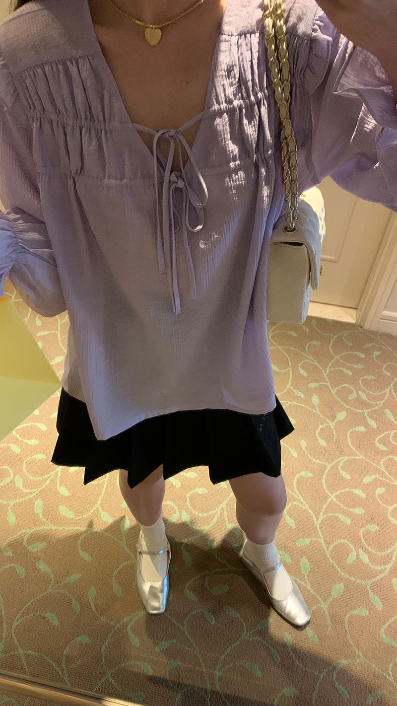 【現貨】im向奶油冰淇淋木耳邊繫帶襯衫女春夏肌理感V領長袖上衣