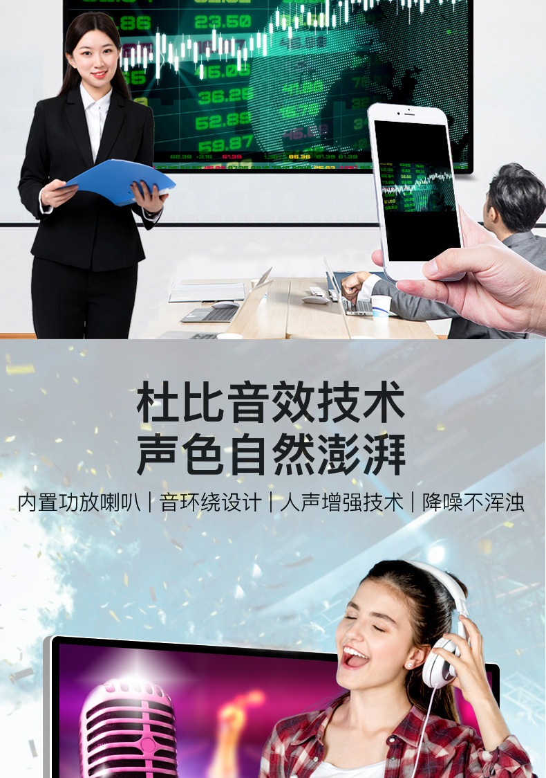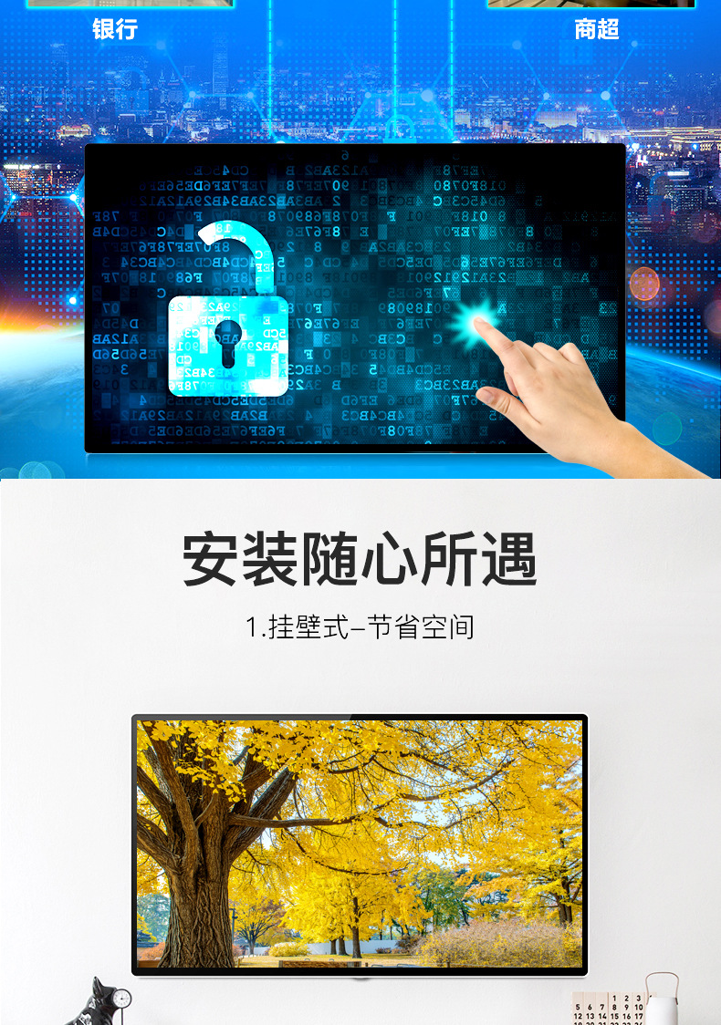 32/43/49/55/65/75/86/98/100英寸高清全视角工业显示屏 内置Wi-Fi/电容触摸