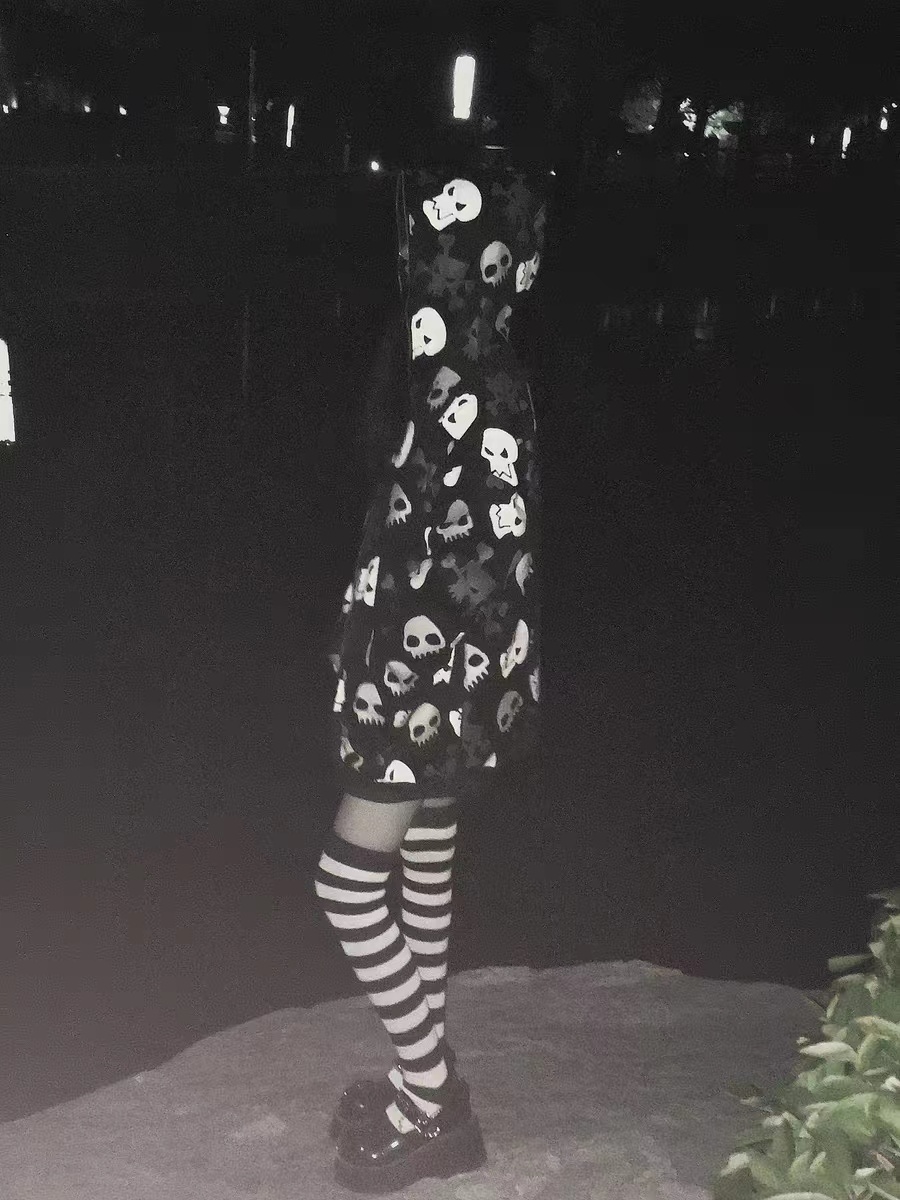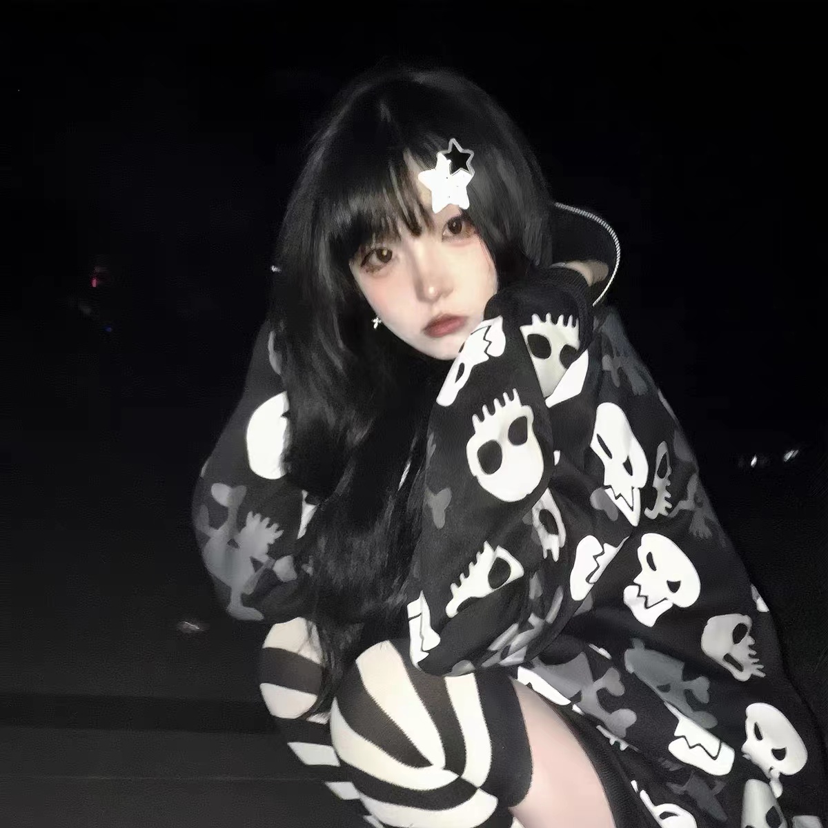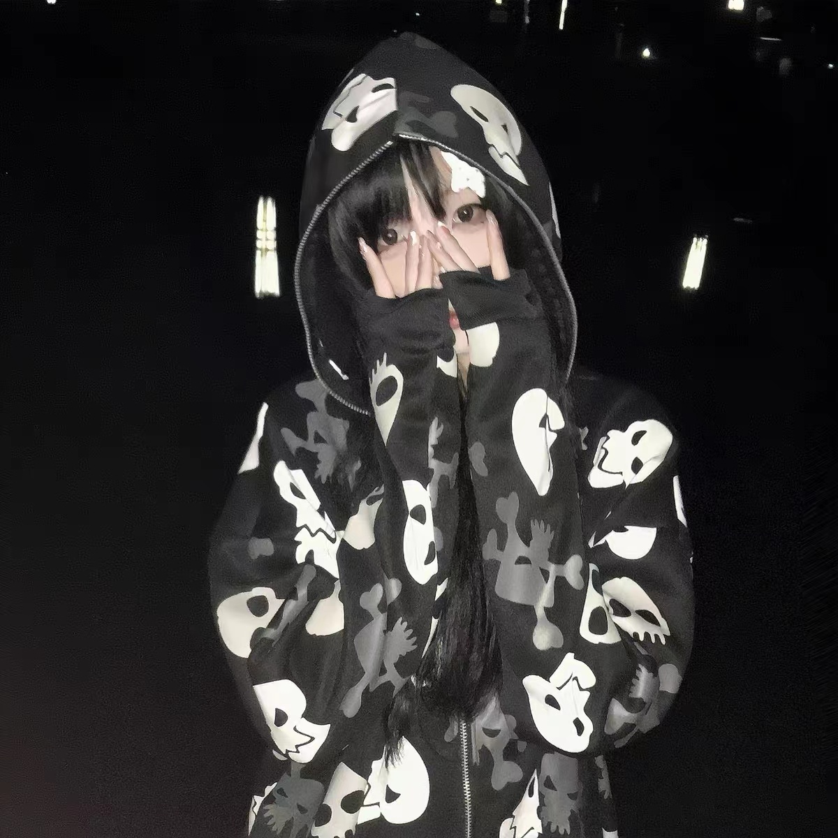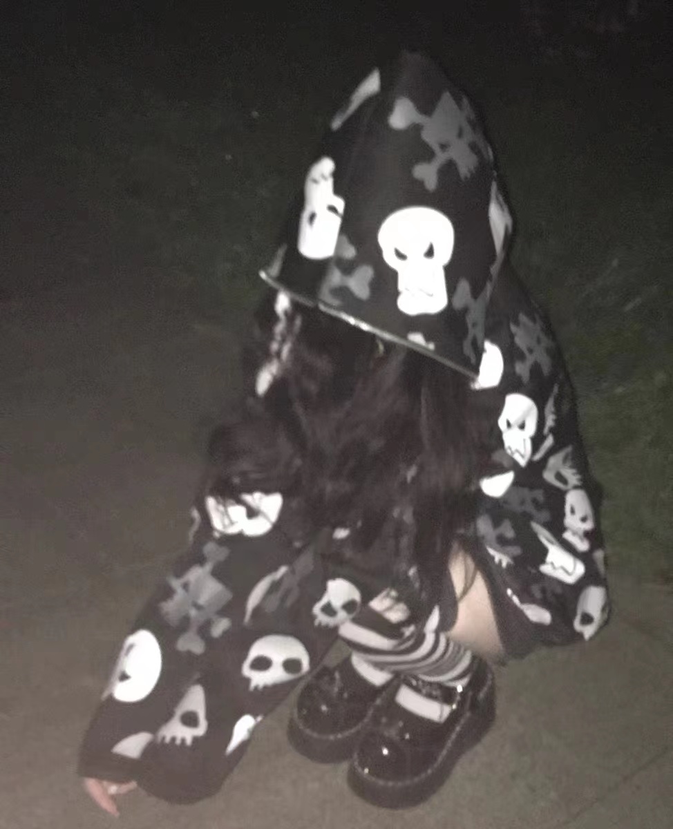 亞文化朋克y2k千禧辣妹骷髏頭滿印連帽運動衫女設計感小眾加絨外套