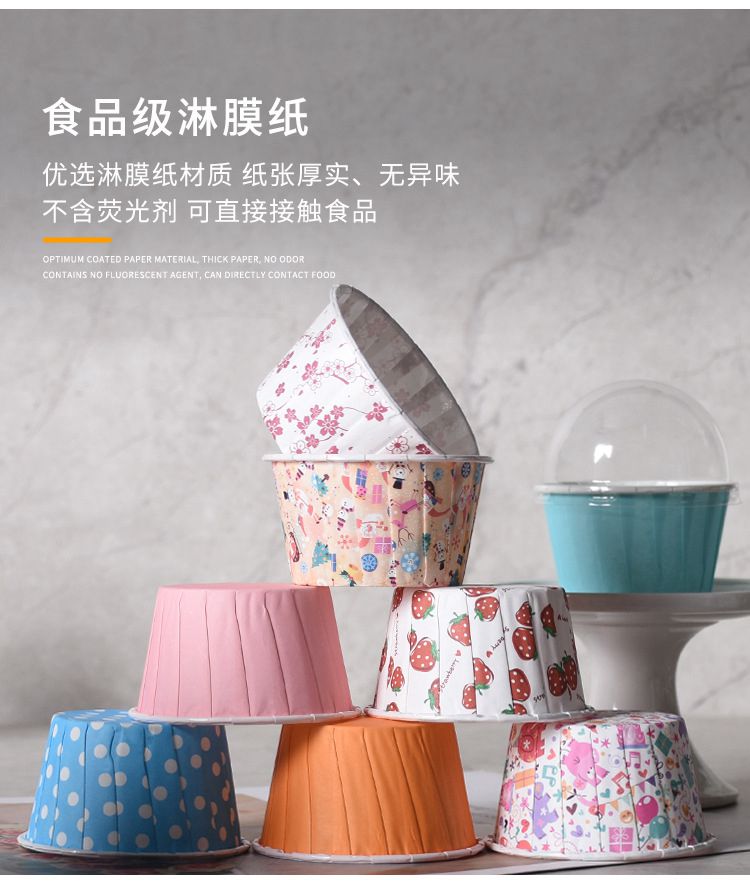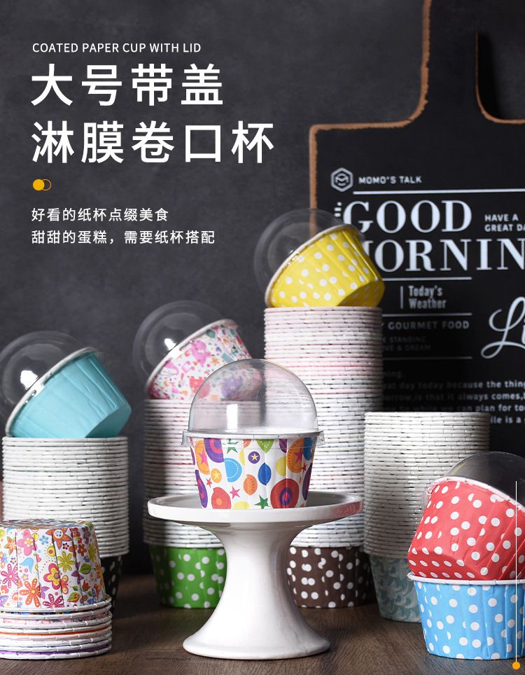 100個大號5039卷口麥芬杯帶蓋子 蛋糕捲邊淋膜紙杯烤箱耐高溫馬芬杯