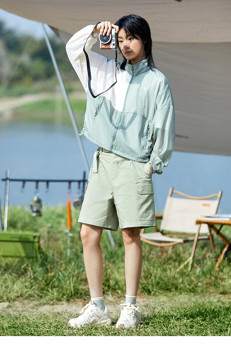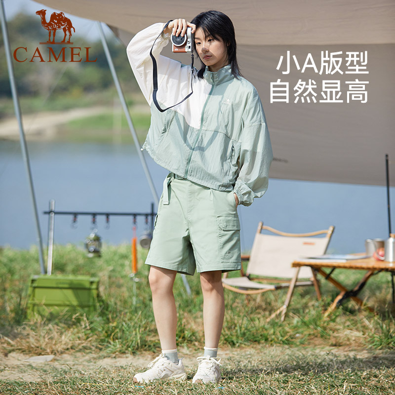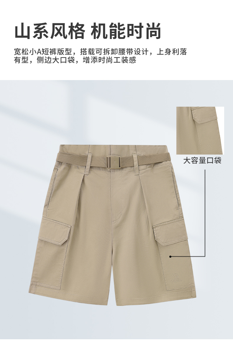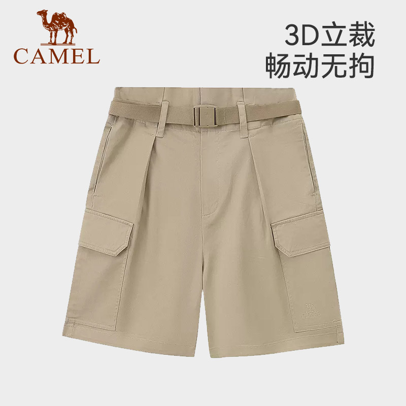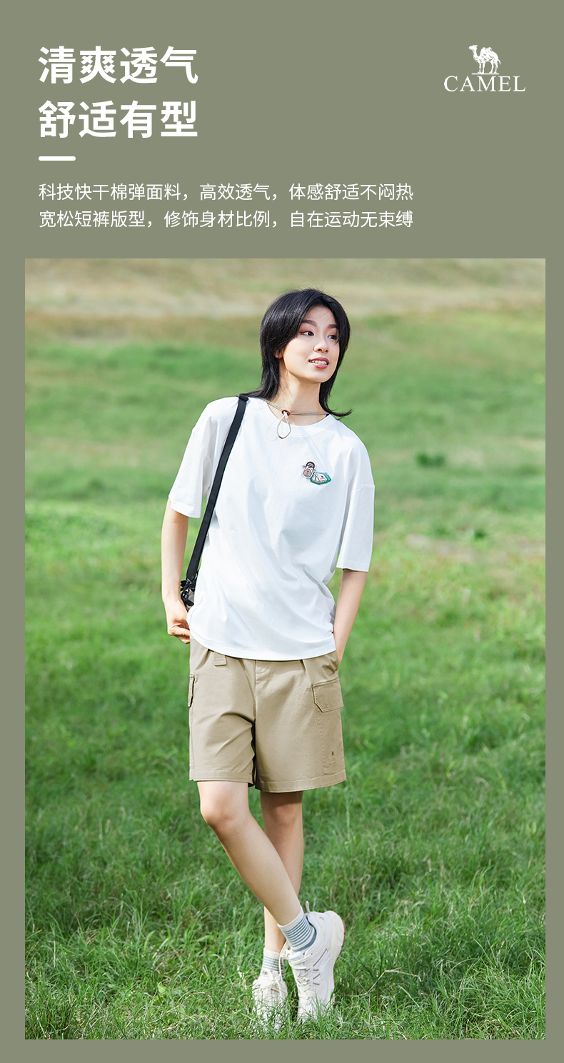 【山系】CAMEL駱駝戶外女休閒五分褲2023春夏卡其色寬鬆工裝短褲