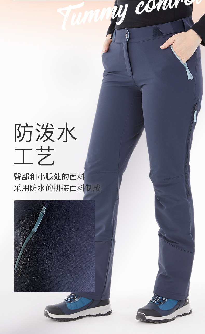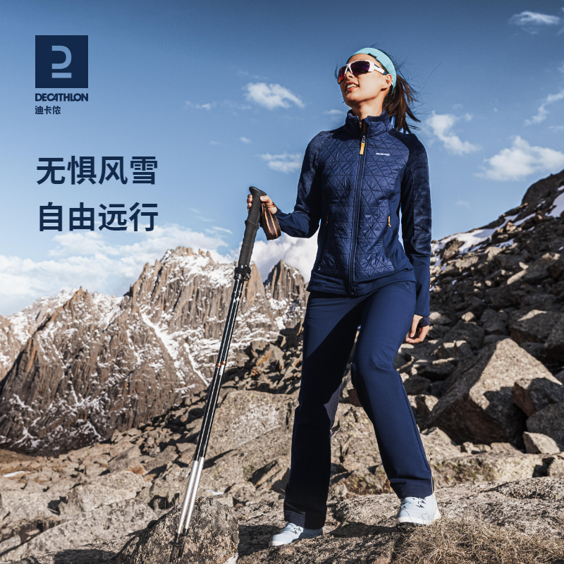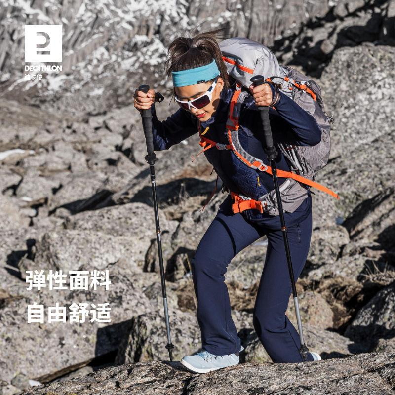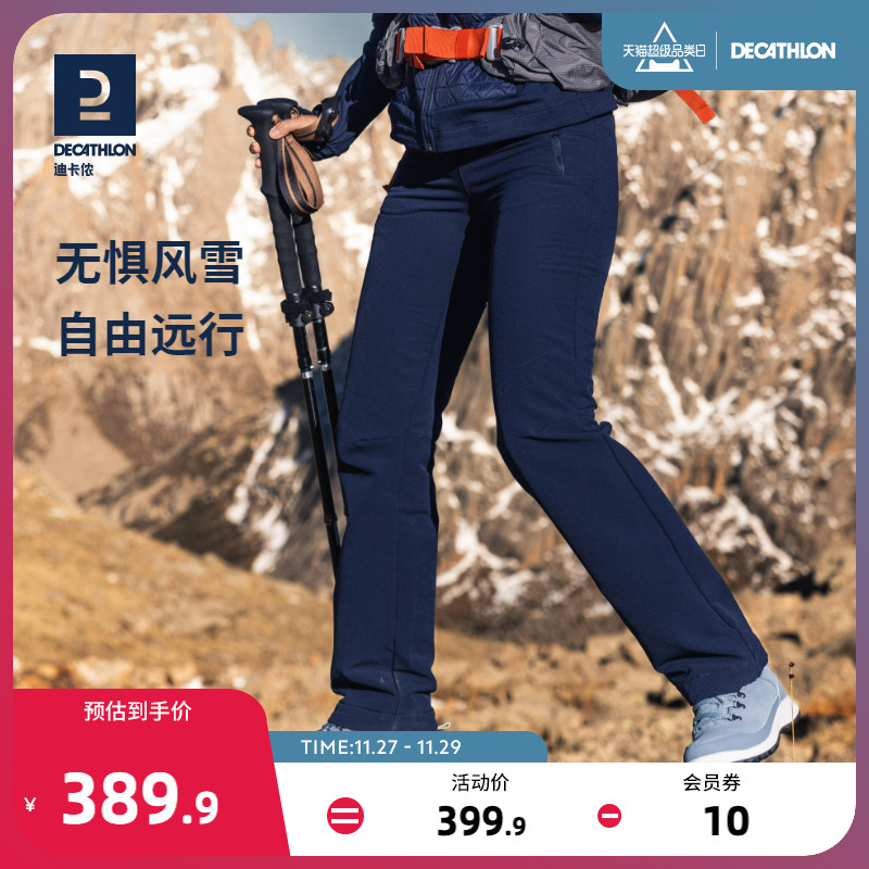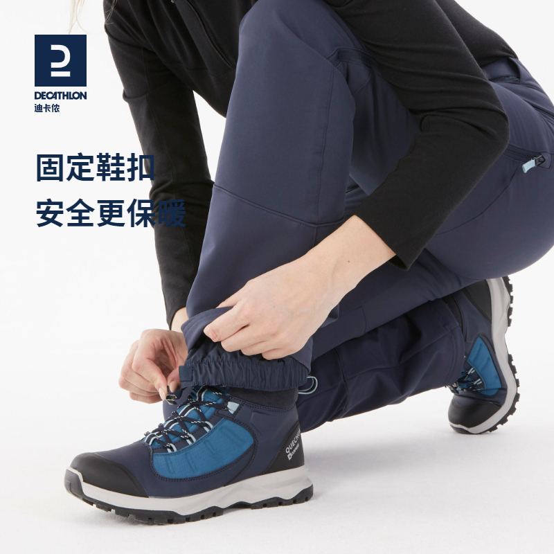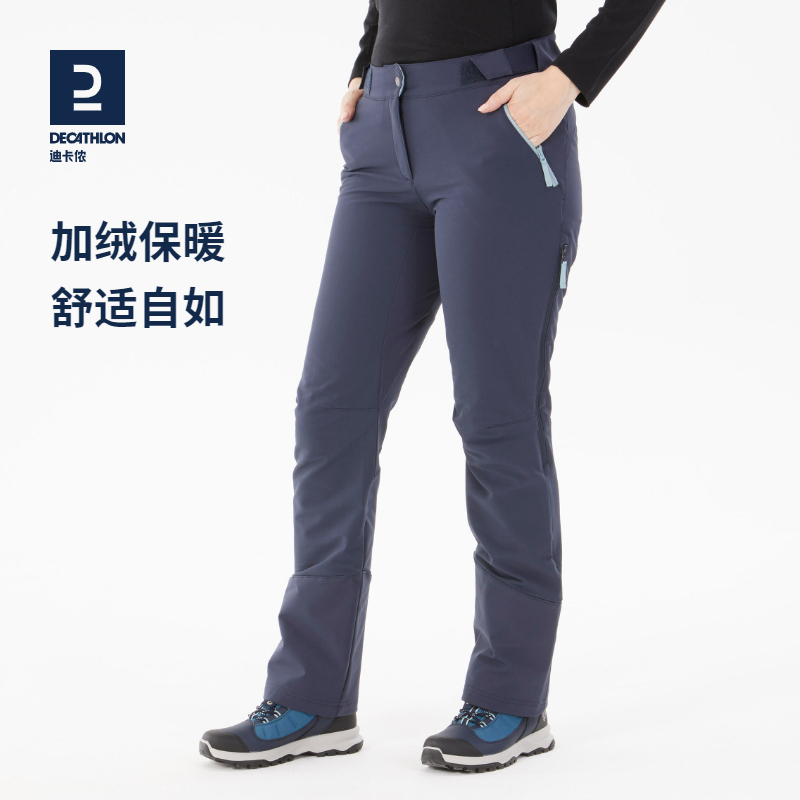 迪卡儂加絨保暖長褲雪地徒步褲加厚防潑水戶外休閒運動長褲女ODT1