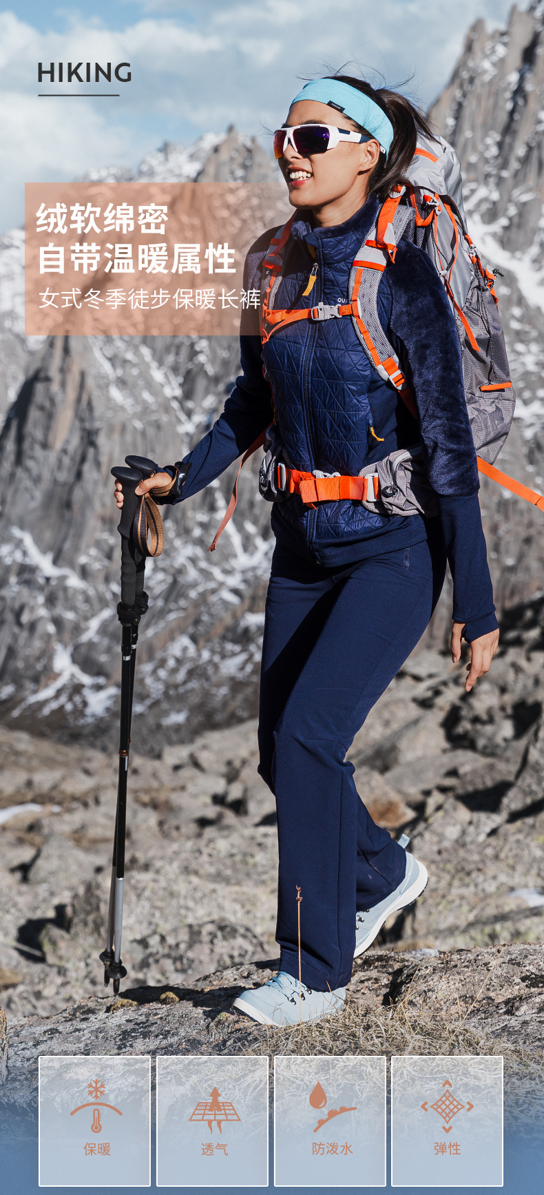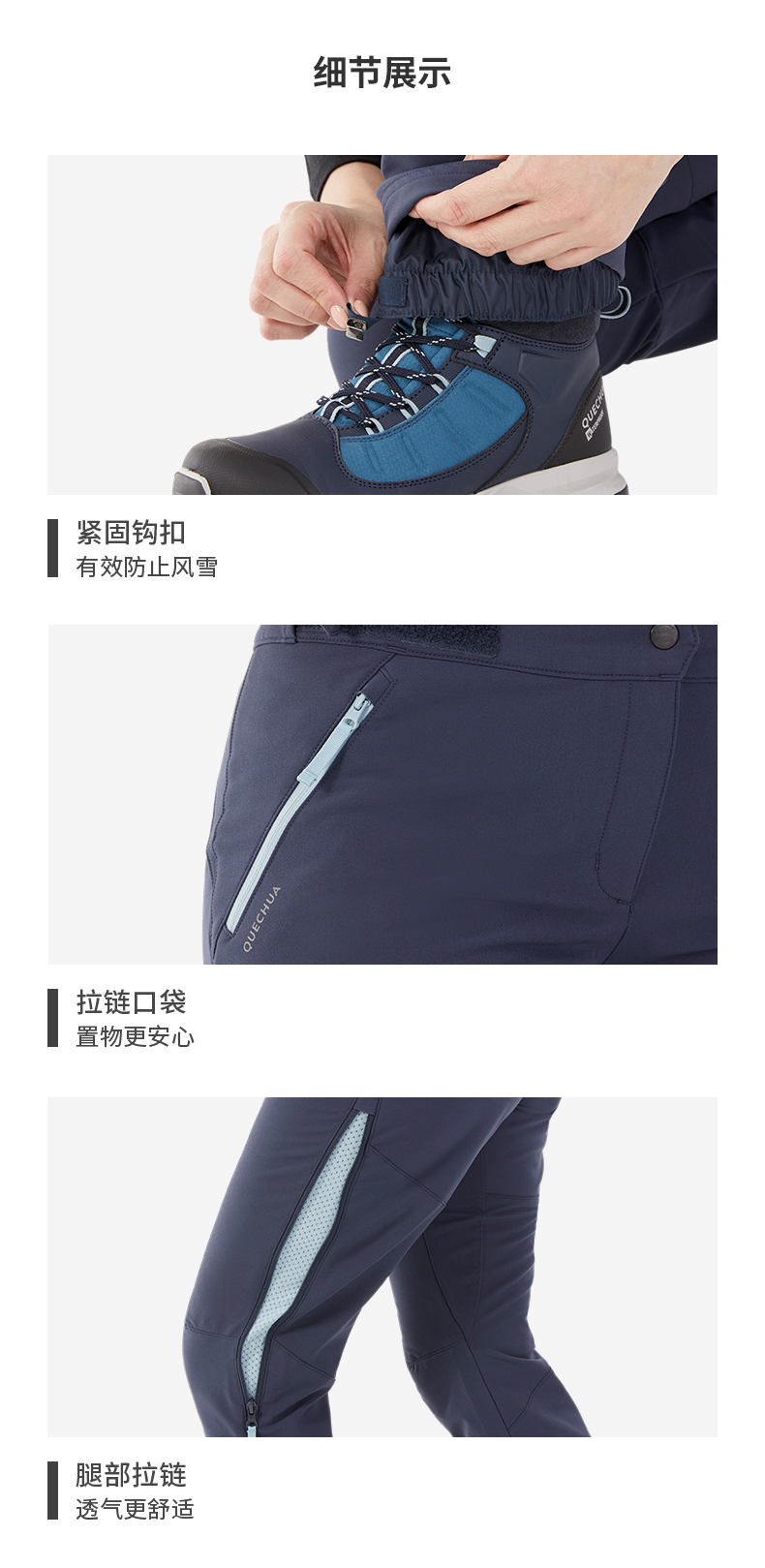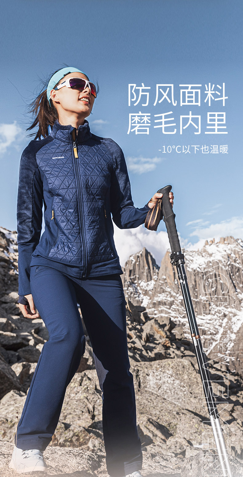 迪卡儂加絨保暖長褲雪地徒步褲加厚防潑水戶外休閒運動長褲女ODT1