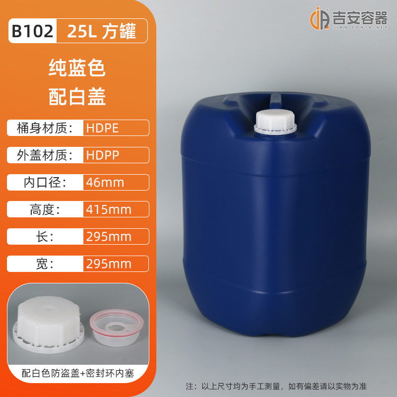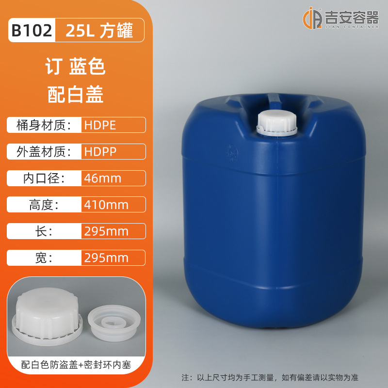 现货供应25L化工包装桶84消毒液桶 25升加厚塑料桶小口方罐蓝白色