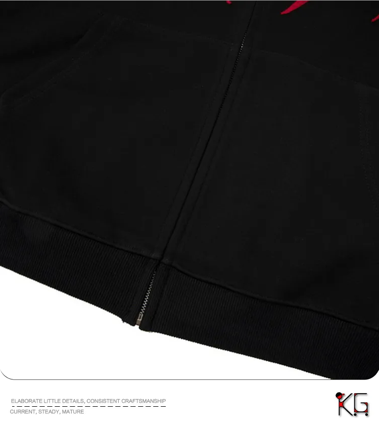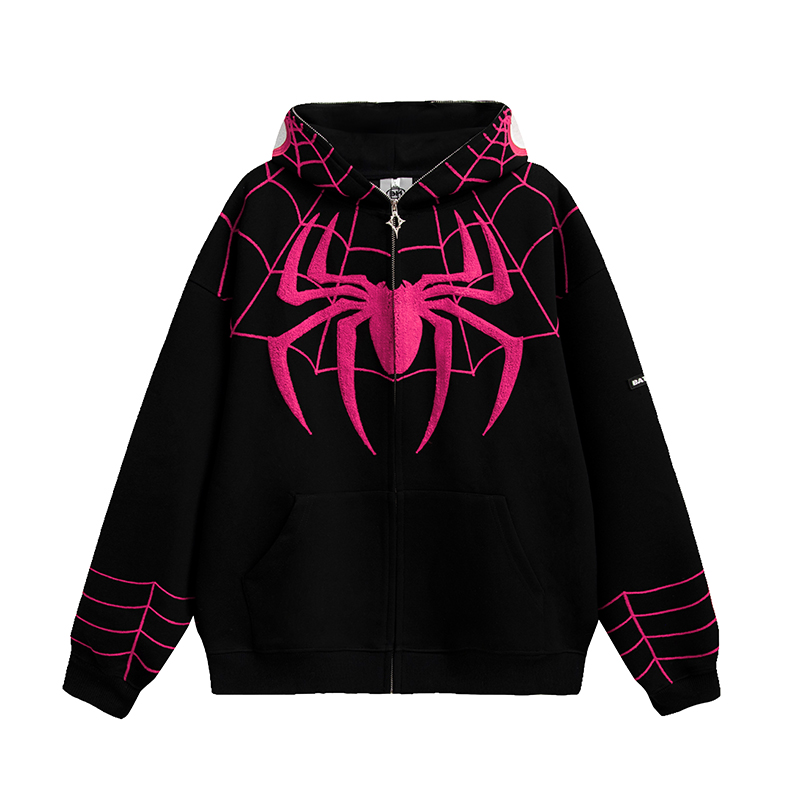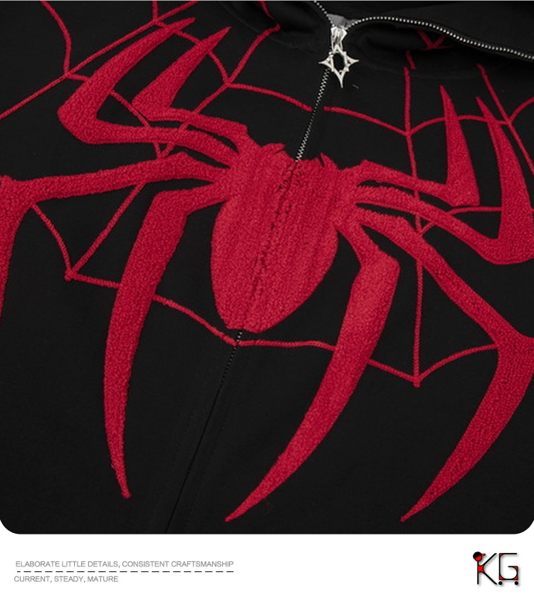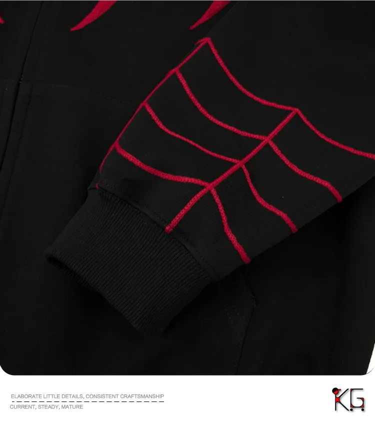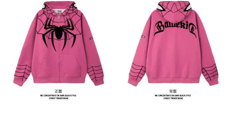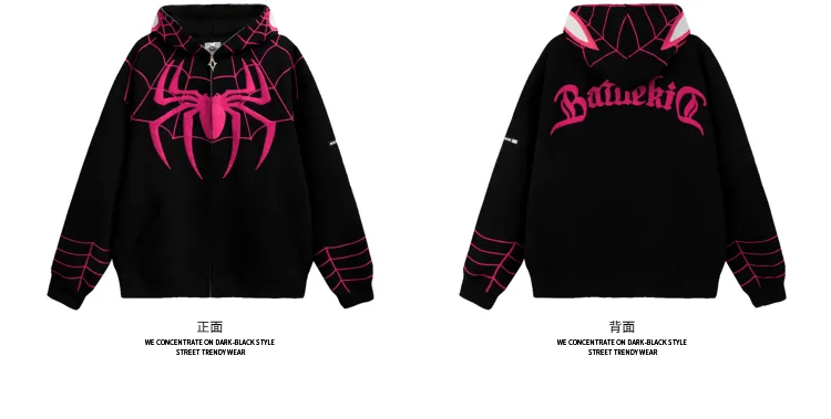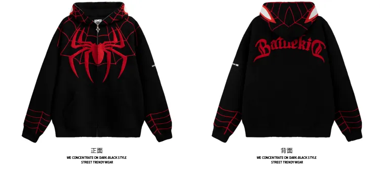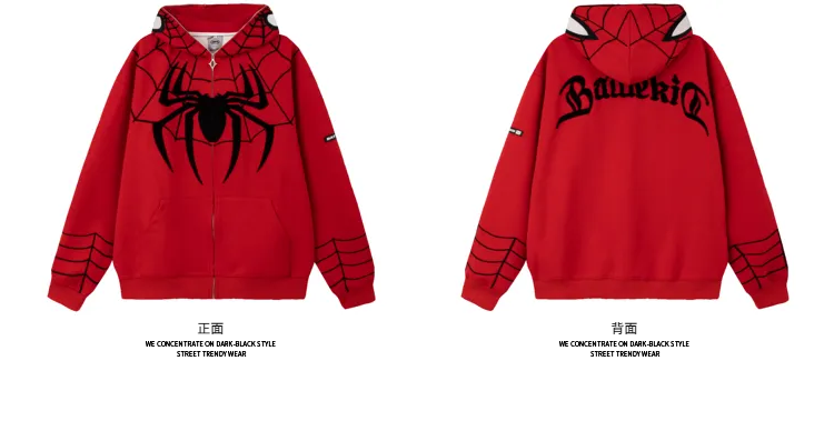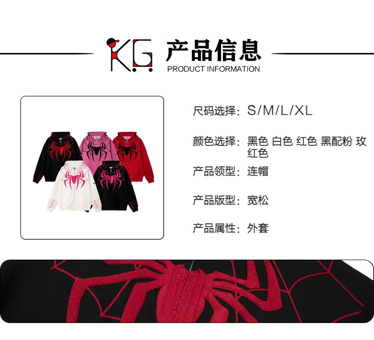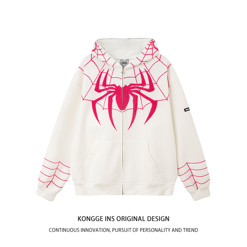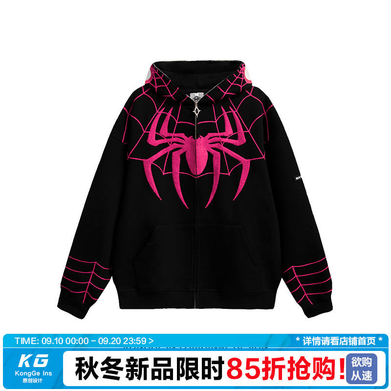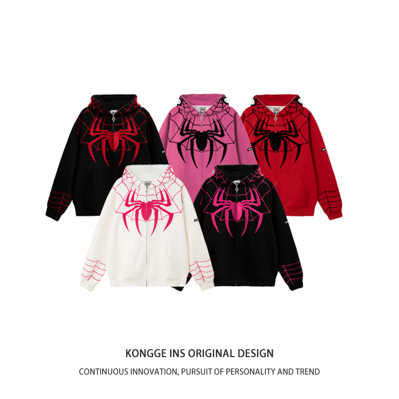 Konggeins國潮牌2023炸街蜘蛛人連帽運動衫大尺碼情侶寬鬆開衫外套秋